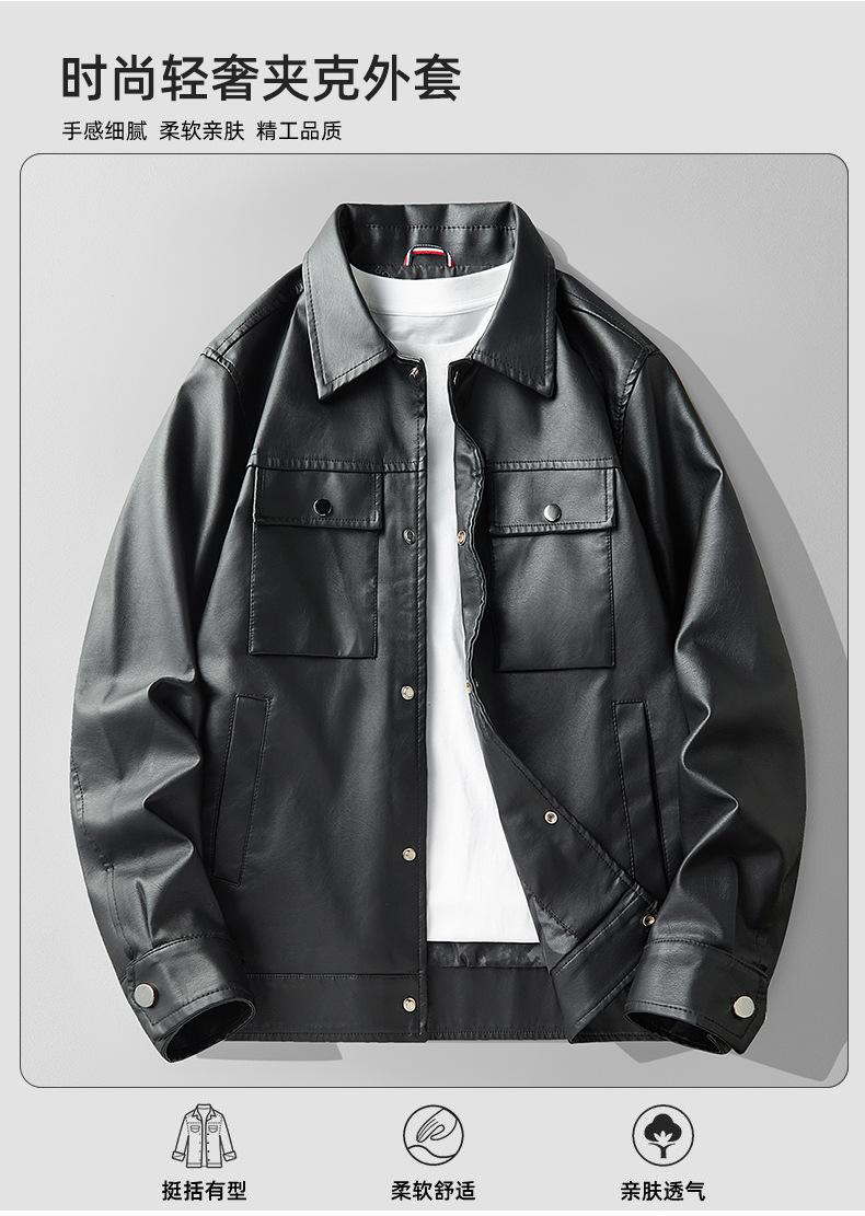 Chaqueta de cuero de moda para hombre, nueva chaqueta de cuero de moda informal para hombre, combinable, ligera y de lujo, 2024