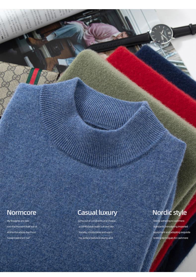 Suéter de cachemira de montaña para hombre, otoño e invierno 2023, nuevo jersey de manga larga con cuello semialto, suéter de cachemira de punto holgado y cálido para hombre