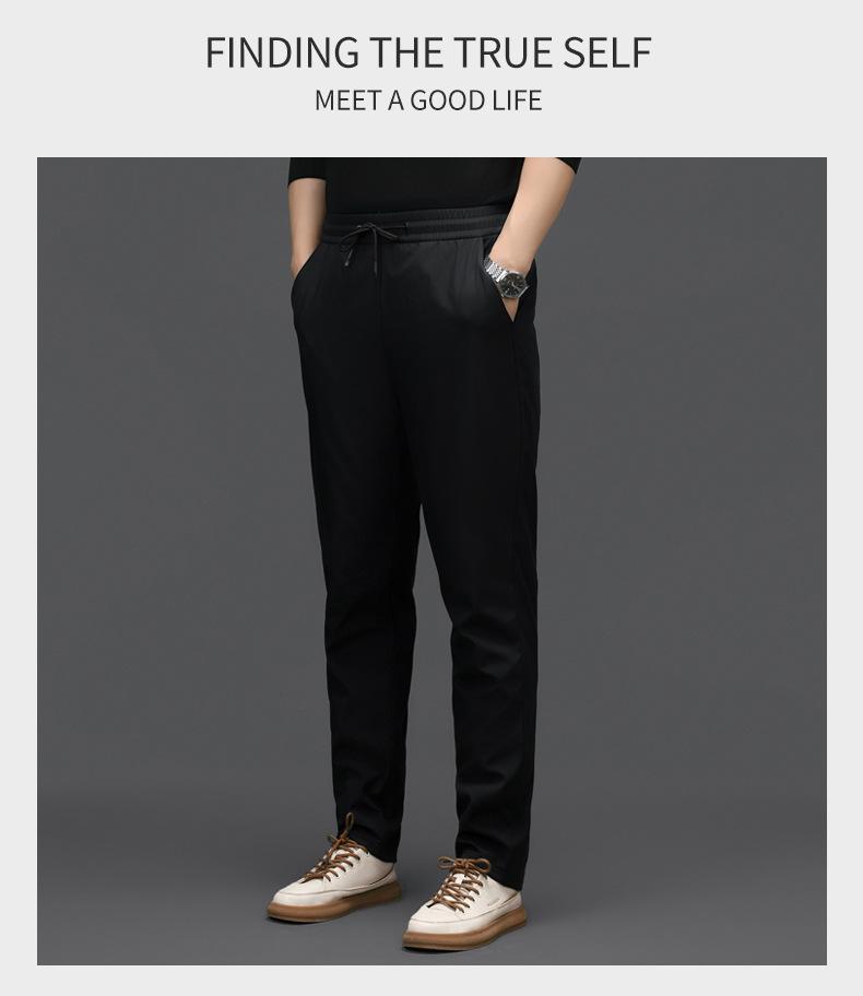 Compra Pantalones casuales coreanos holgados para hombre, deportivos, rectos y elásticos, de seda helada, para negocios, otoño de 2024 al por mayor en Joom.pro
