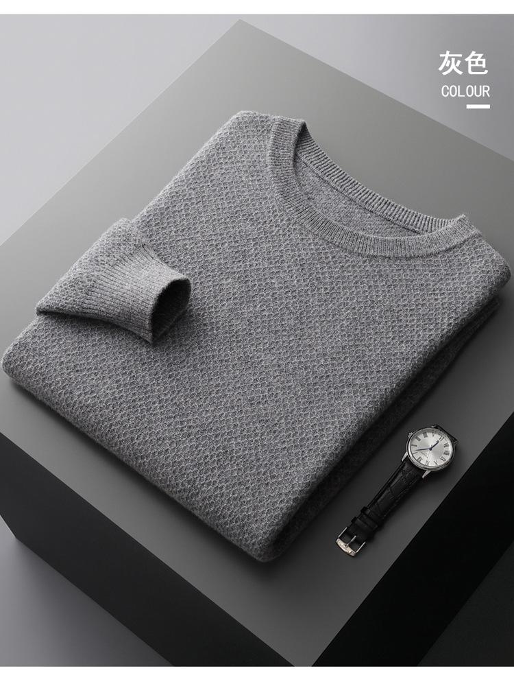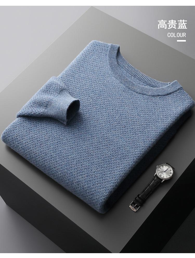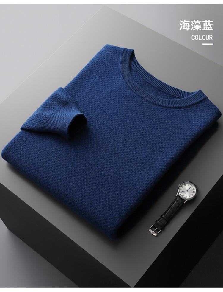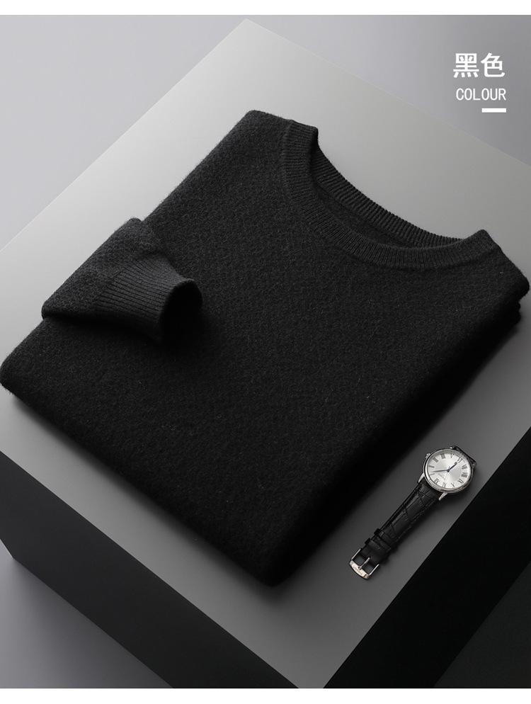 Suéter de cuello redondo para hombre, nuevo, de otoño e invierno, de color sólido, suelto, grueso y cálido, de punto básico.