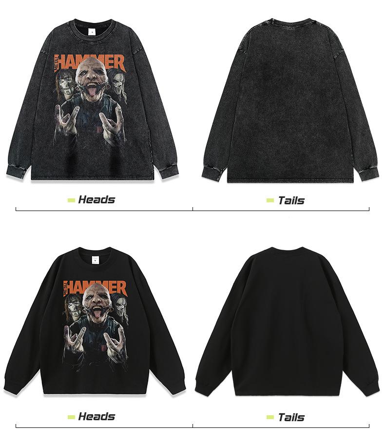 Suéter con capucha vintage estilo americano, lavado con agua y estampado de golpes, estilo nacional callejero, manga larga, para hombre y mujer