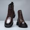 Botas Martin para hombre, otoño e invierno, largas, populares en Internet, de cuero suave, estilo yuppie británico, de algodón con forro polar, 2024