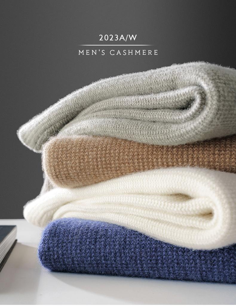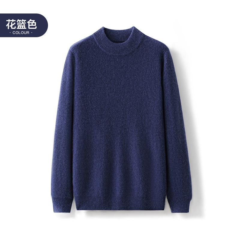 Nuevo Suéter de Cachemira 100 Montaña Espesado Jacquard de Arroz Pequeño Otoño e Invierno para Hombre Cuello Medio Alto Tejido Cálido