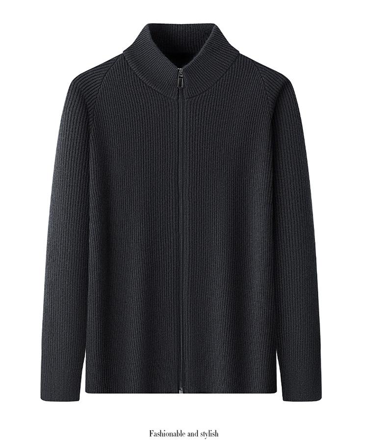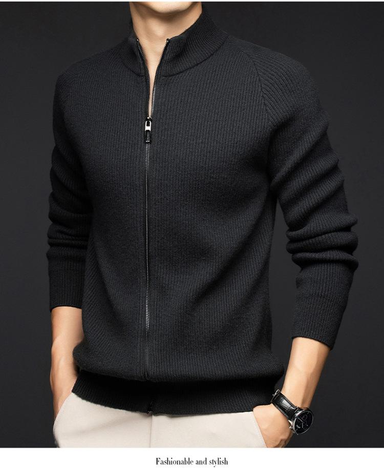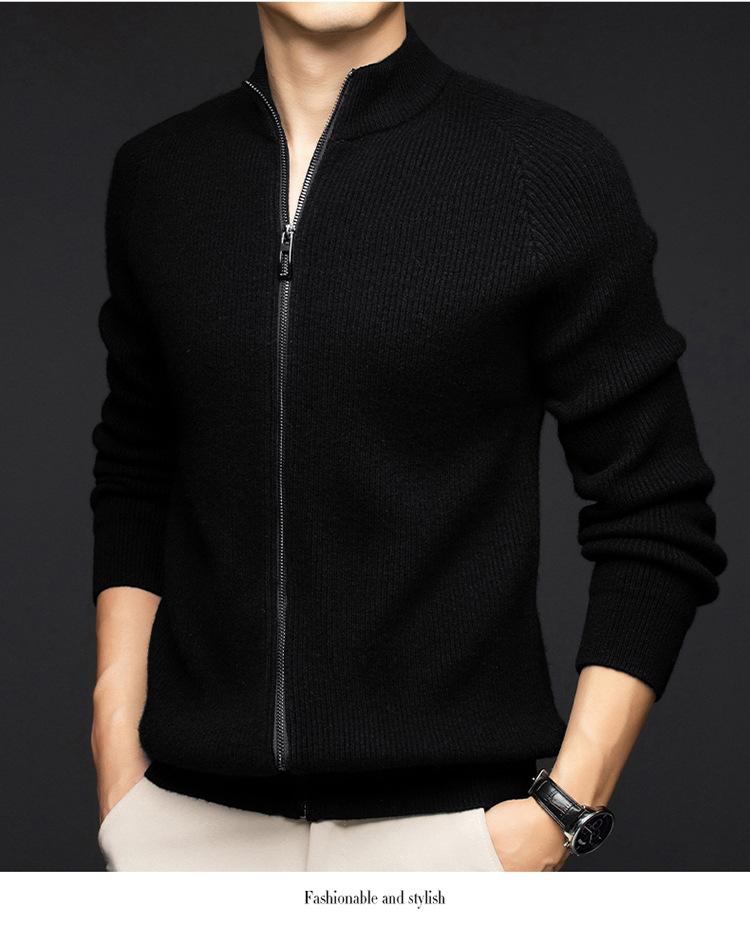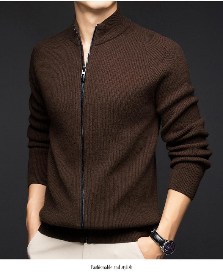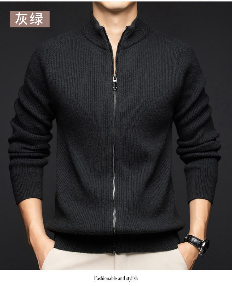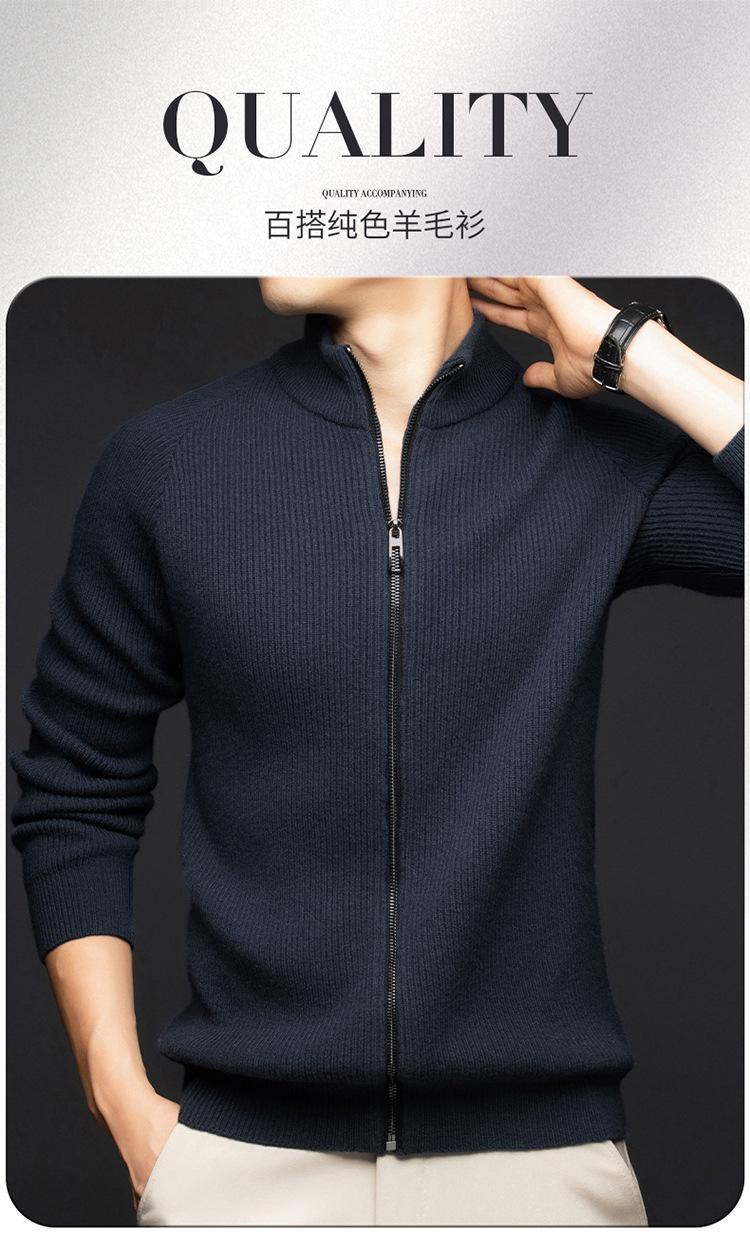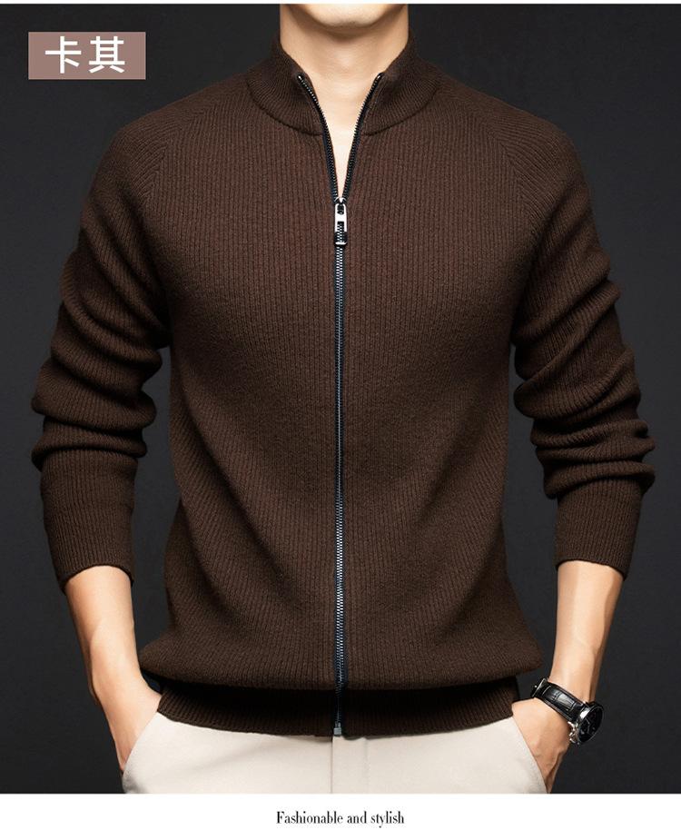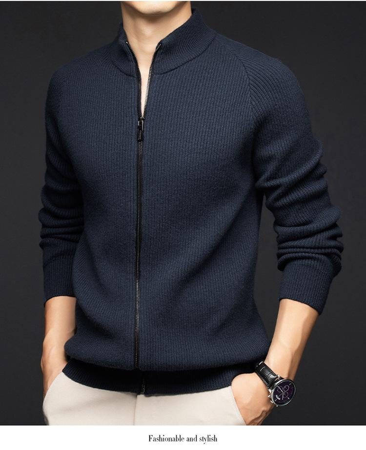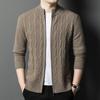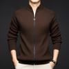 Cárdigan de punto para hombre, novedad de otoño e invierno de 2024, cuello alto, cremallera, lana pura, manga larga, suéter informal de moda