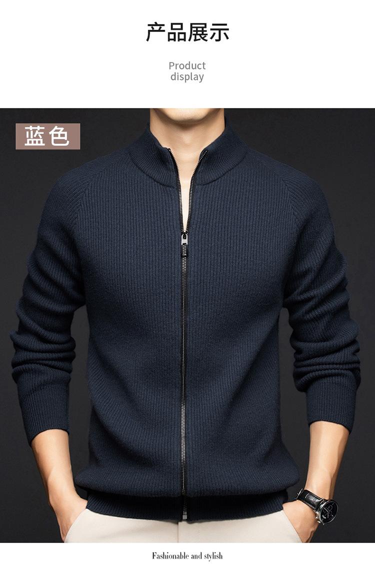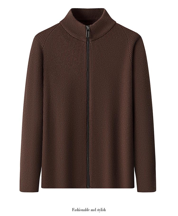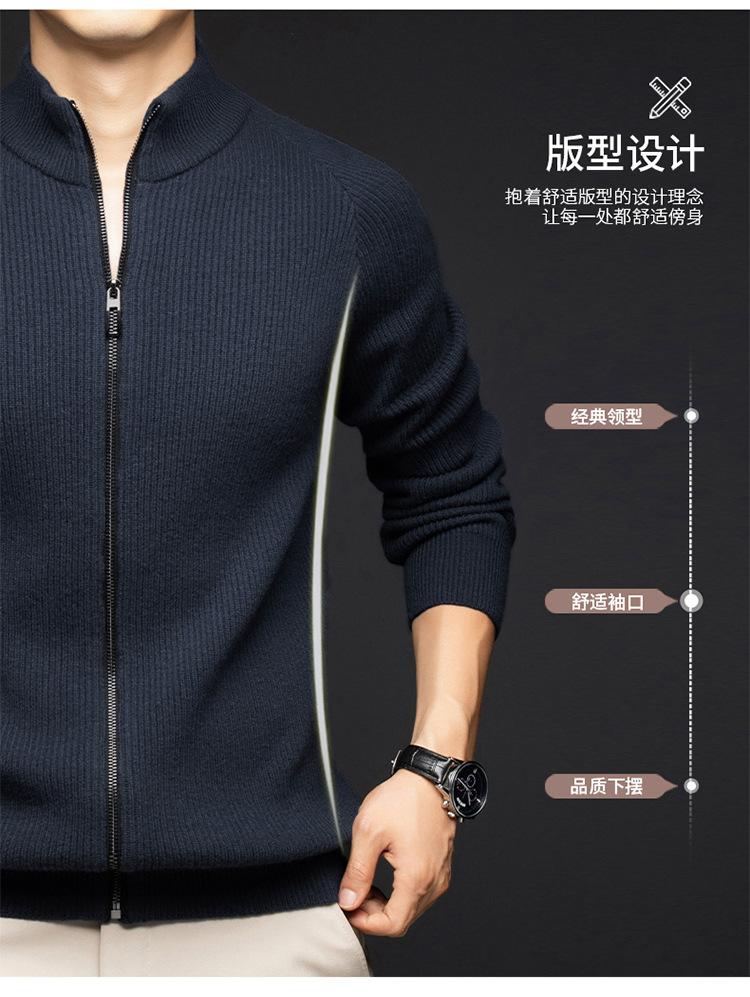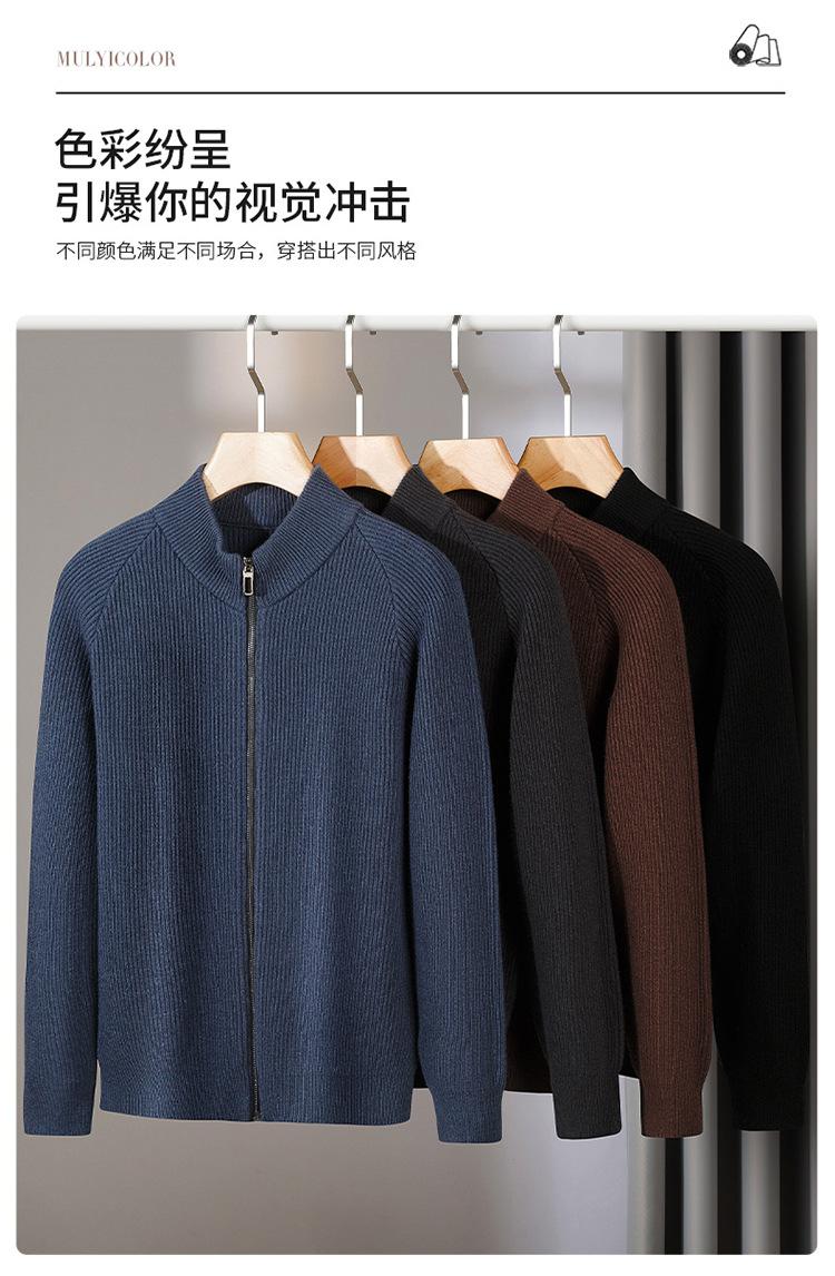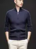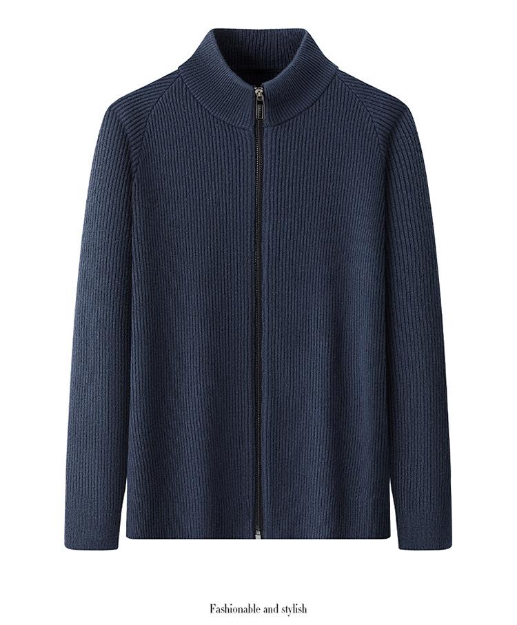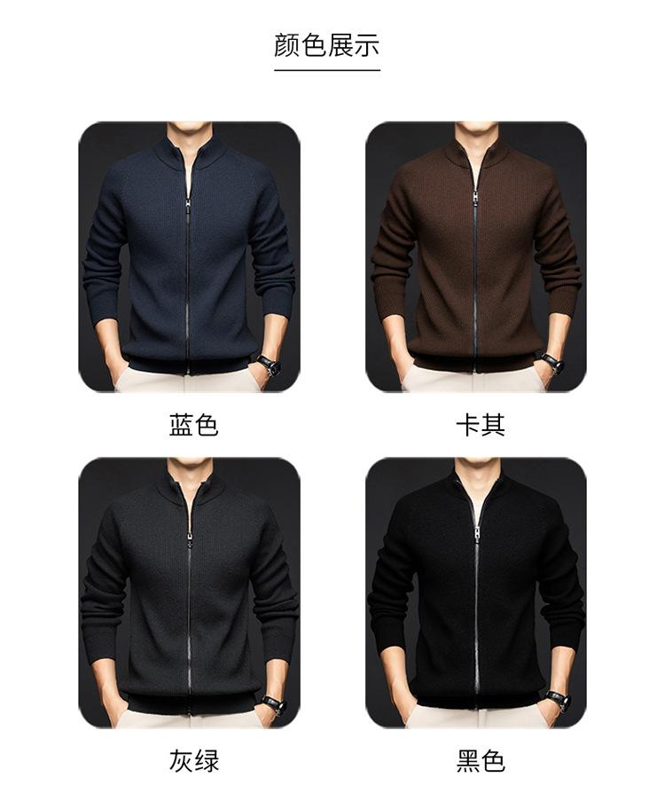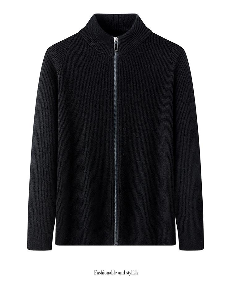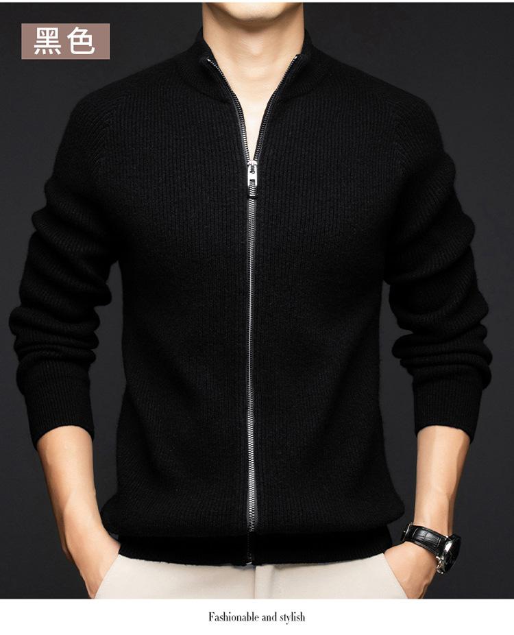 Cárdigan de punto para hombre, novedad de otoño e invierno de 2024, cuello alto, cremallera, lana pura, manga larga, suéter informal de moda