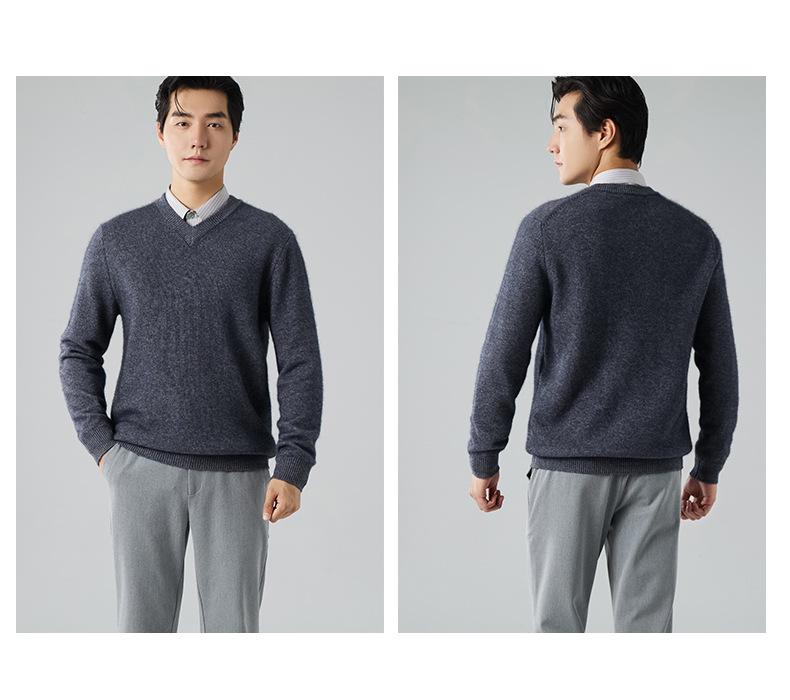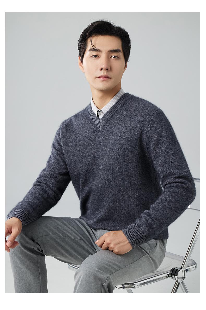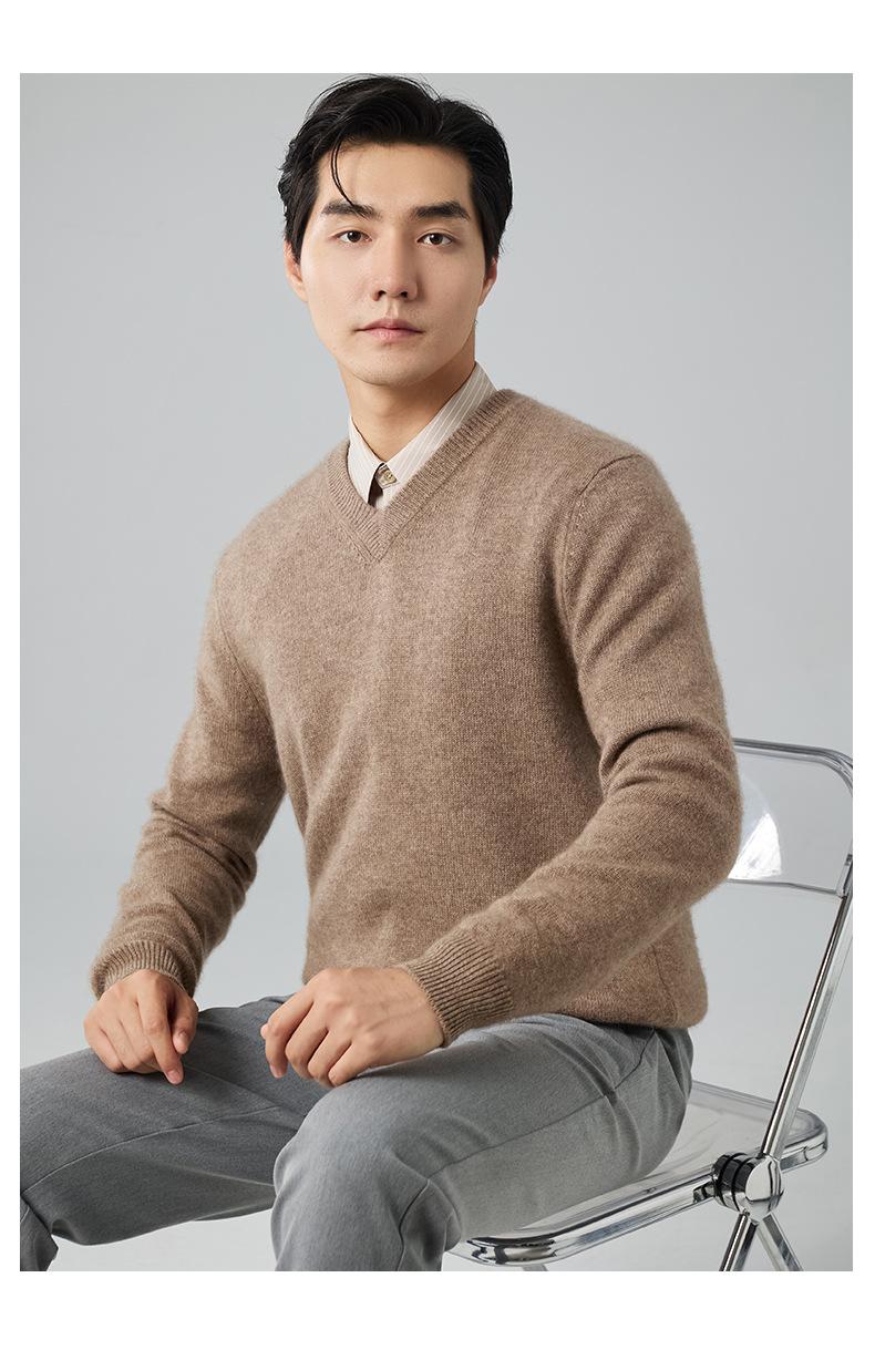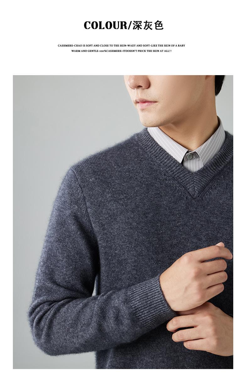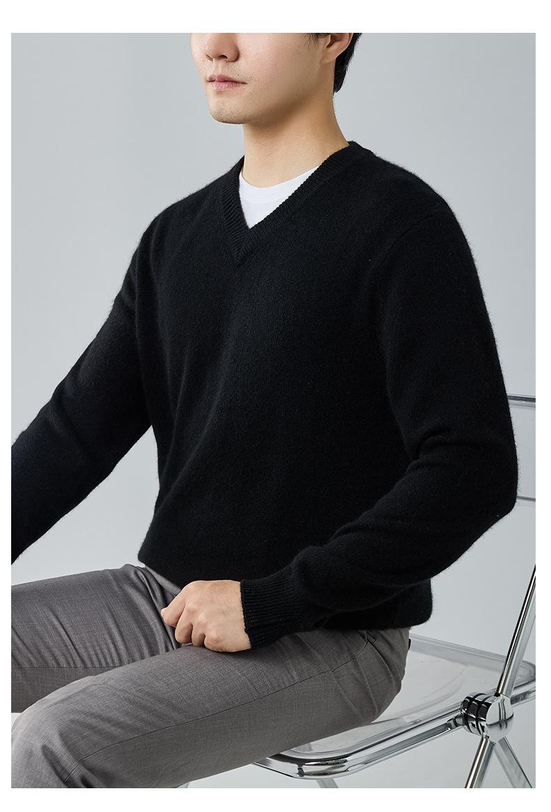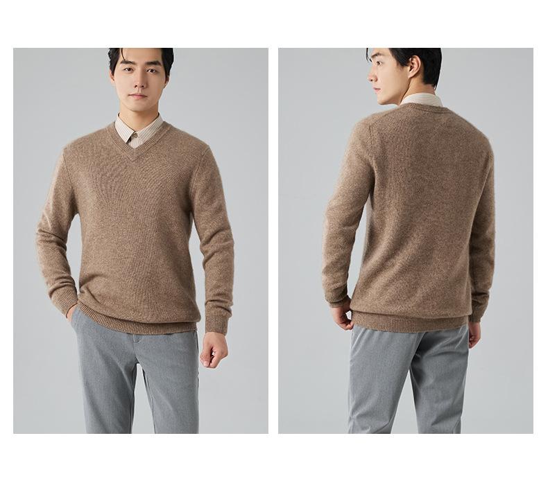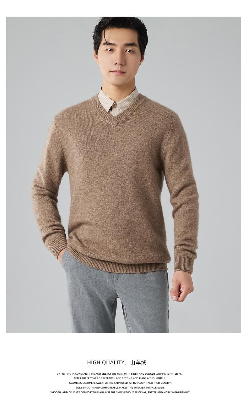 Suéter de cachemira de montaña para hombre, suéter de negocios de color sólido grueso con cuello en V, camisa informal de punto de lana suelta, otoño e invierno, nuevo
