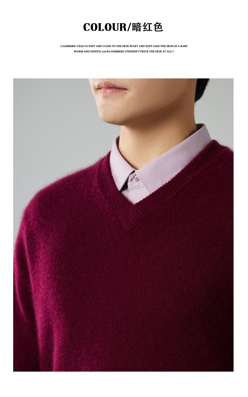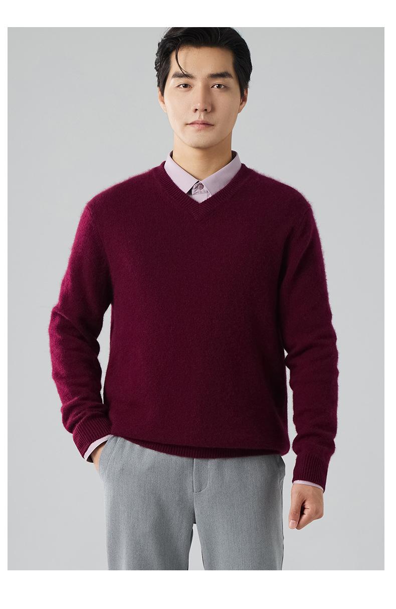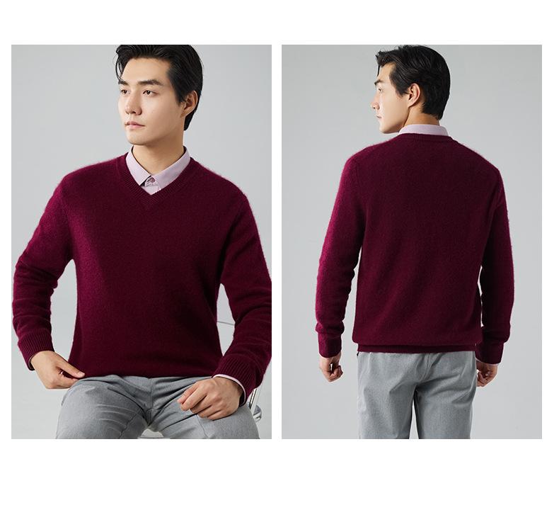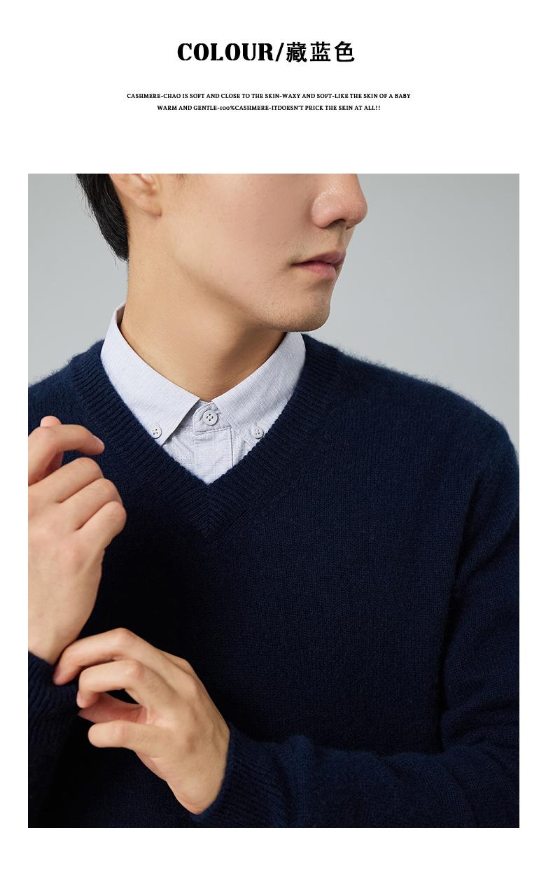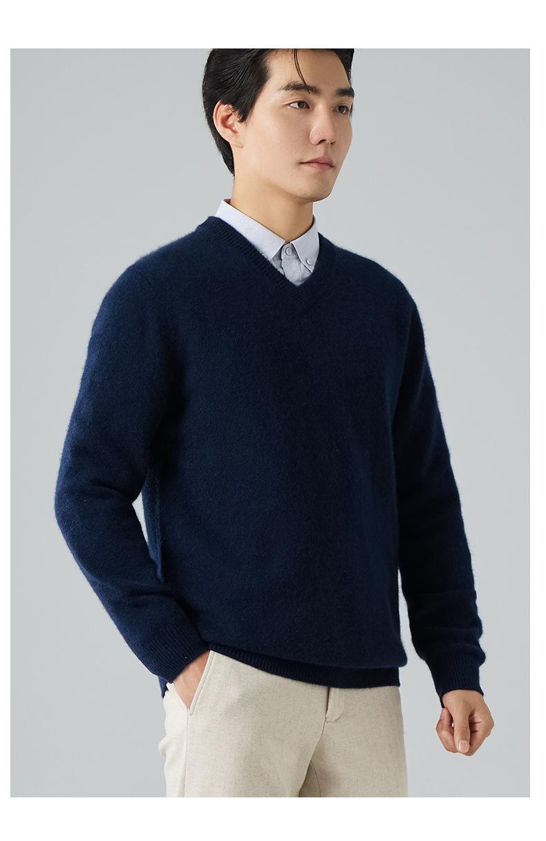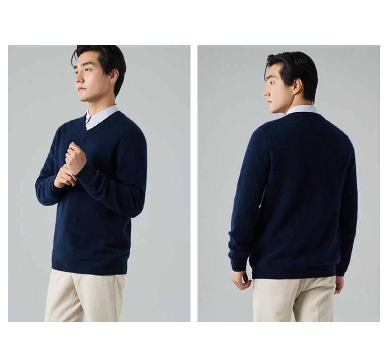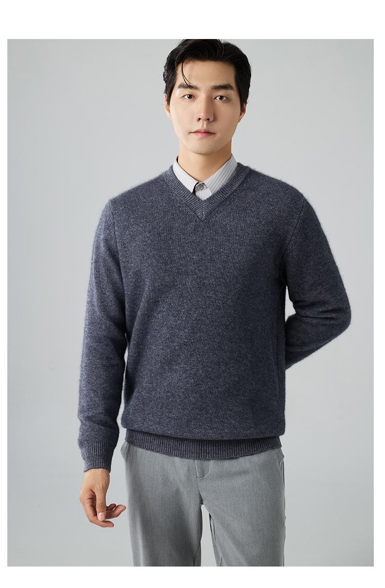 Suéter de cachemira de montaña para hombre, suéter de negocios de color sólido grueso con cuello en V, camisa informal de punto de lana suelta, otoño e invierno, nuevo