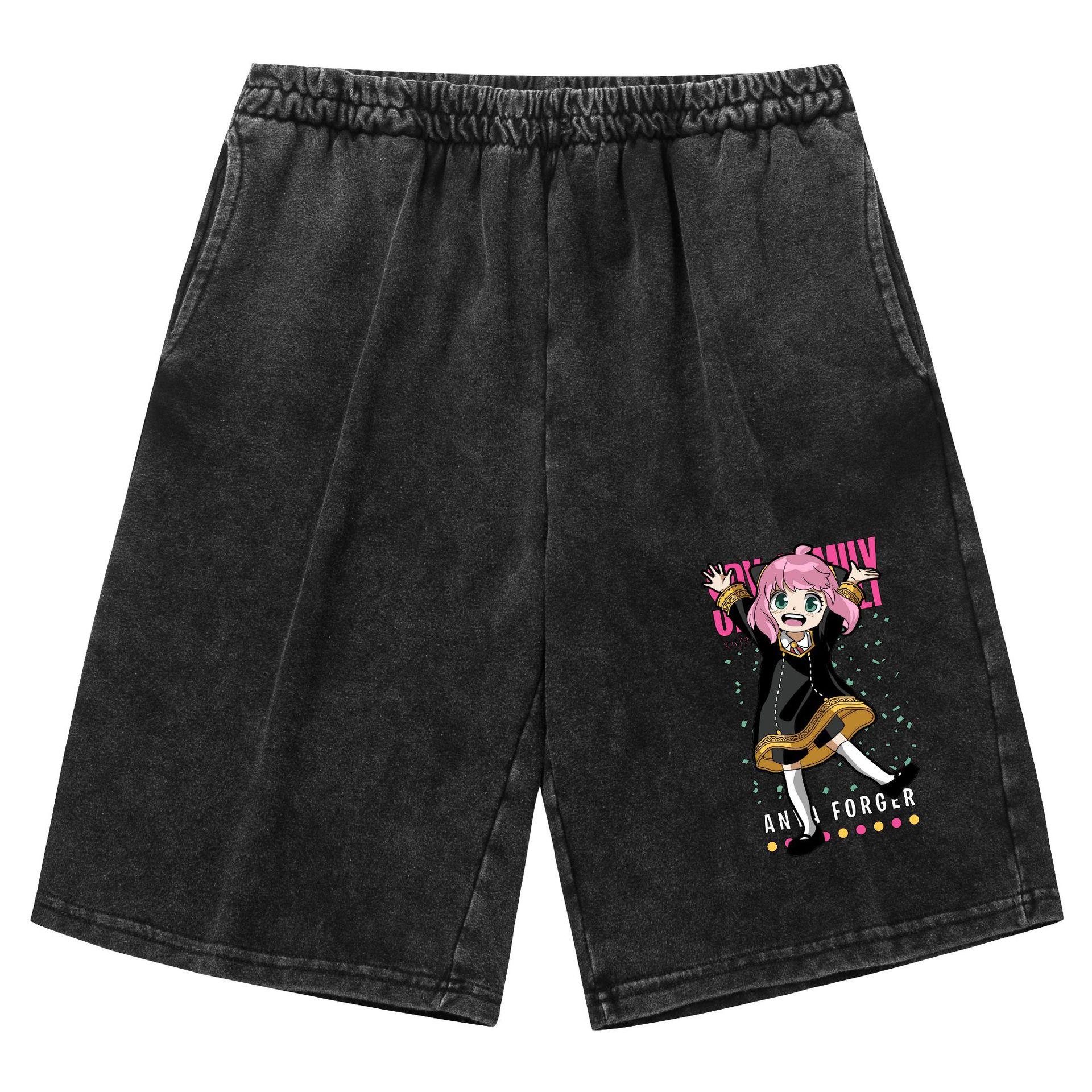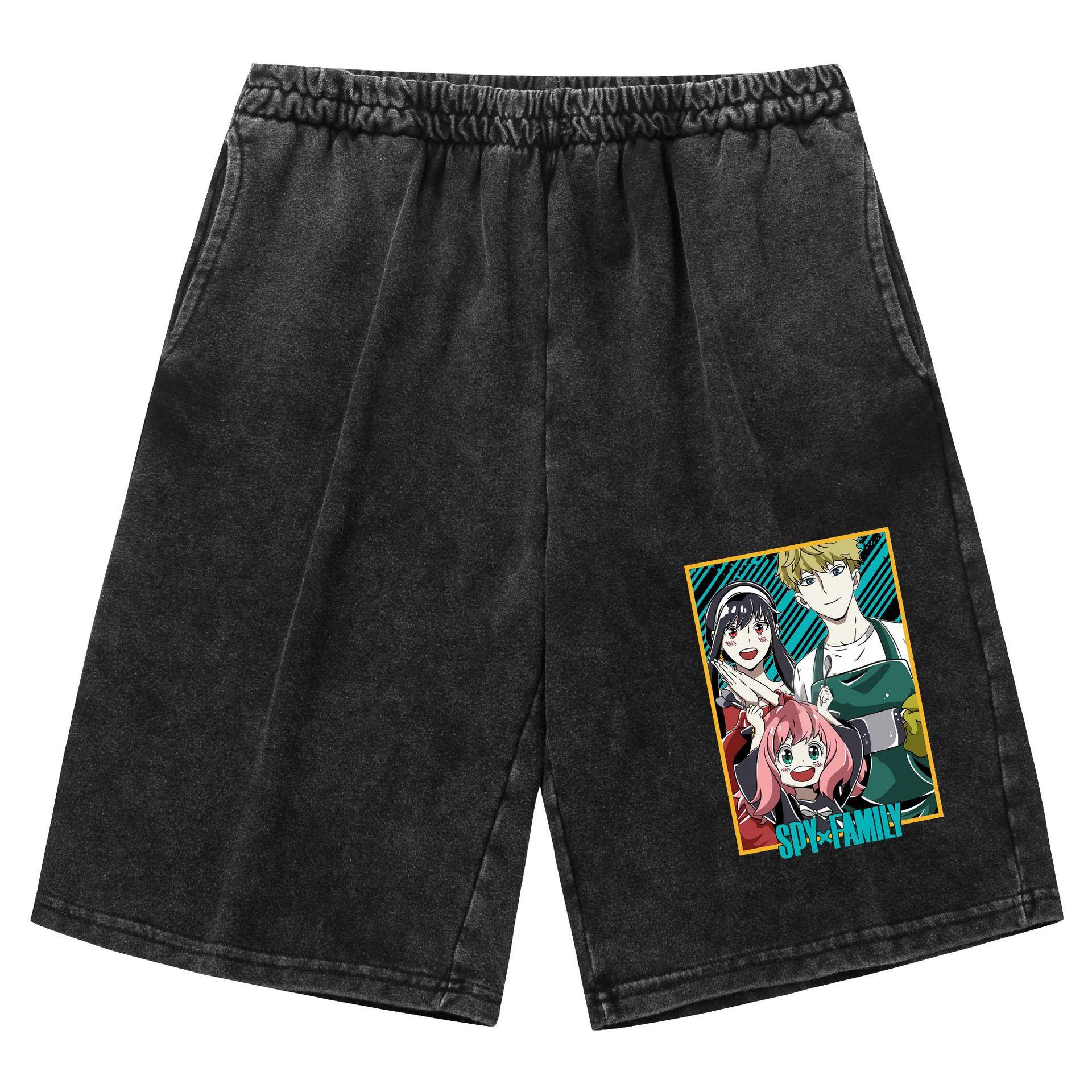 Pantalones cortos vintage lavados viejos transfronterizos para hombre y mujer casa de juegos de espías Spy X Family estampado ocio deportes