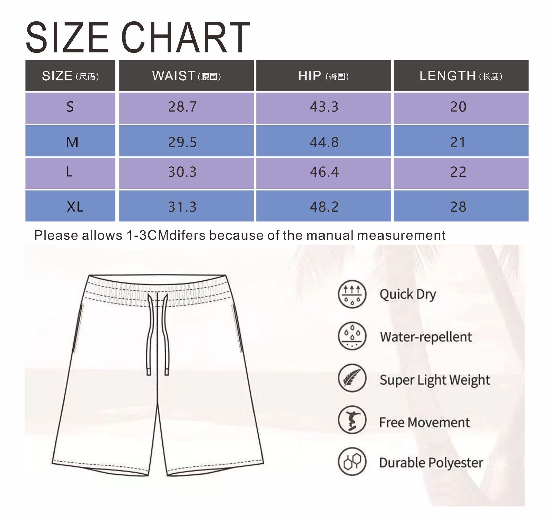 S, M, L, XL