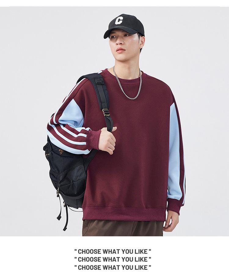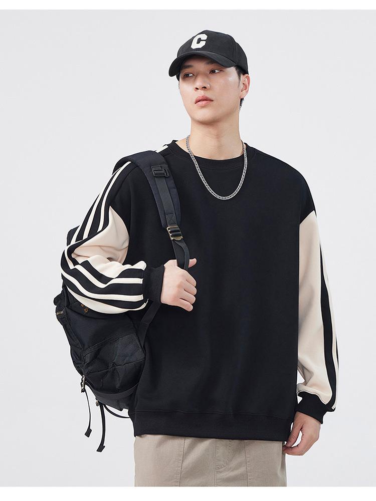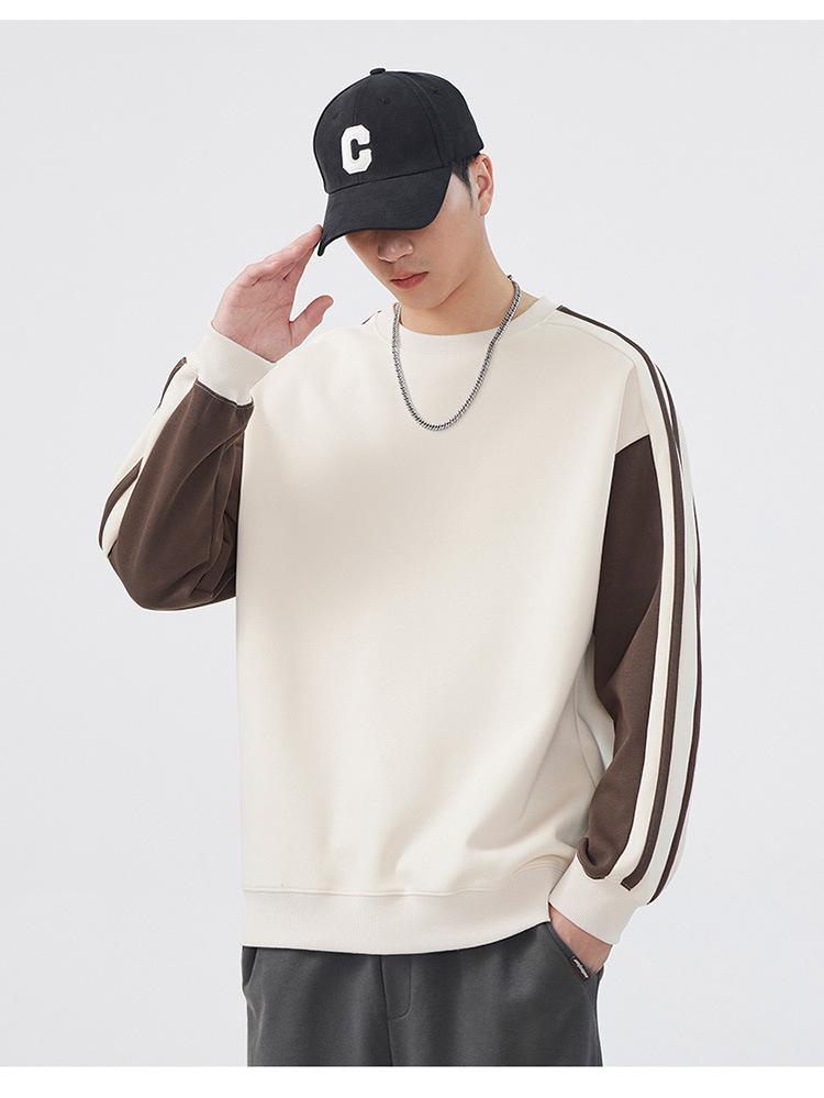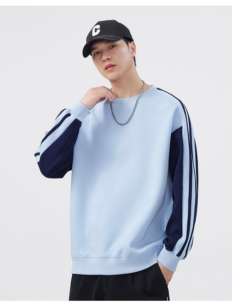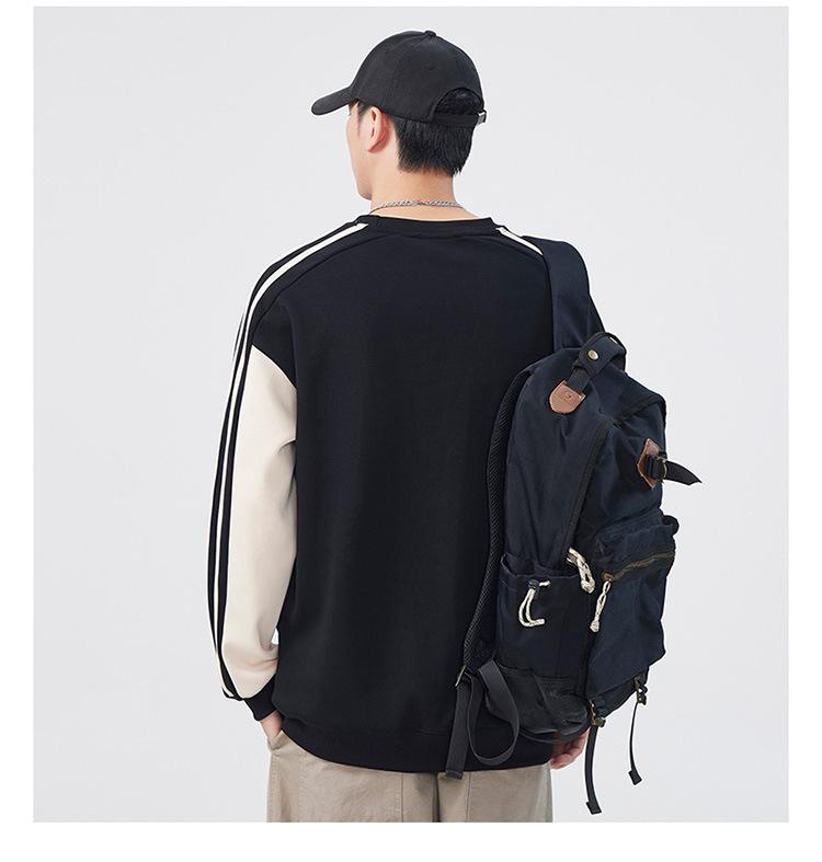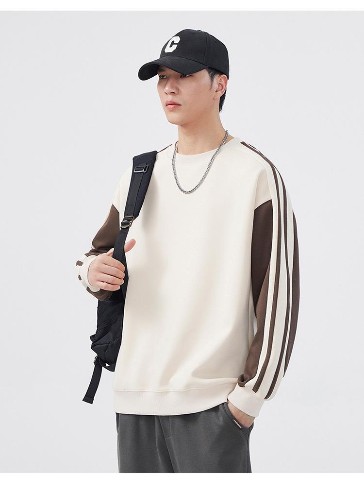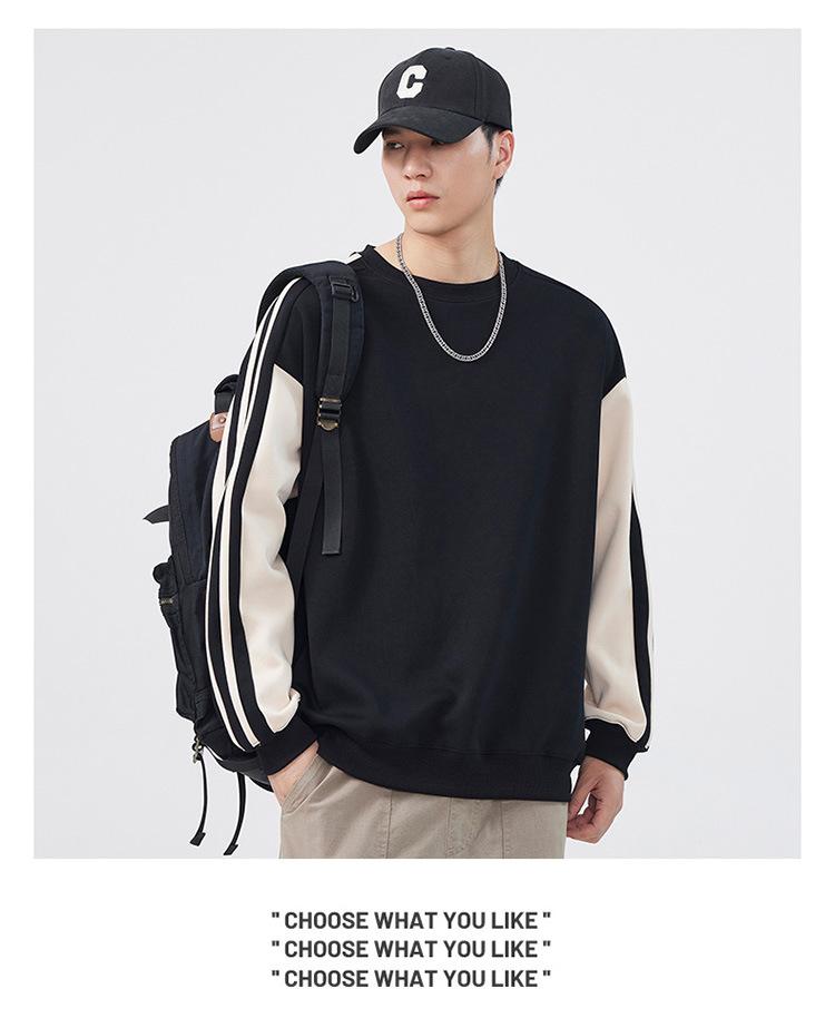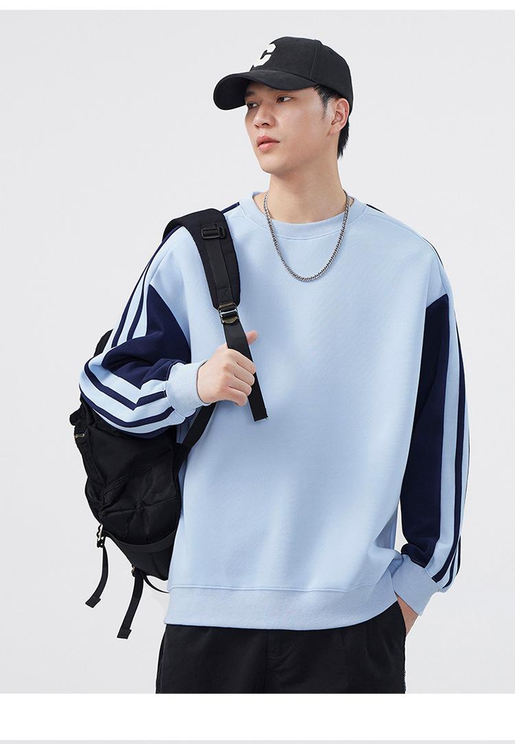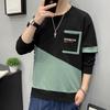 Suéter con costuras de color en contraste para hombre, camiseta de manga larga con cuello redondo para primavera y otoño, camiseta deportiva de manga larga con hombros descubiertos para jóvenes de marca de moda para hombre.