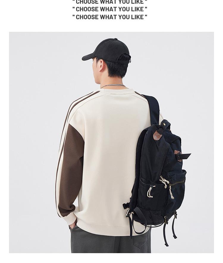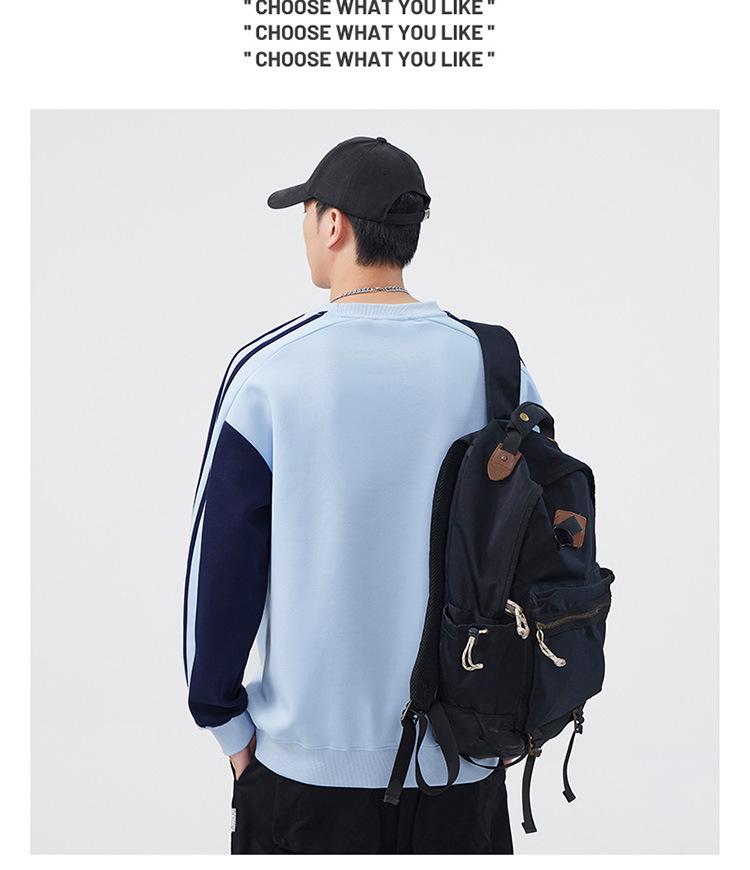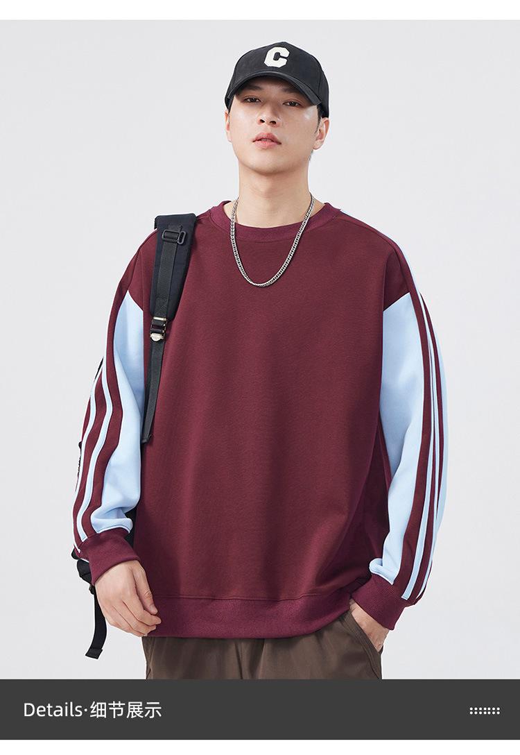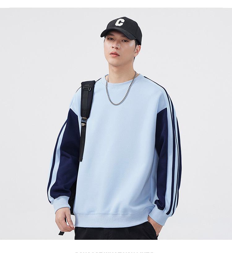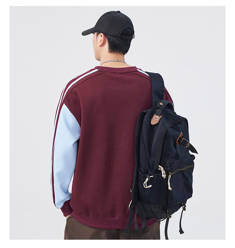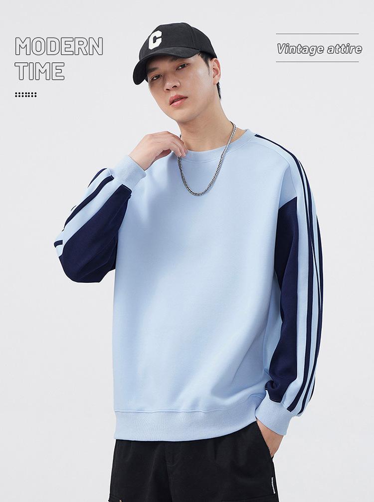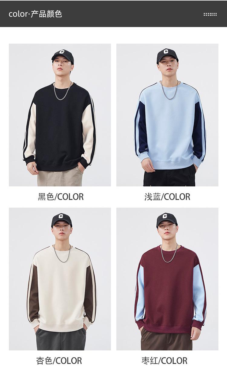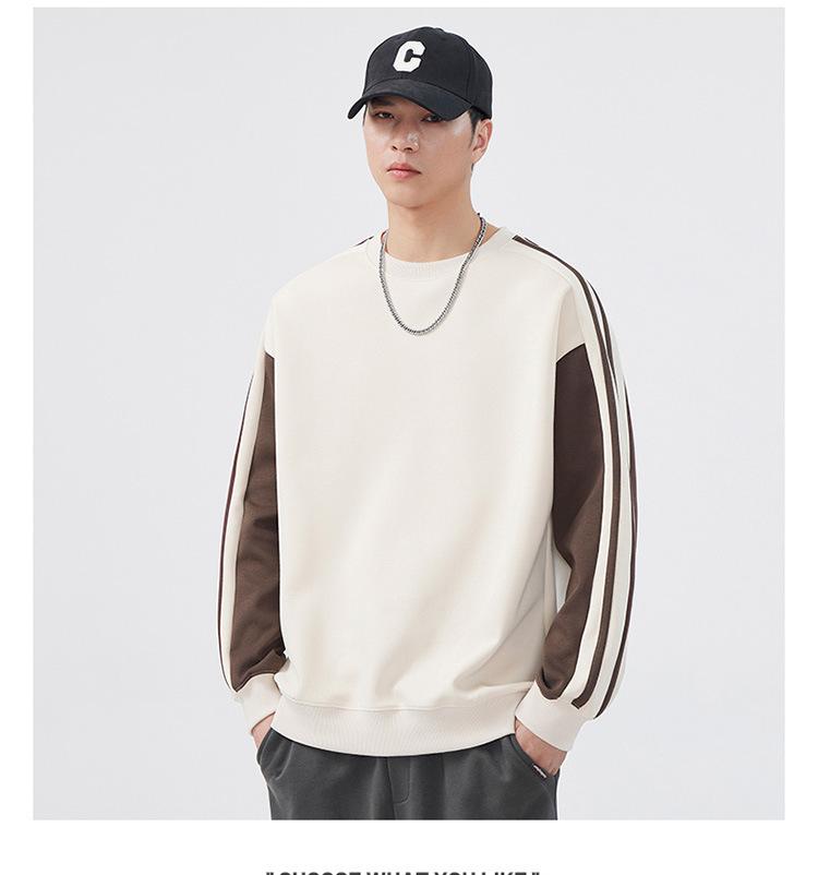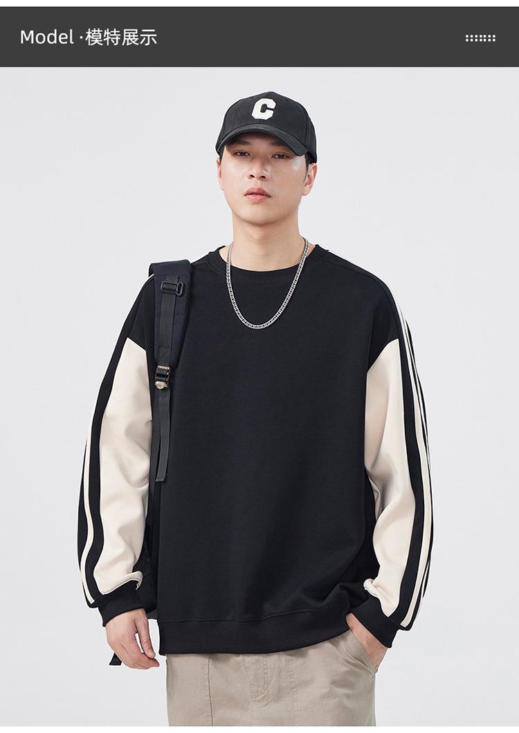 Suéter con costuras de color en contraste para hombre, camiseta de manga larga con cuello redondo para primavera y otoño, camiseta deportiva de manga larga con hombros descubiertos para jóvenes de marca de moda para hombre.