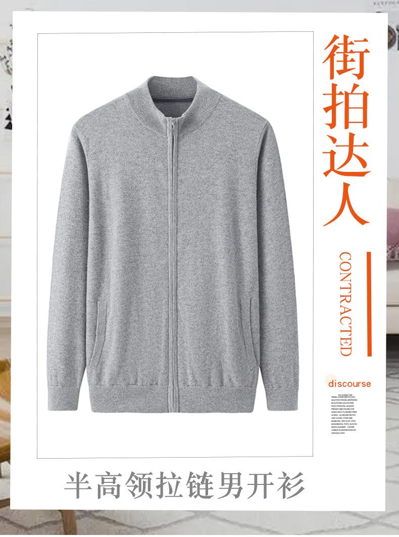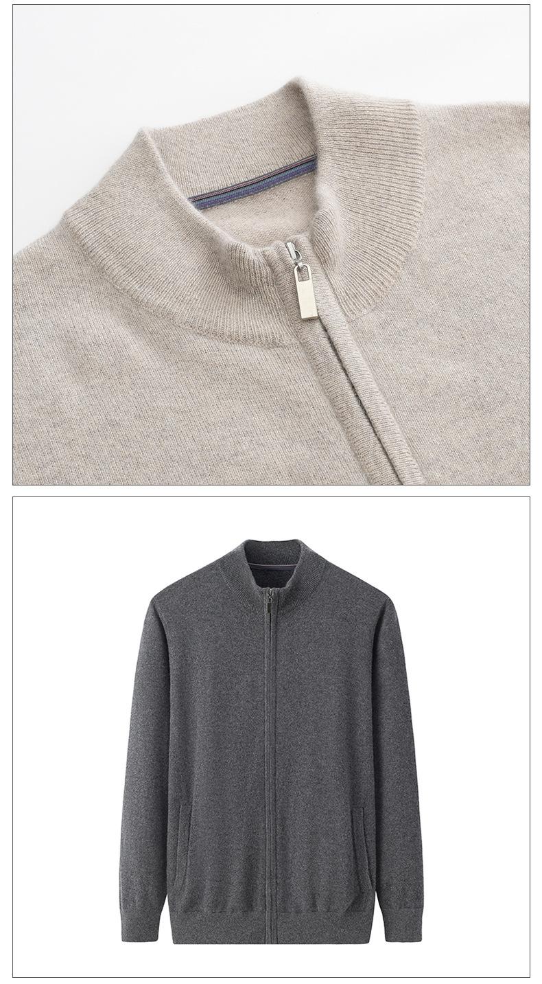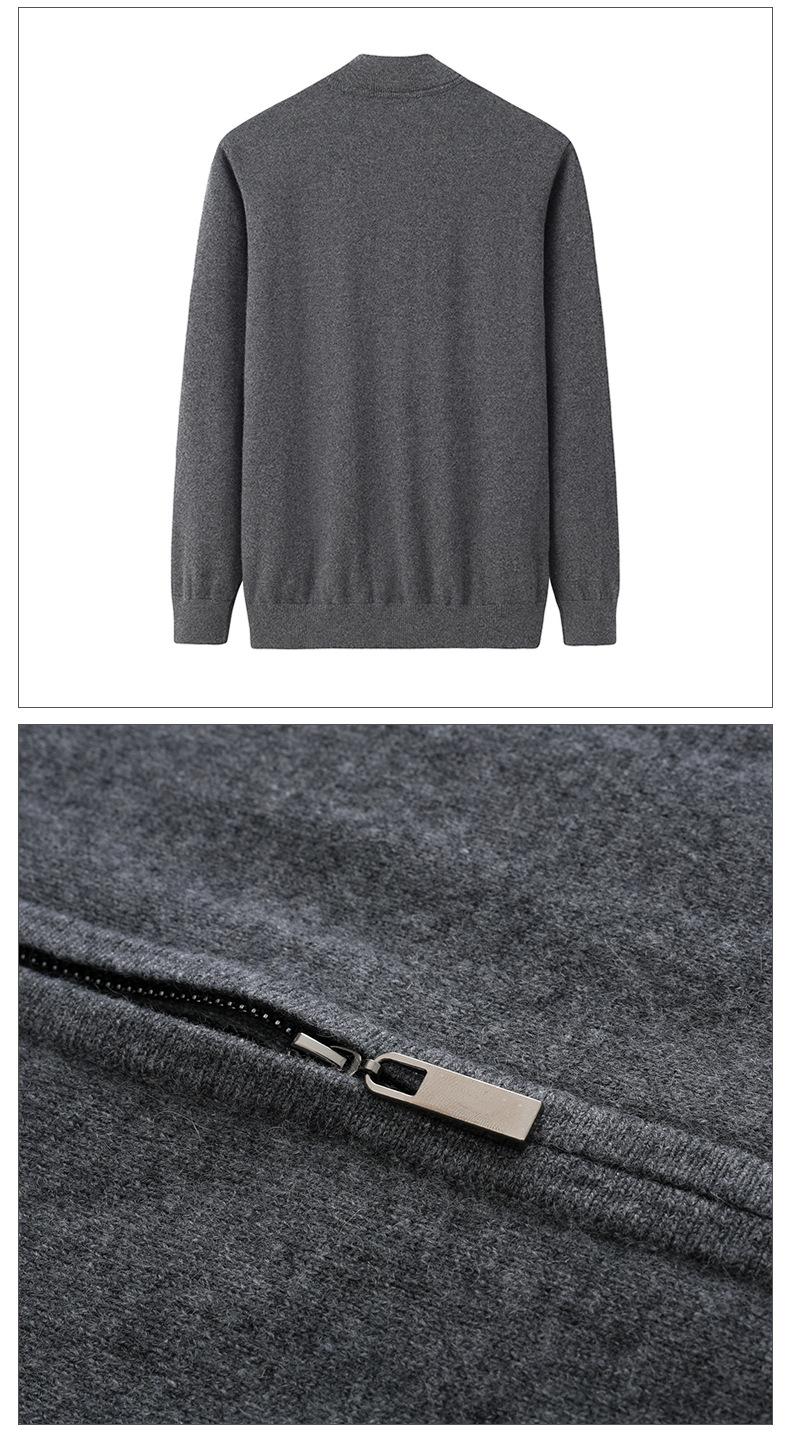 Nuevo Cárdigan de Punto Grueso con Cremallera de Media Cuello Tortuga de Cachemira Pura para Hombre Suéter Casual de Moda Exterior de Manga Larga para Negocios