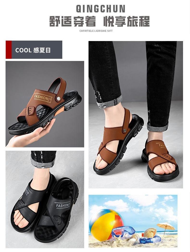 Sandalias para hombre, novedad de verano 2023, de cuero genuino, suela suave, informales, para exteriores, para playa, antideslizantes, de doble uso