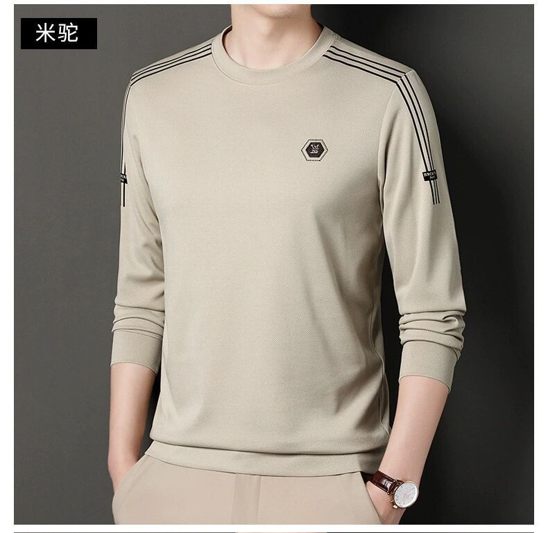 Suéter de algodón de 280 g de alta calidad para hombre, nuevo jersey de cuello redondo moderno de otoño, camisa básica, combinable con todo, informal.