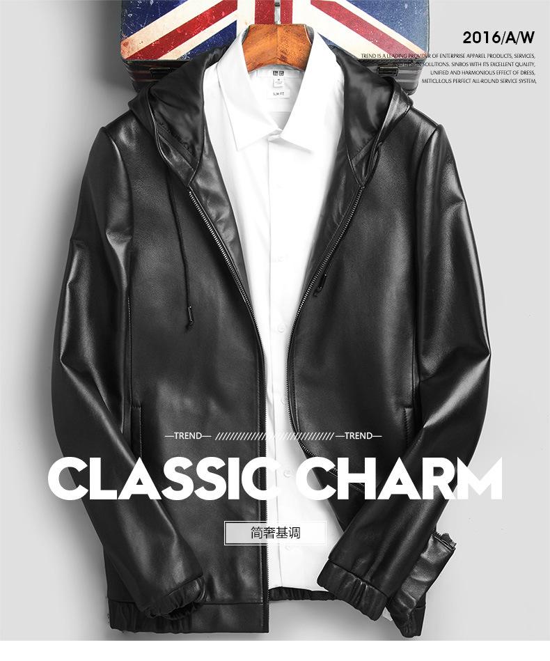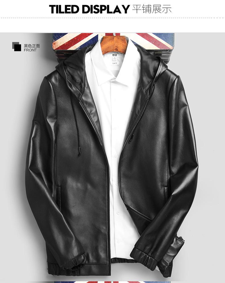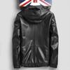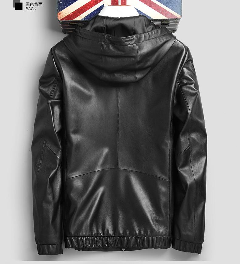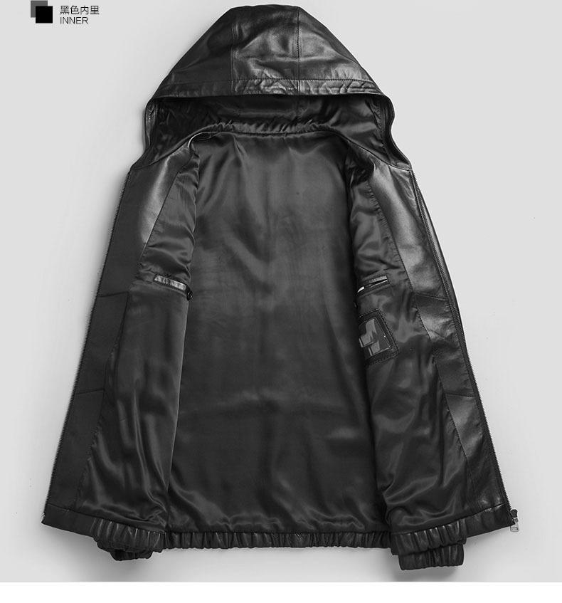 Chaqueta de Piel Genuina Nueva Haining 2025 para Hombre Primera Capa Piel de Cabra Negra Slim Estilo Coreano con Capucha Chaqueta de Primavera y Otoño