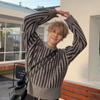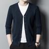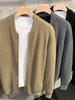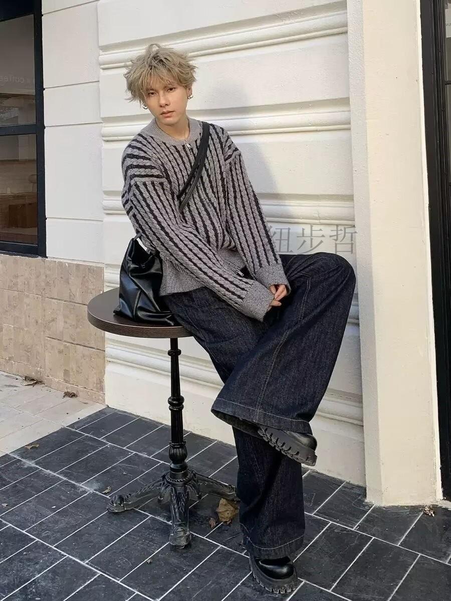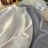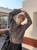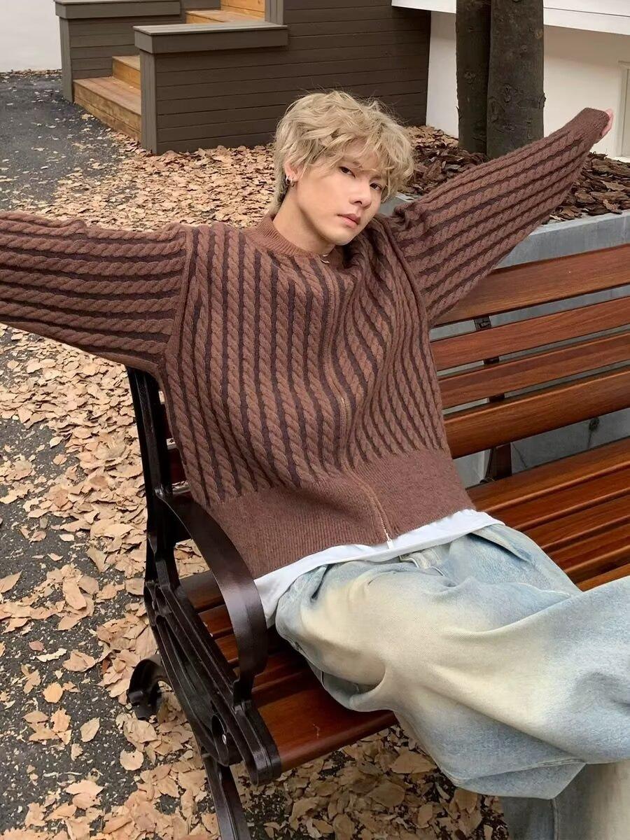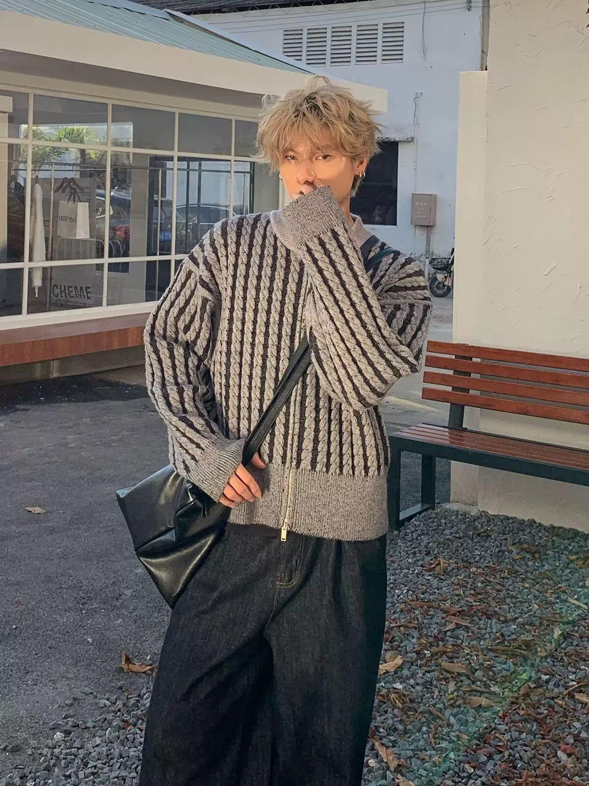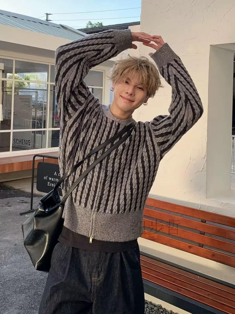 Suéter con cremallera y rayas en contraste retro americano de primavera y otoño para hombre, chaqueta tipo cárdigan de moda con textura torcida.