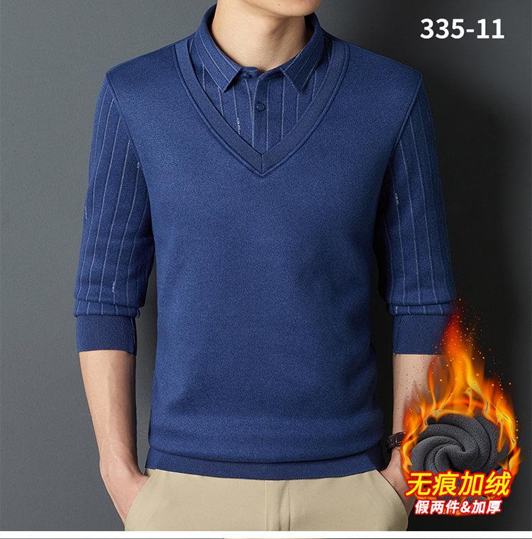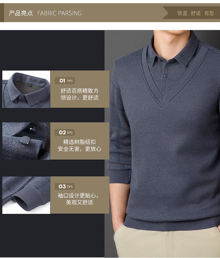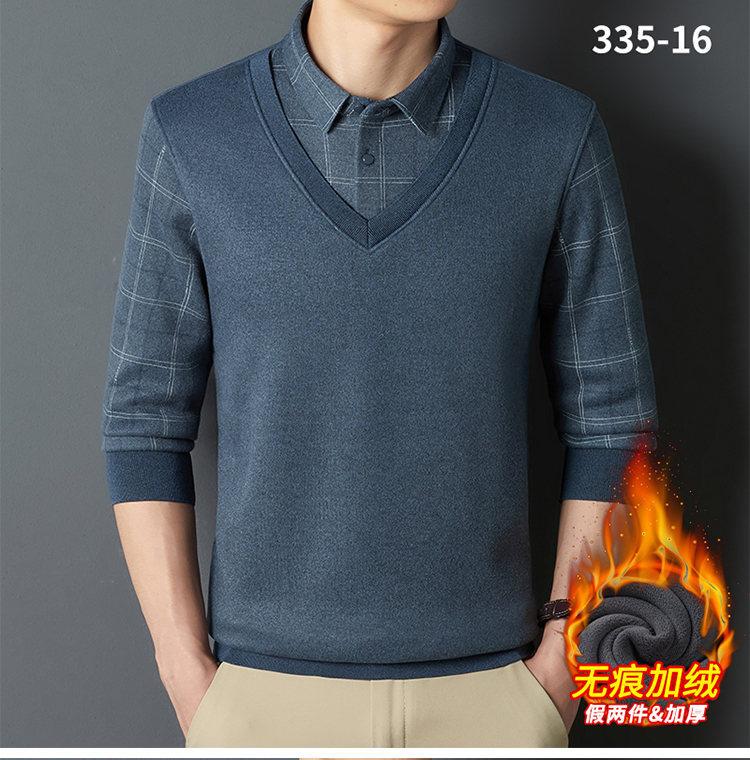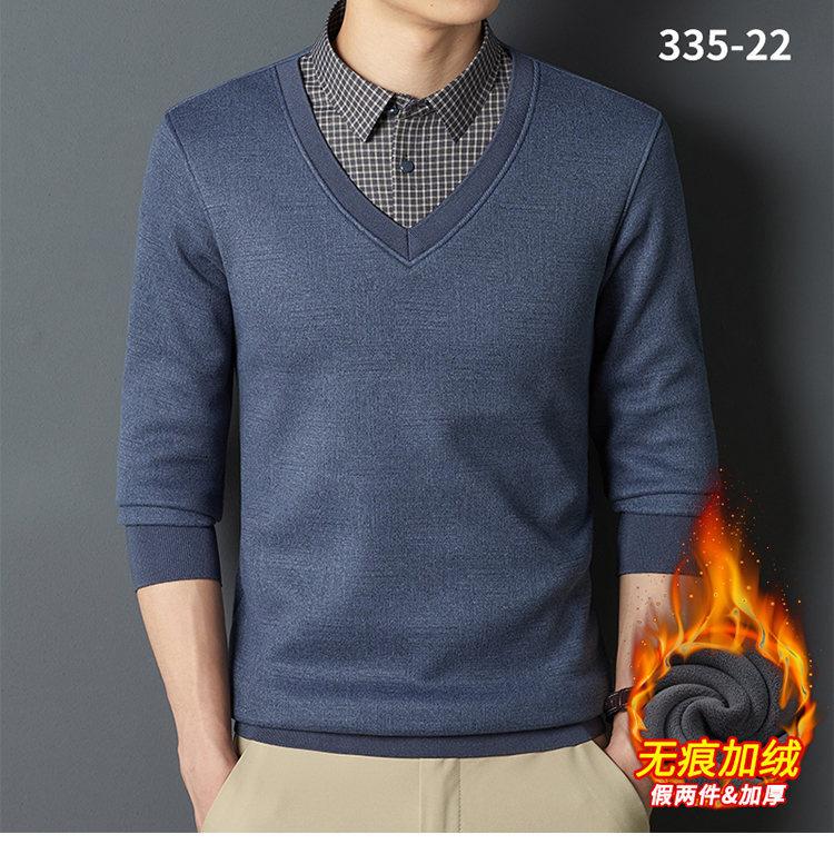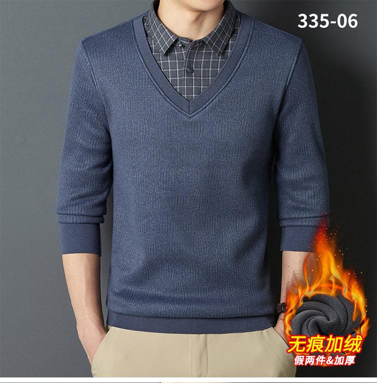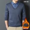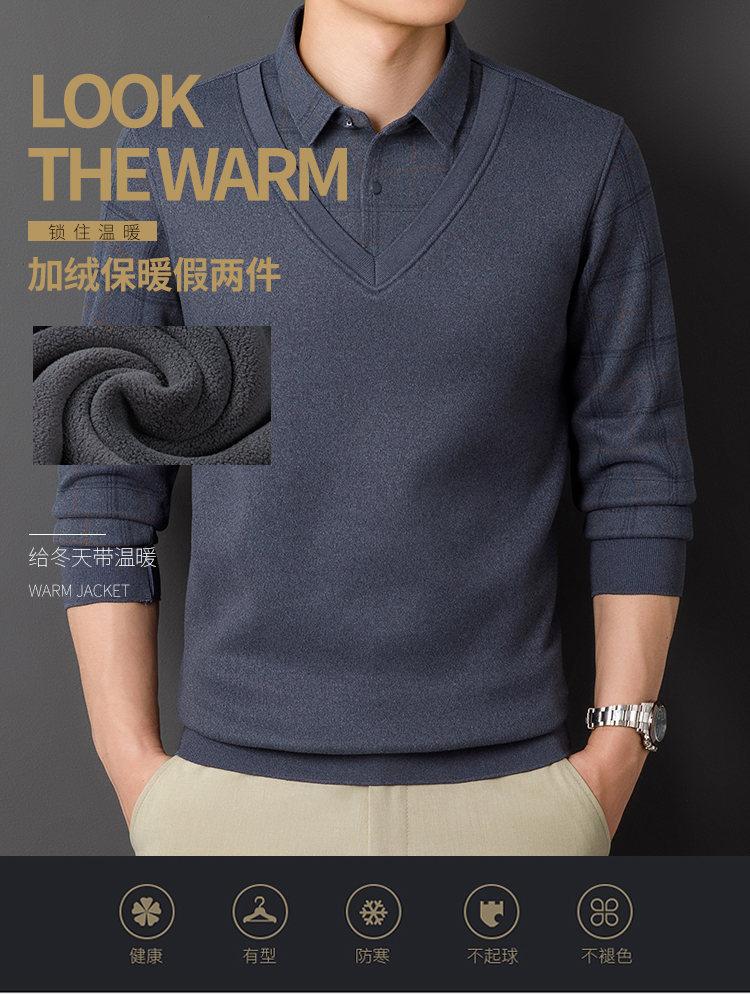 Compra Suéter cálido de invierno para hombre, camisa falsa de dos piezas con cuello en V y forro polar, grueso, de mediana edad, de punto base al por mayor en Joom.pro