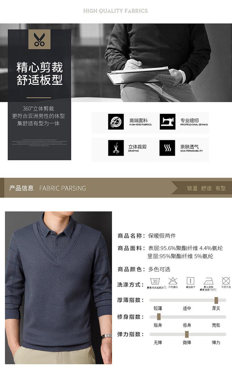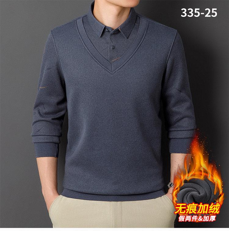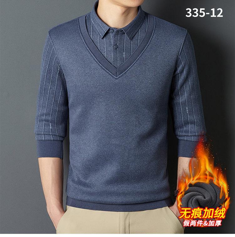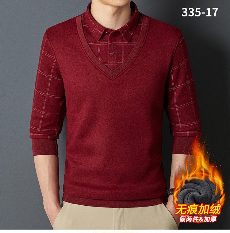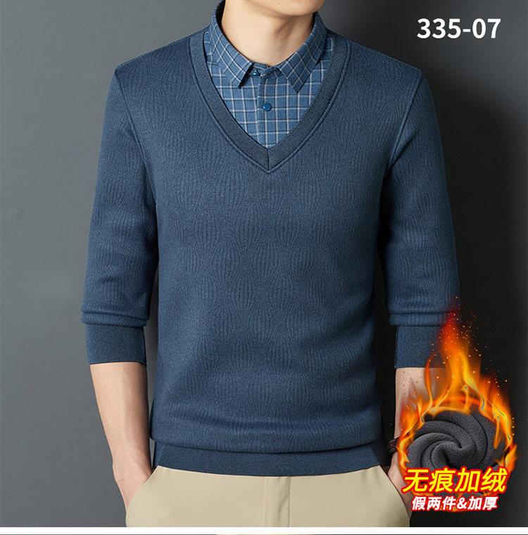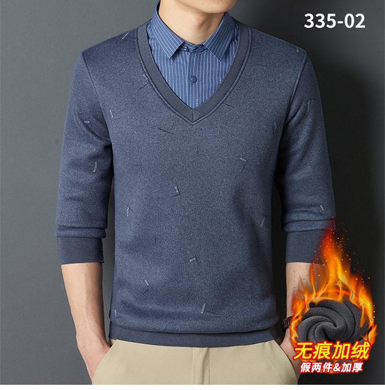 Compra Suéter cálido de invierno para hombre, camisa falsa de dos piezas con cuello en V y forro polar, grueso, de mediana edad, de punto base al por mayor en Joom.pro