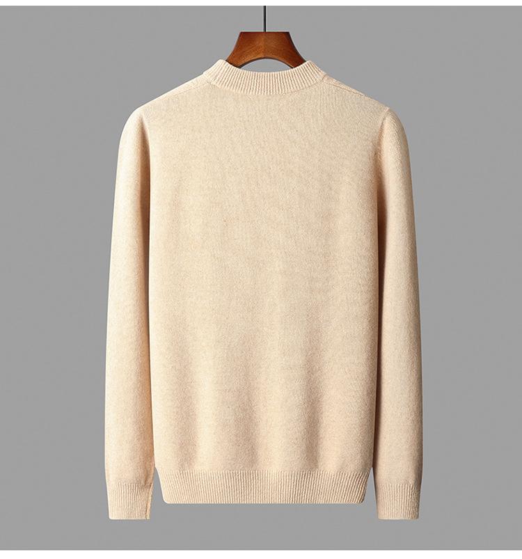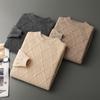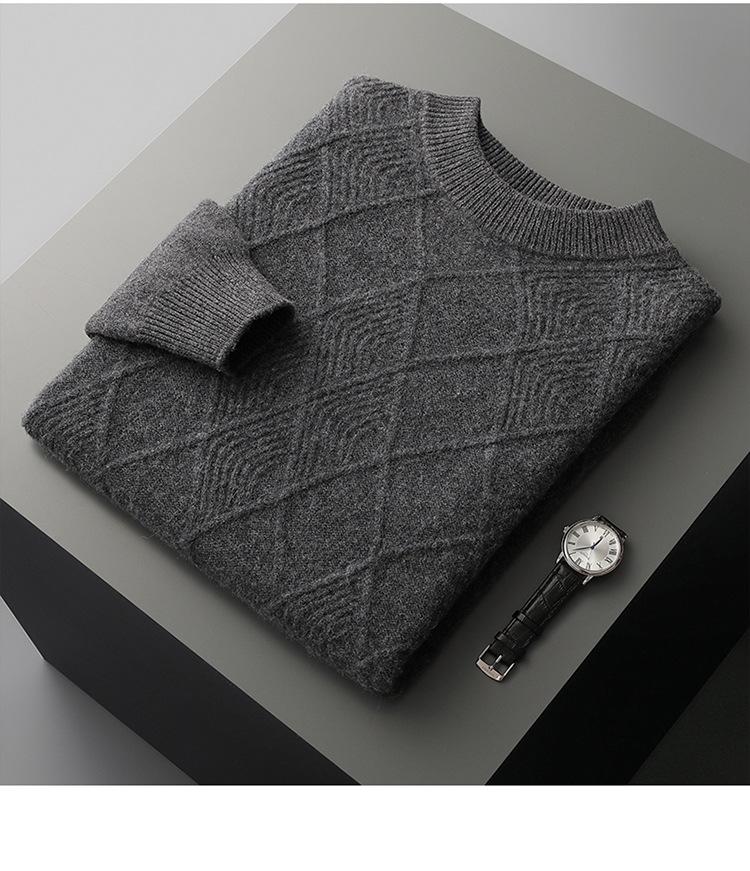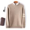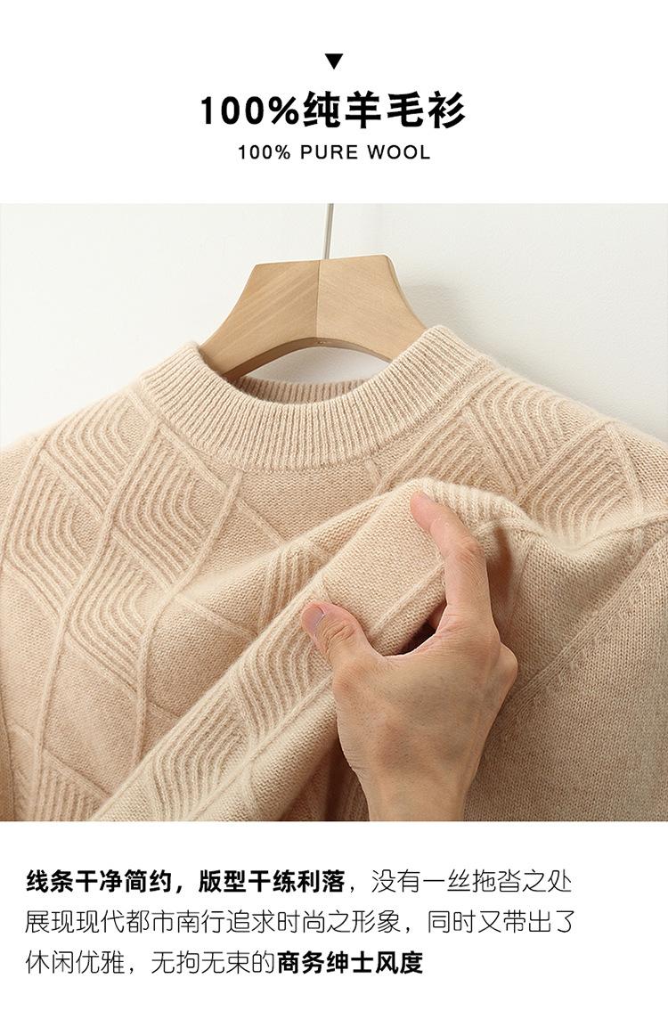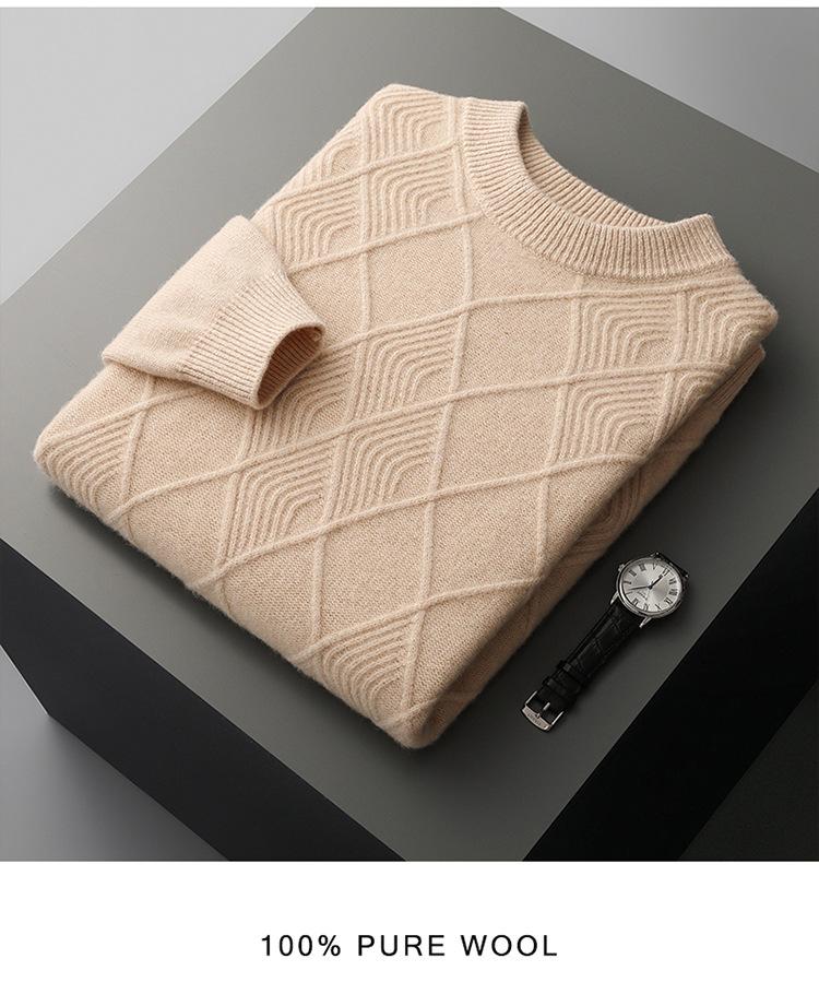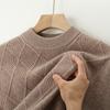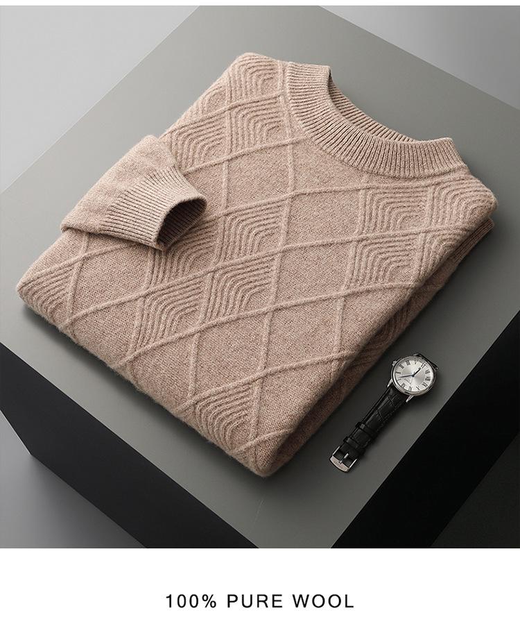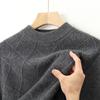 Otoño e Invierno Nuevo Suéter de Lana 100 Pura para Hombre Cuello Redondo Jacquard Color Sólido Grueso Suéter Base Casual Holgado Top