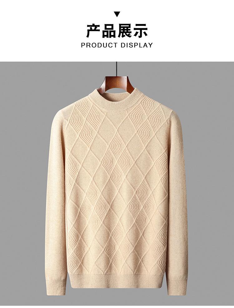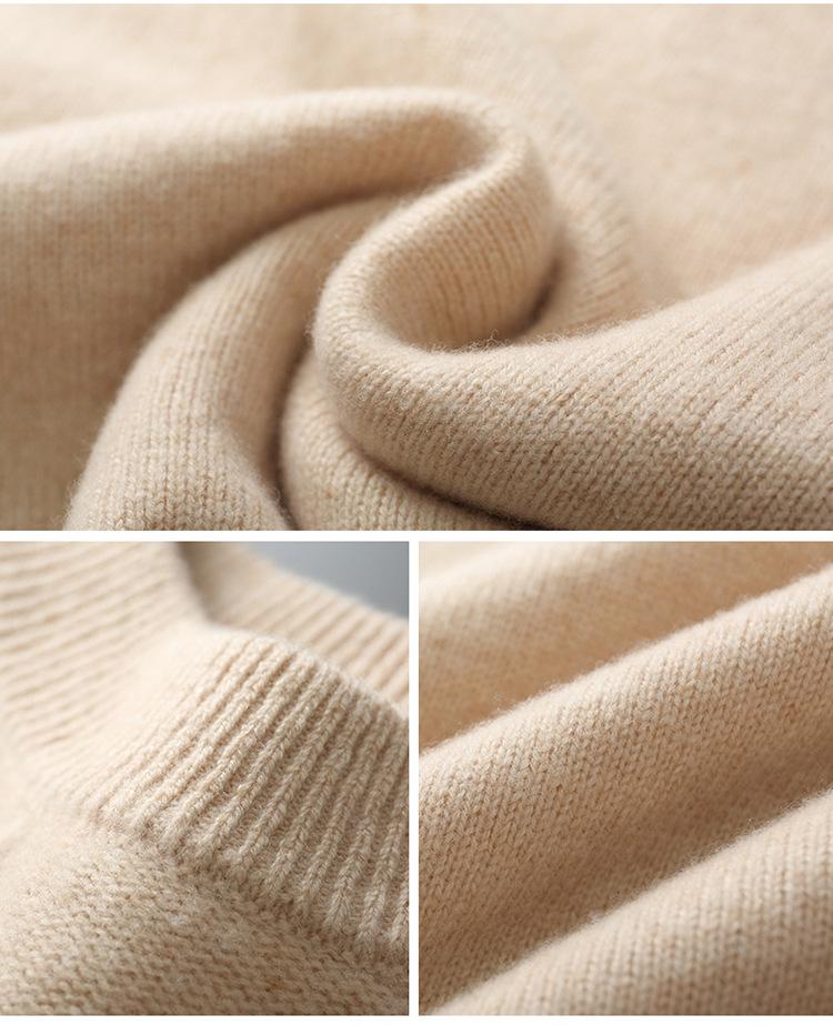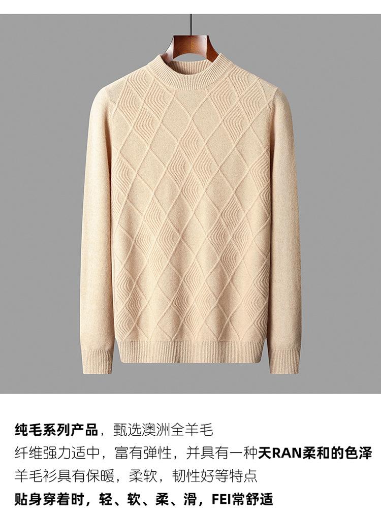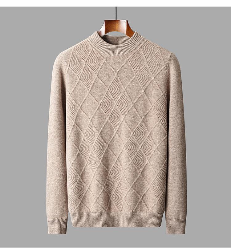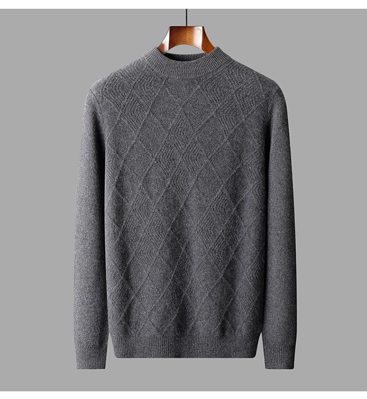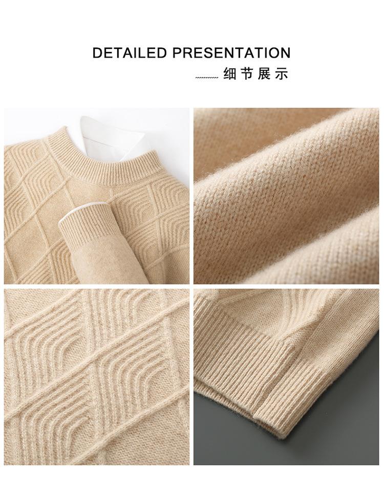 Otoño e Invierno Nuevo Suéter de Lana 100 Pura para Hombre Cuello Redondo Jacquard Color Sólido Grueso Suéter Base Casual Holgado Top