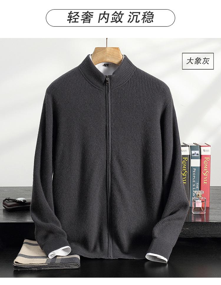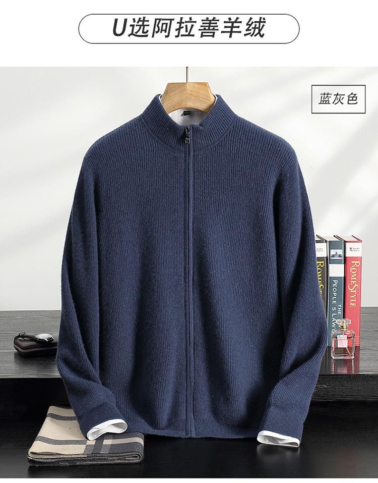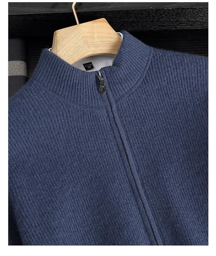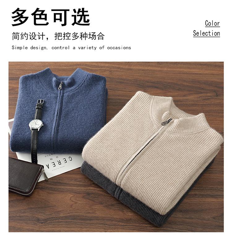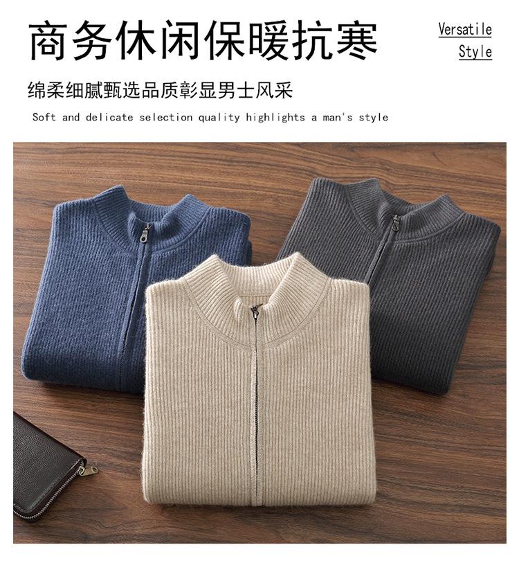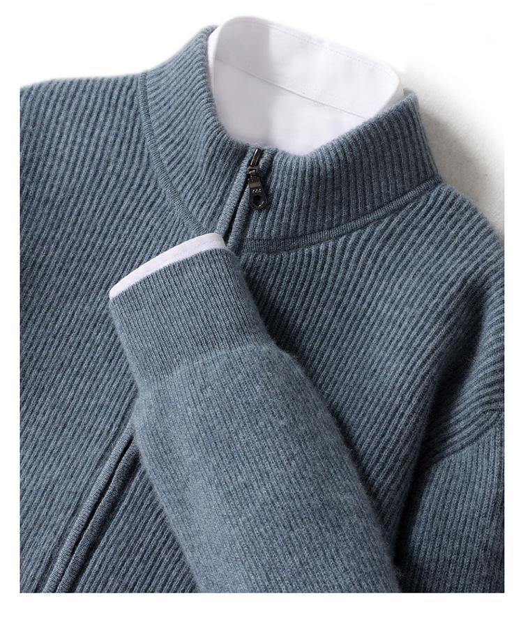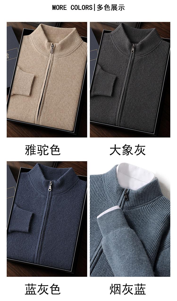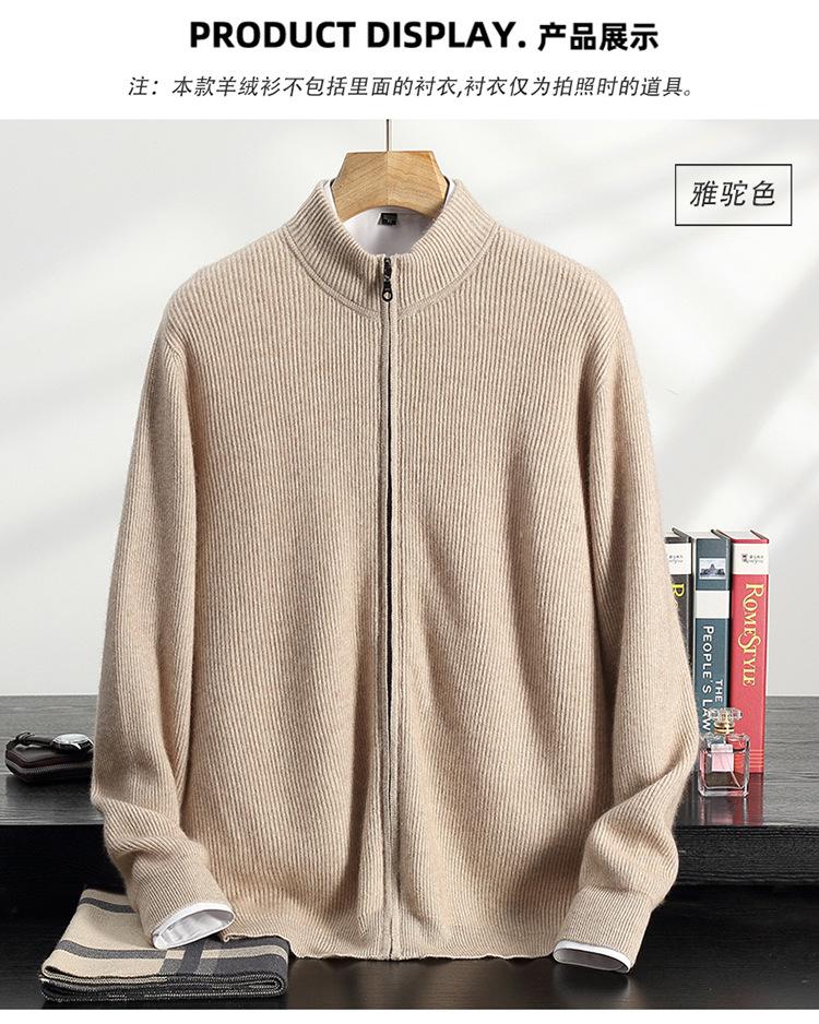 Suéter de cachemira de montaña para hombre, cárdigan informal de lana gruesa de color sólido, chaqueta de punto con cremallera, novedad de otoño