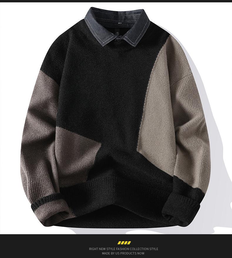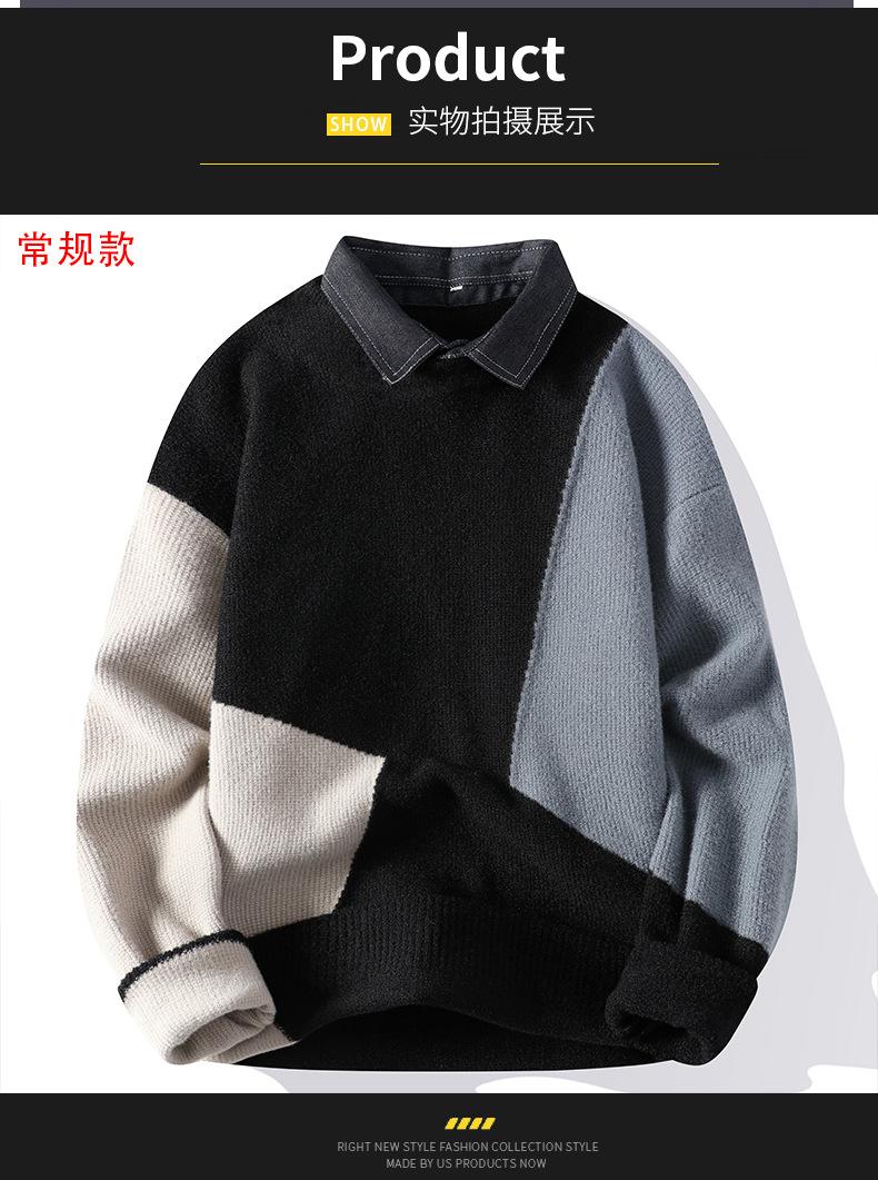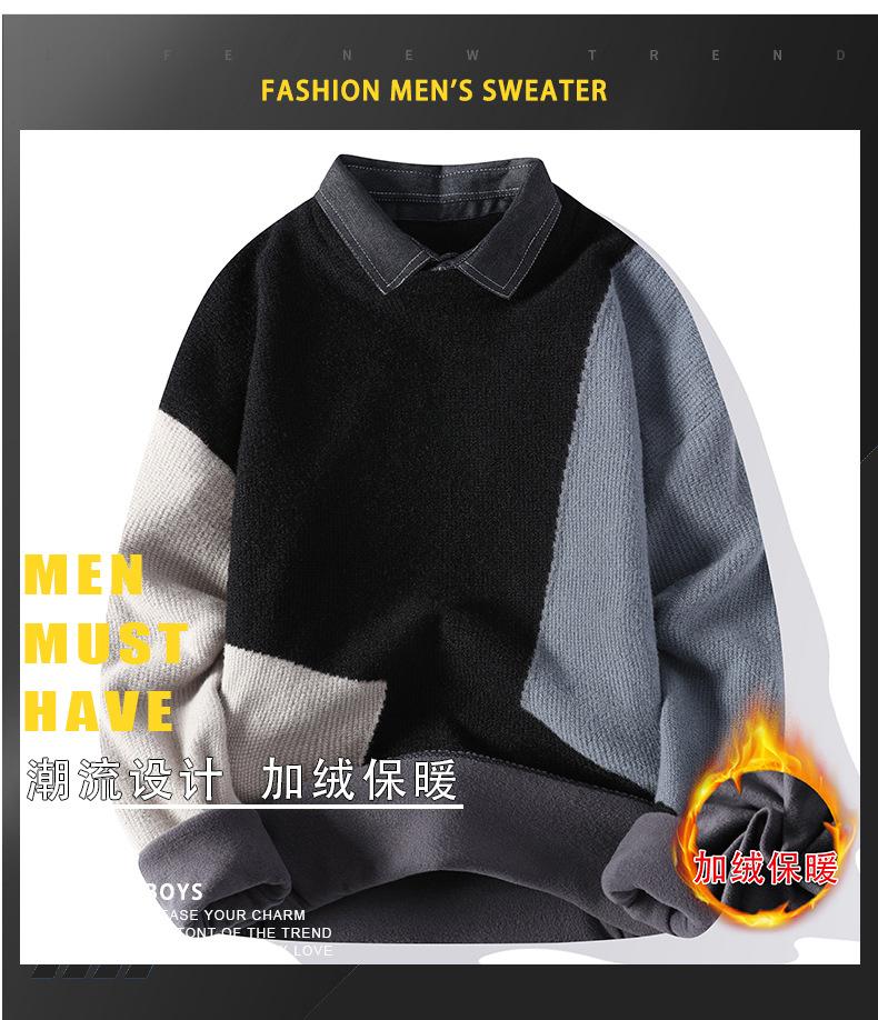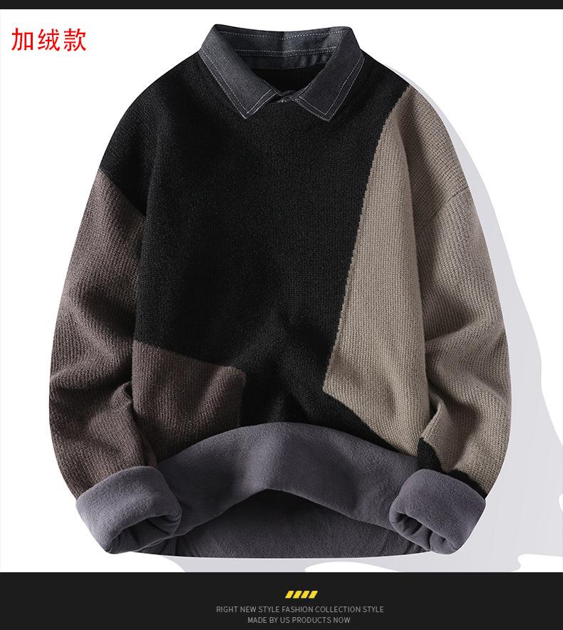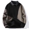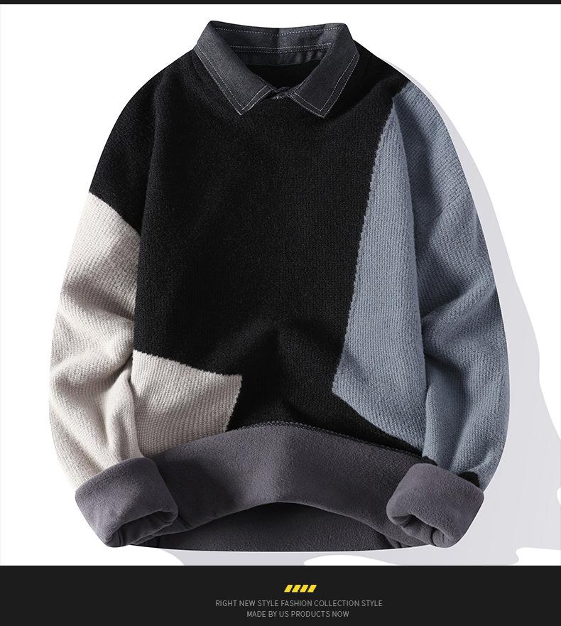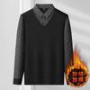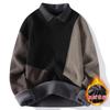 Suéter falso de dos piezas para hombre, de invierno, con forro polar, grueso, de moda, estilo coreano, ajustado, con cuello de camisa a juego de colores.