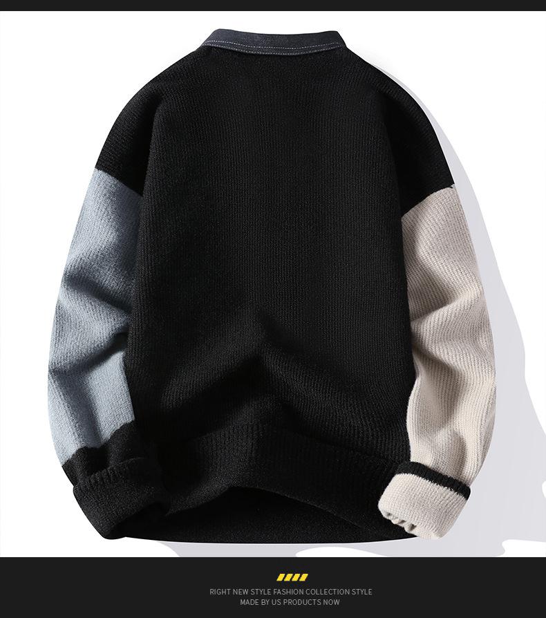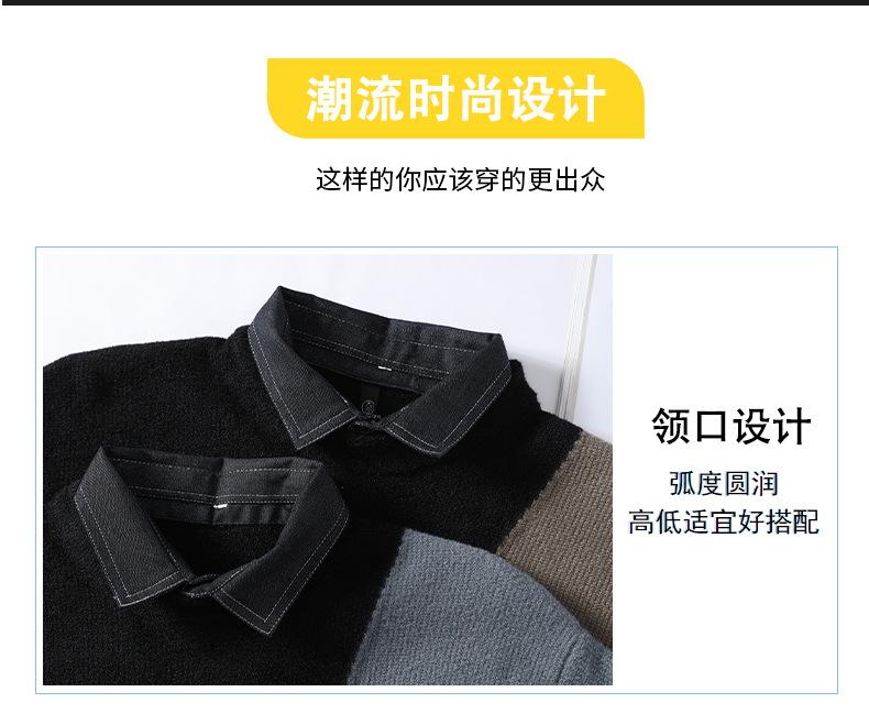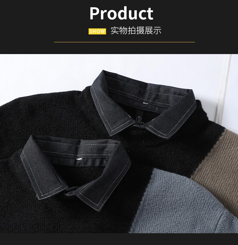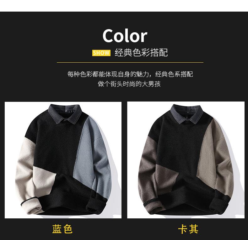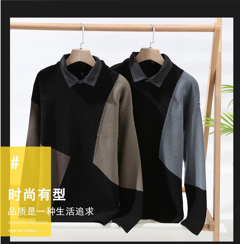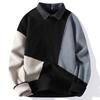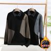 Suéter falso de dos piezas para hombre, de invierno, con forro polar, grueso, de moda, estilo coreano, ajustado, con cuello de camisa a juego de colores.