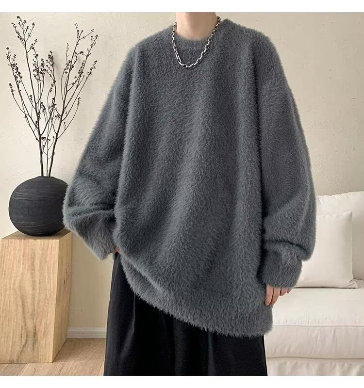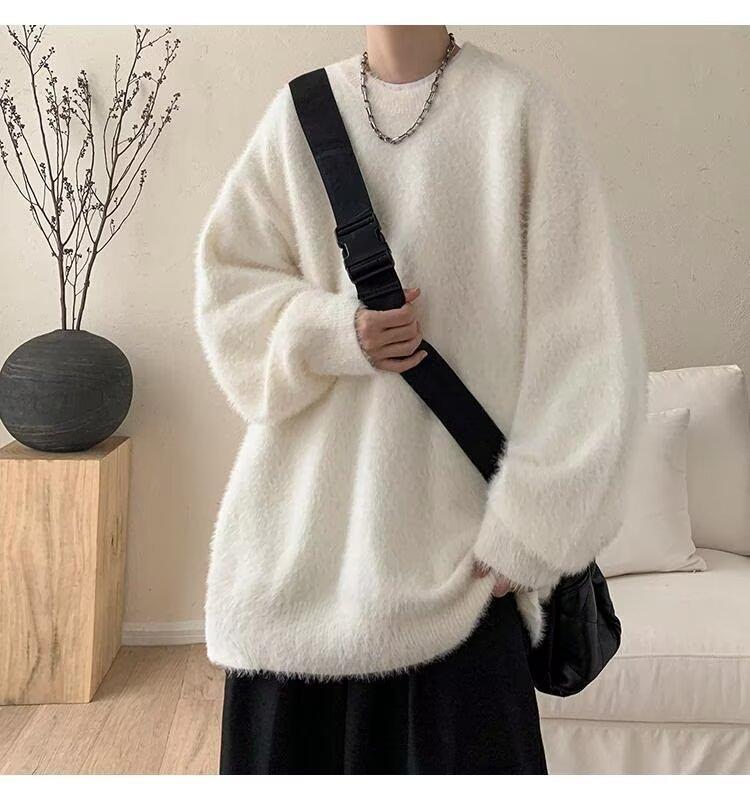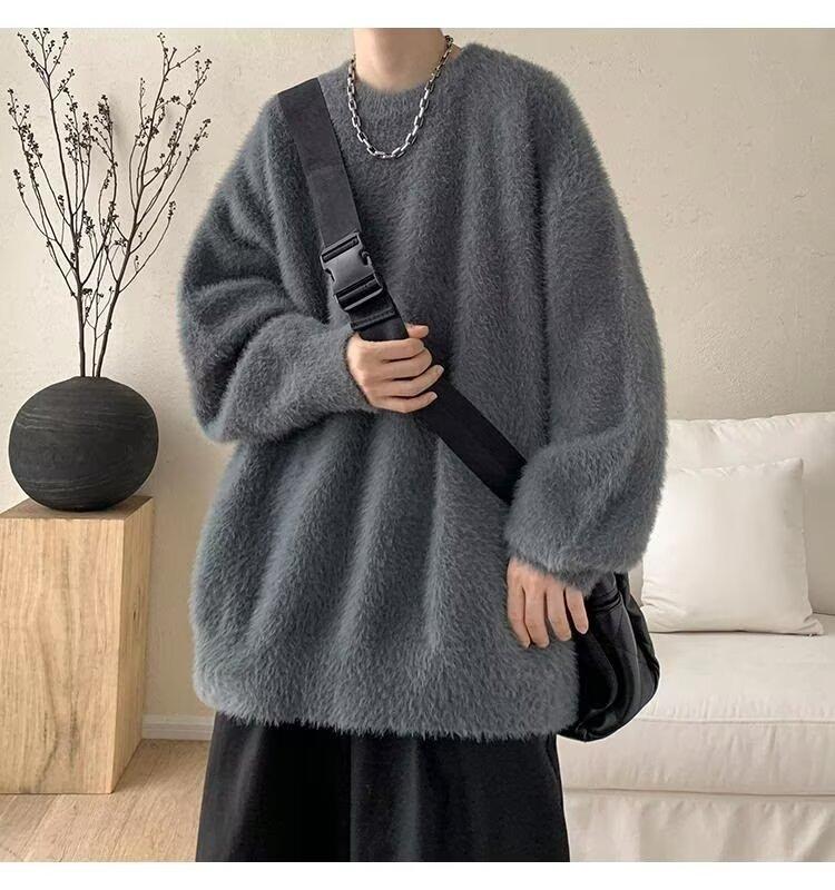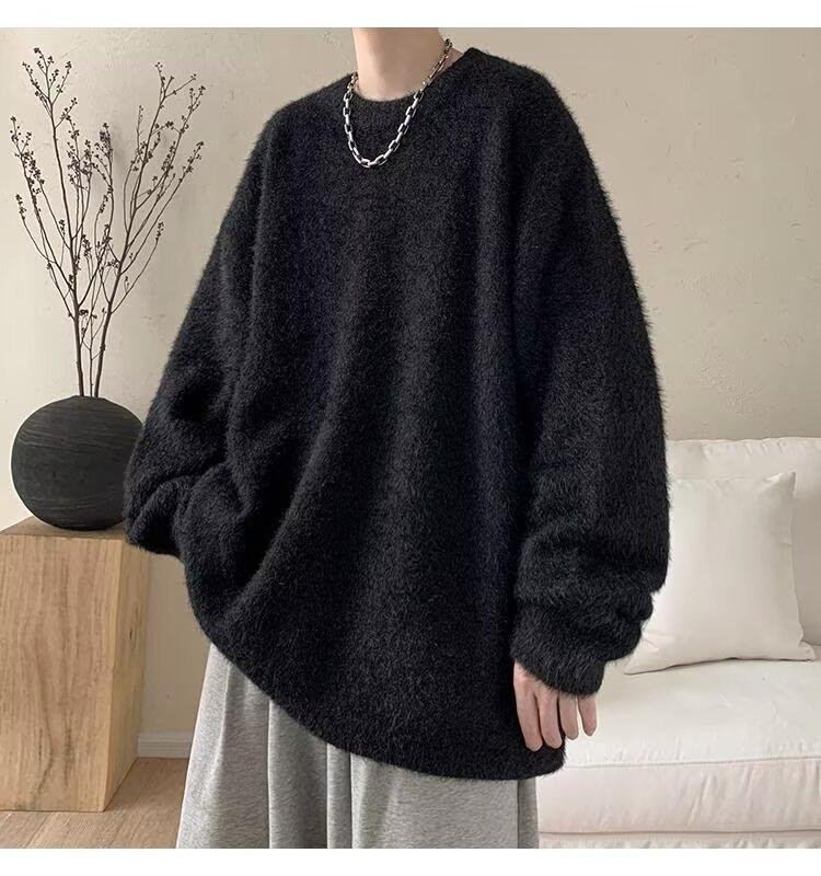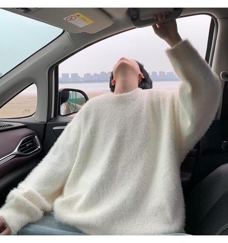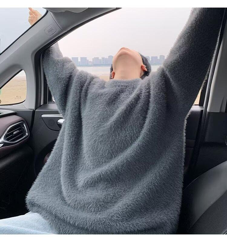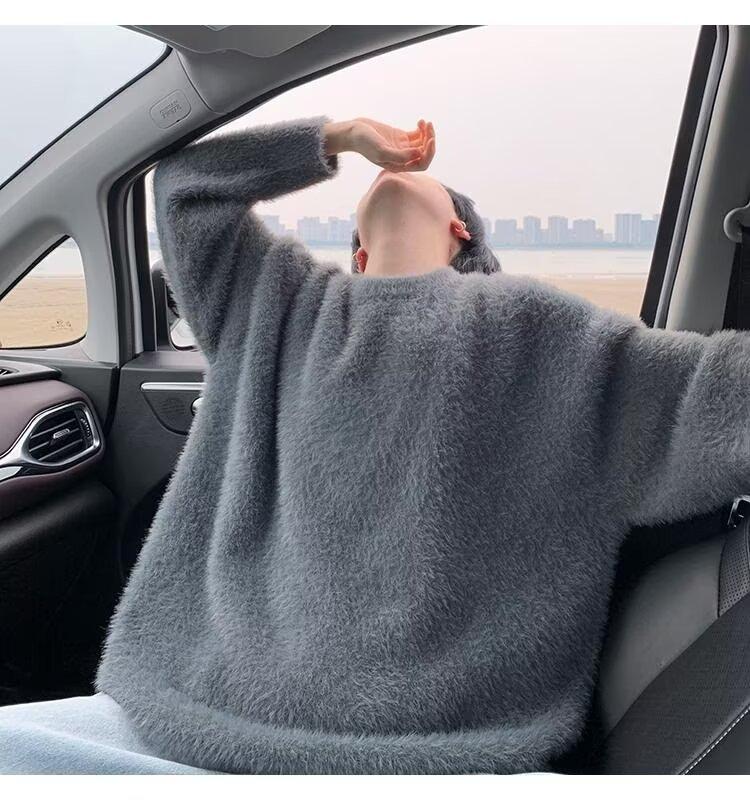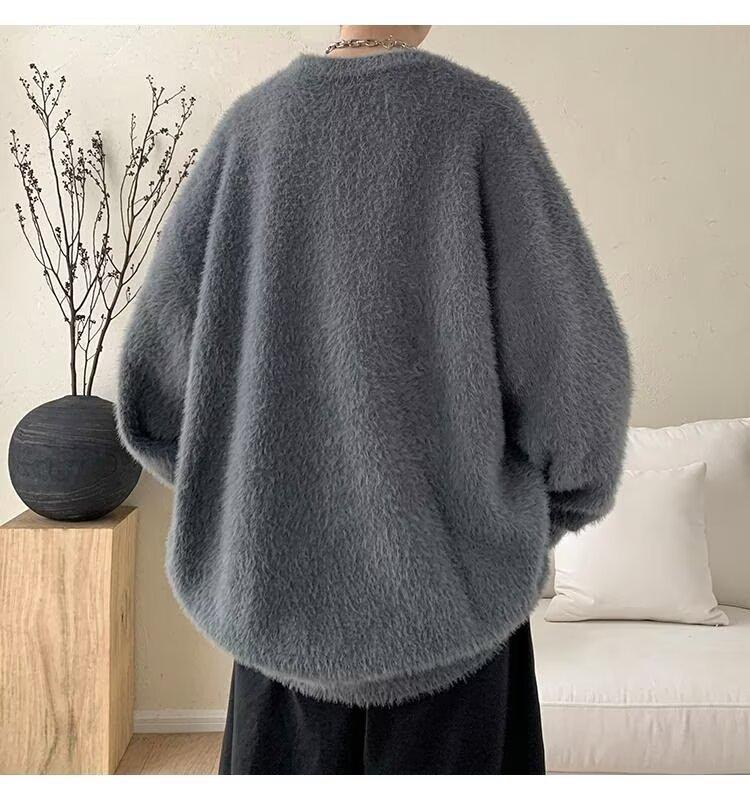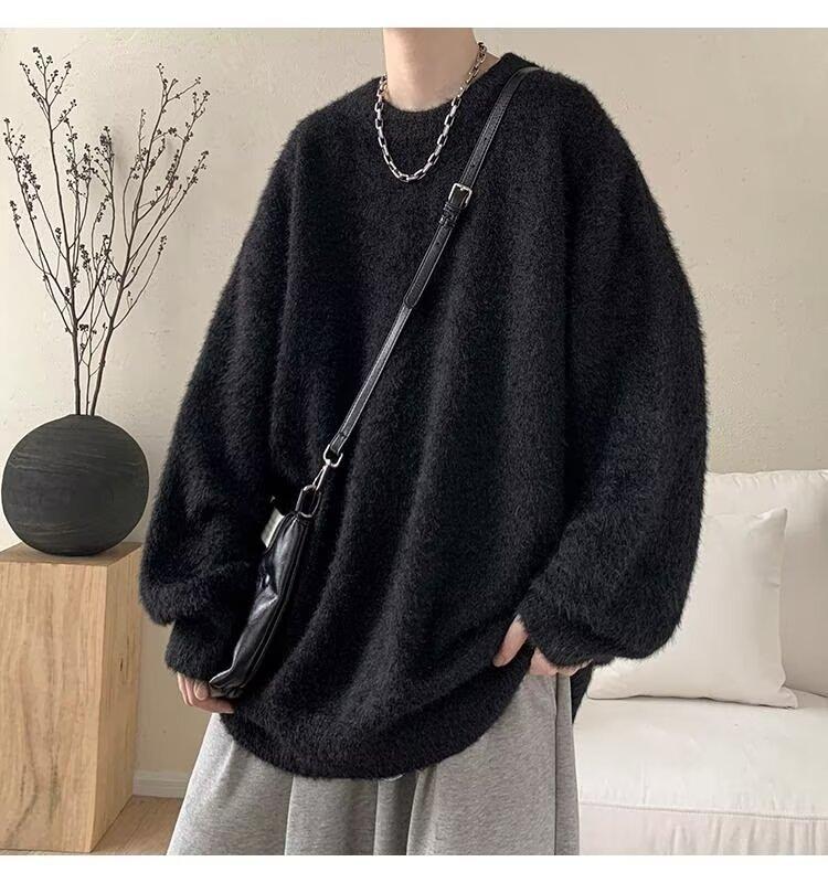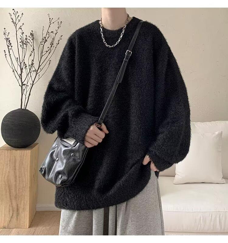 Suéter Suave Ceroso para Hombre Otoño e Invierno Sentido de Alta Gama Rufián Guapo Grueso Cuello Redondo Suéter Estilo Perezoso Chaqueta Americana Holgada