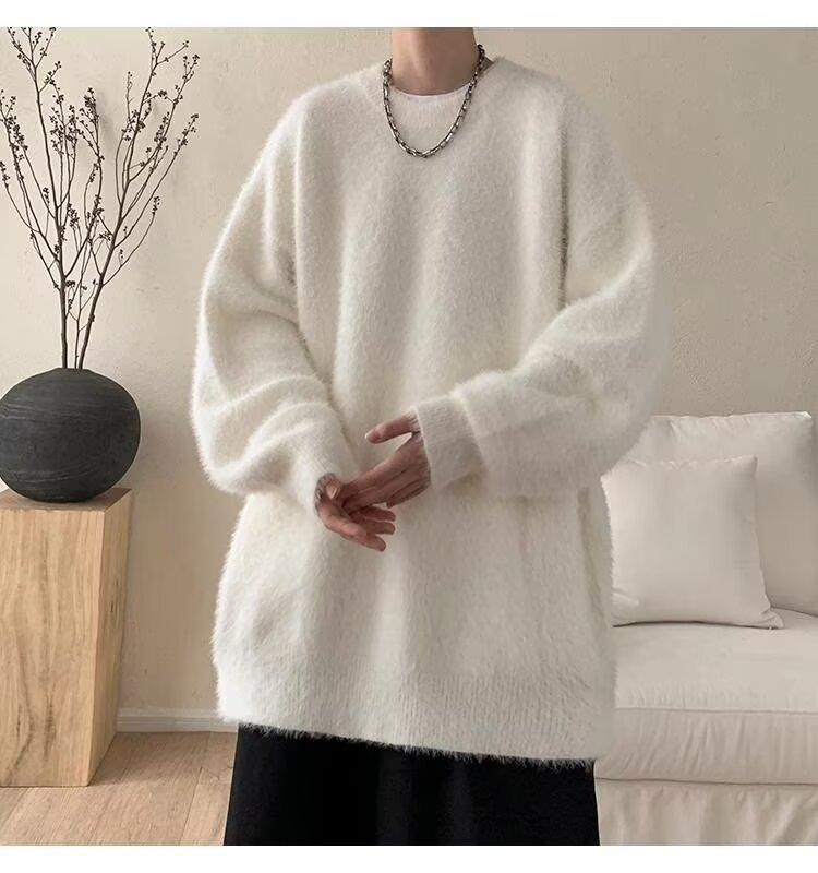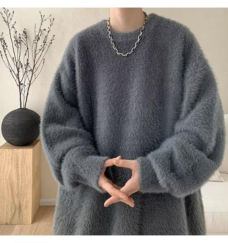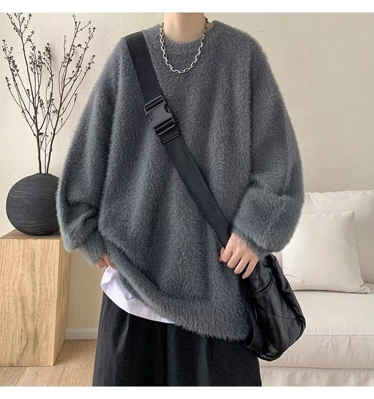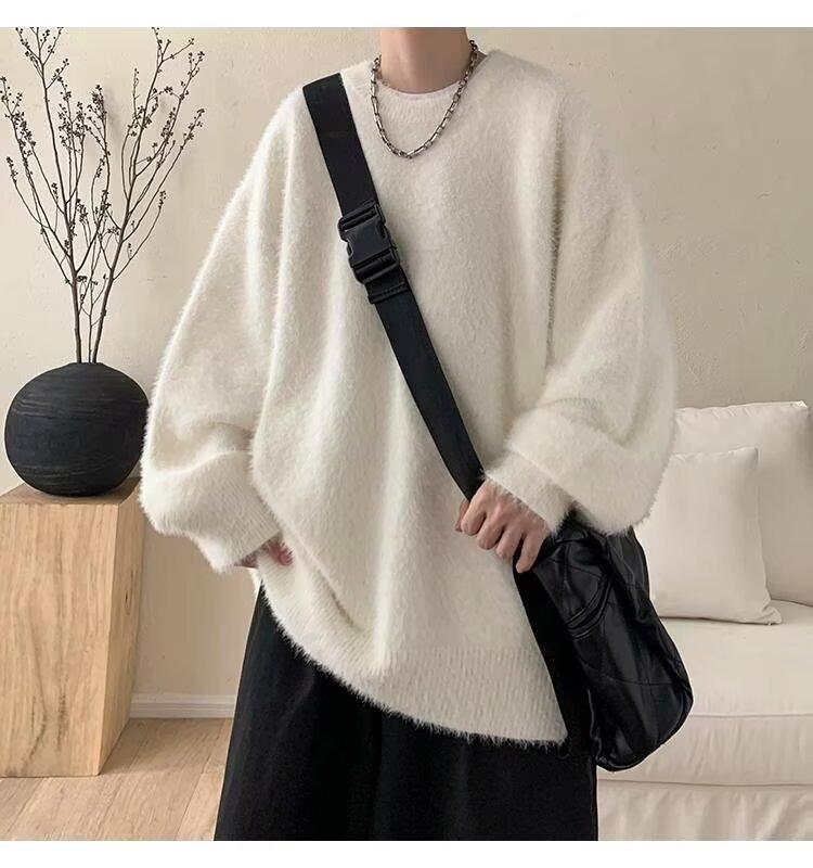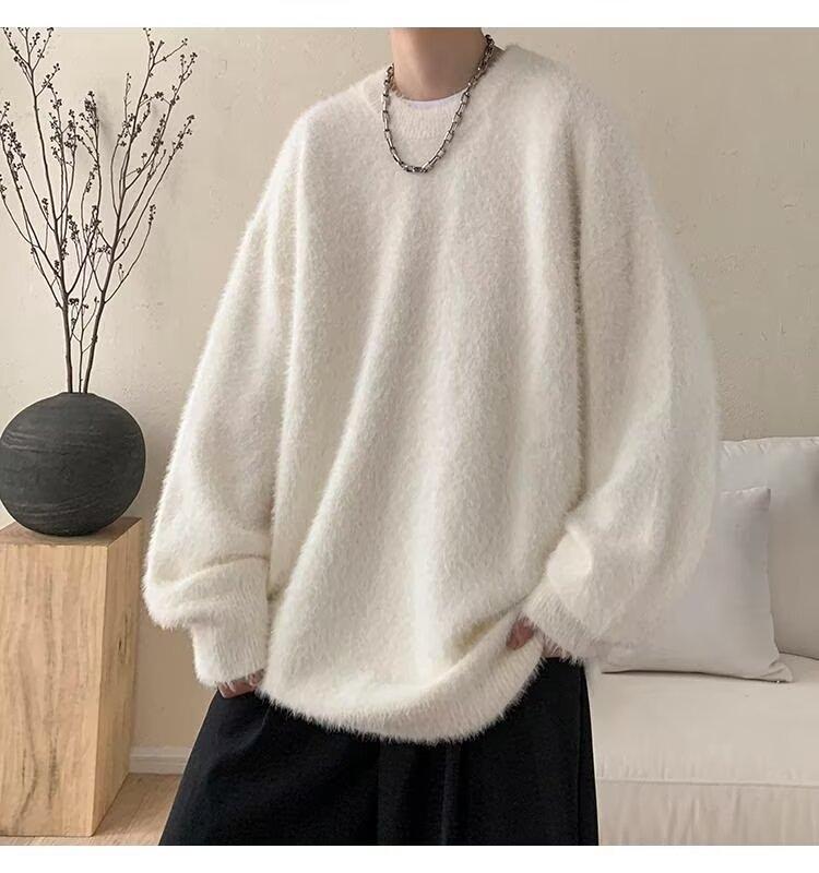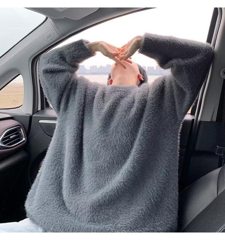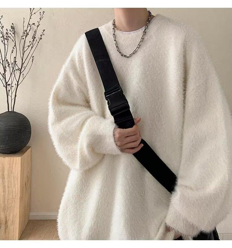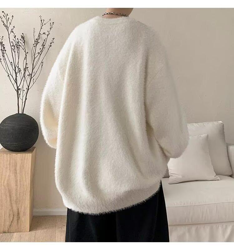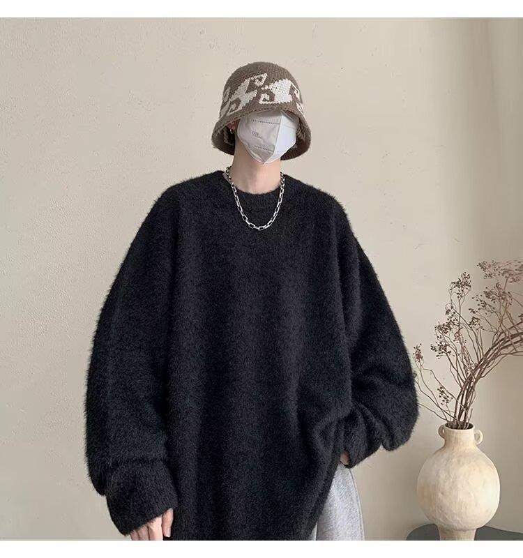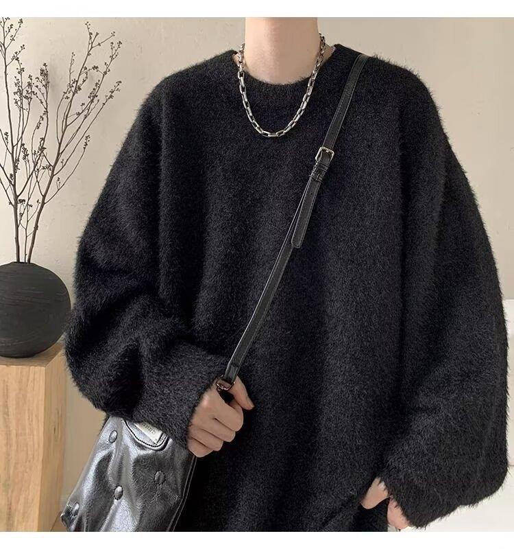 Suéter Suave Ceroso para Hombre Otoño e Invierno Sentido de Alta Gama Rufián Guapo Grueso Cuello Redondo Suéter Estilo Perezoso Chaqueta Americana Holgada