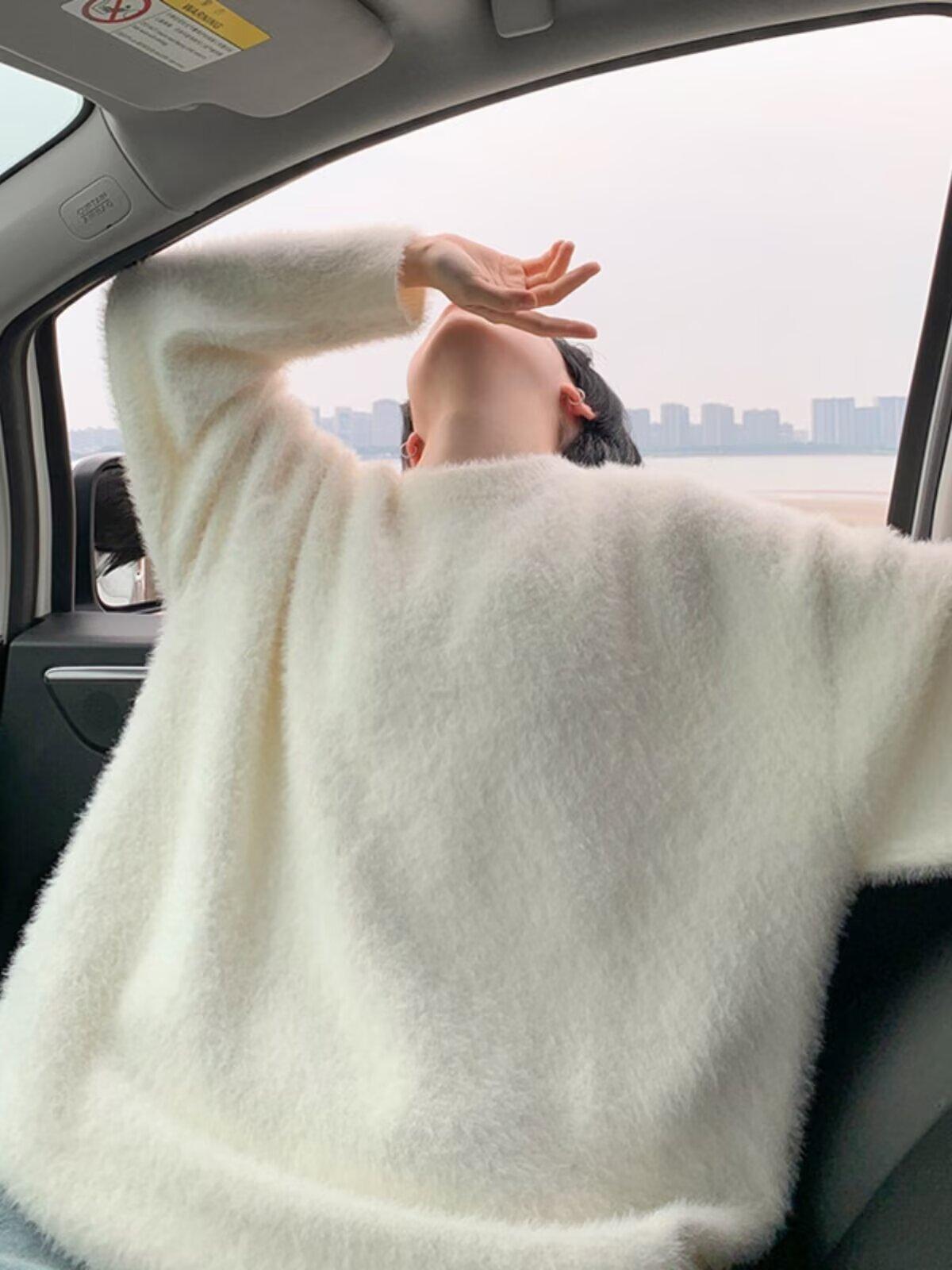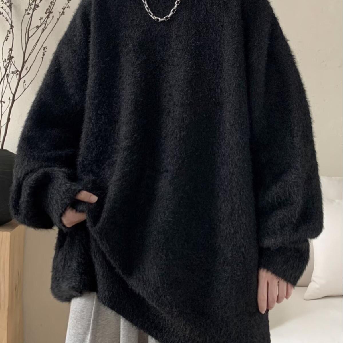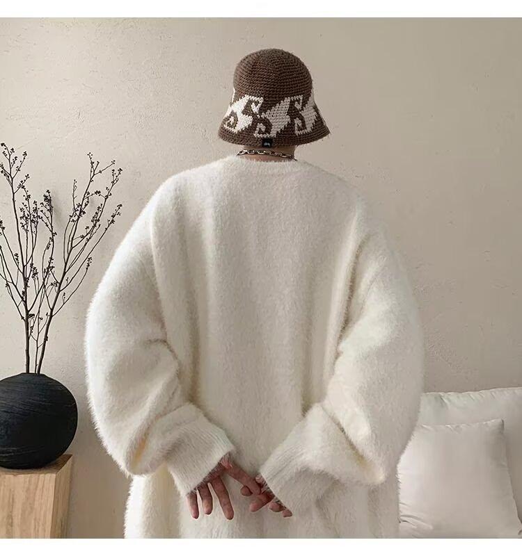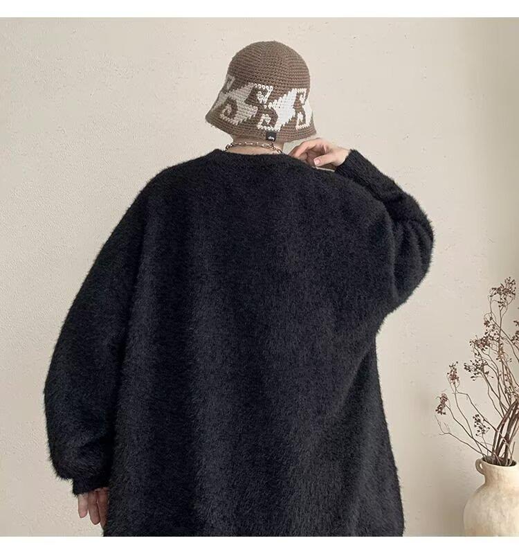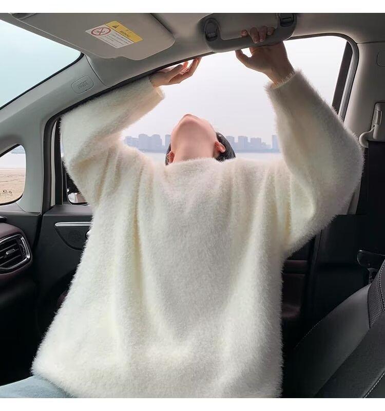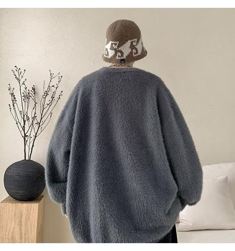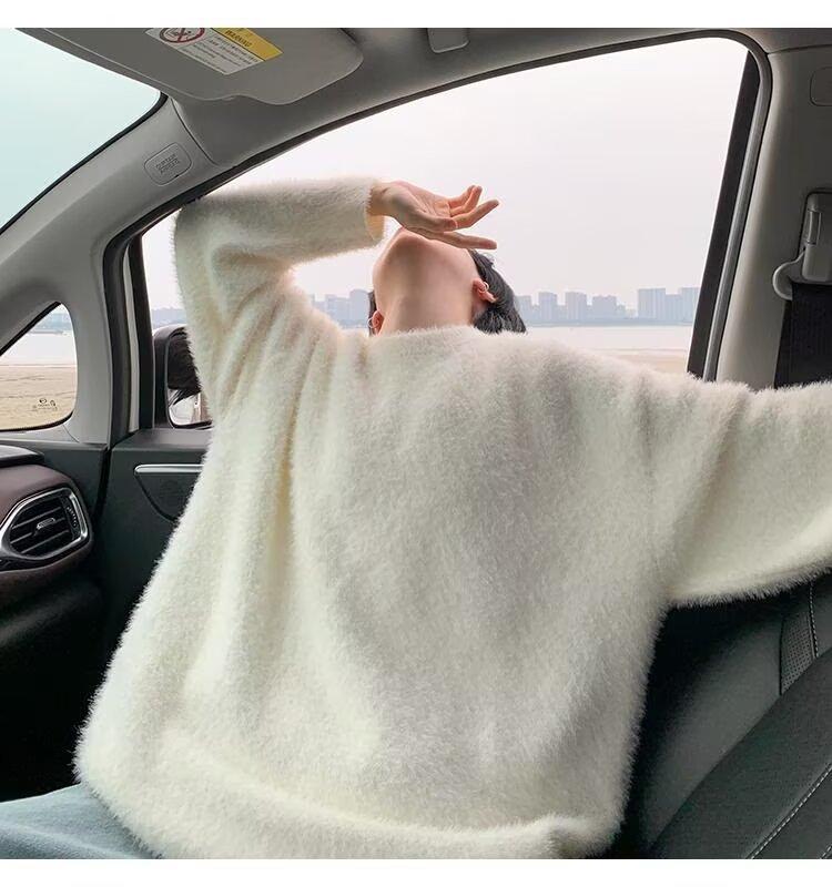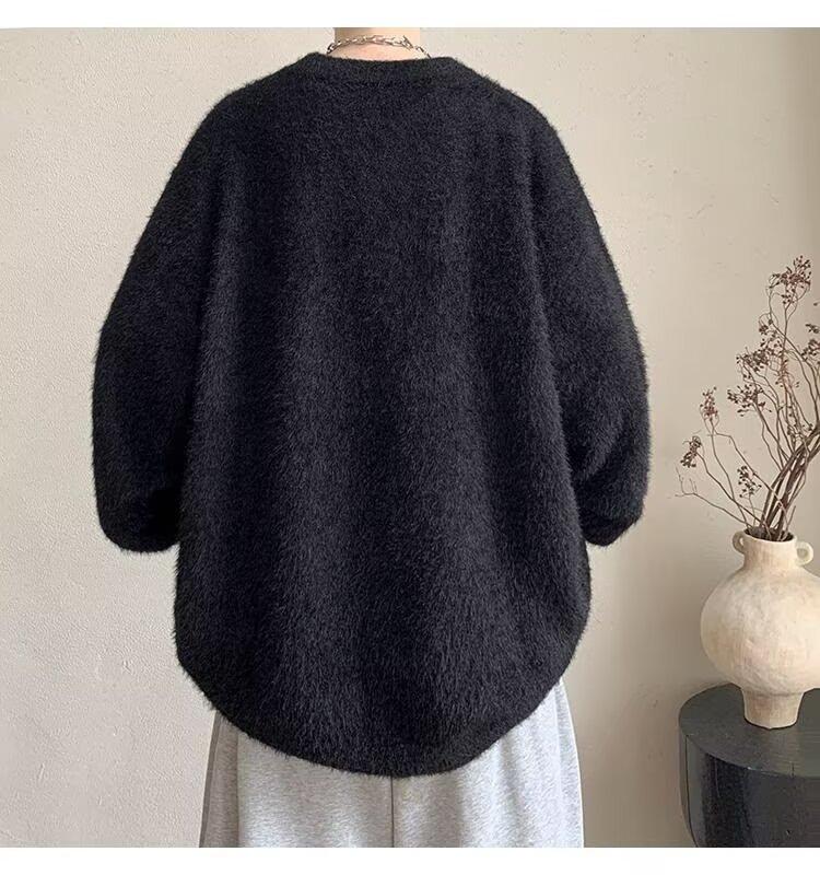 Suéter Suave Ceroso para Hombre Otoño e Invierno Sentido de Alta Gama Rufián Guapo Grueso Cuello Redondo Suéter Estilo Perezoso Chaqueta Americana Holgada