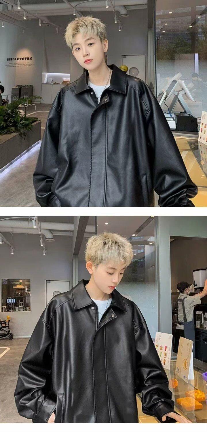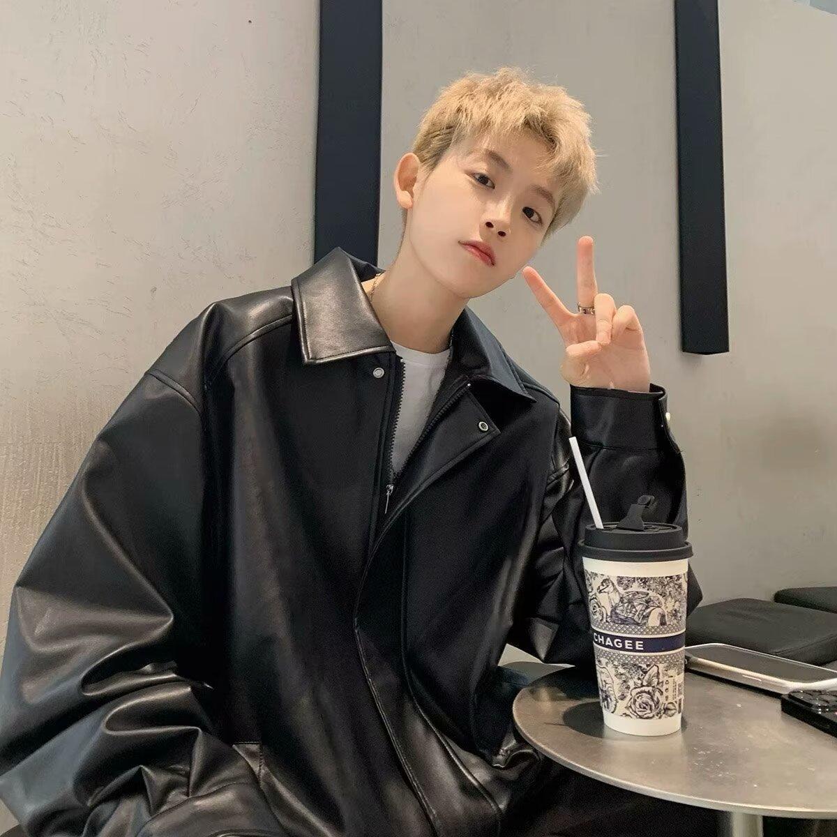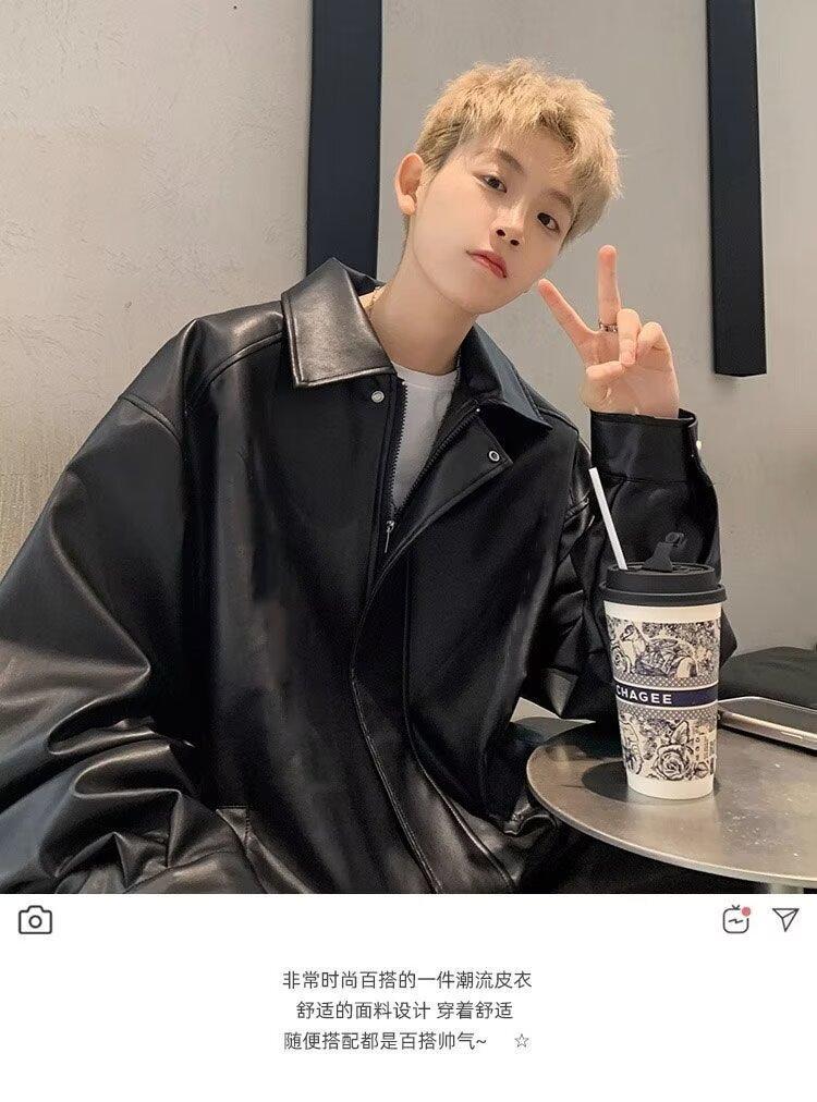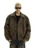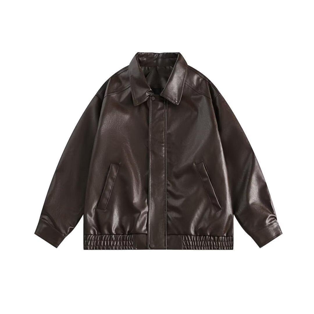 Chaqueta de cuero para hombre, otoño, marca de moda americana, chaqueta de cuero PU, chaqueta informal holgada con solapa superior