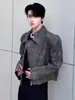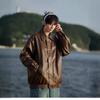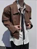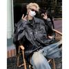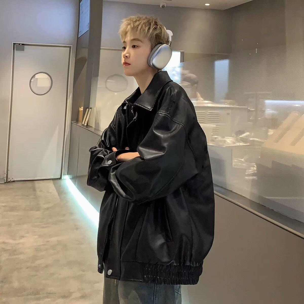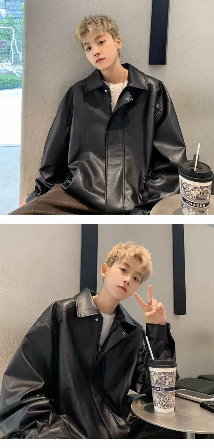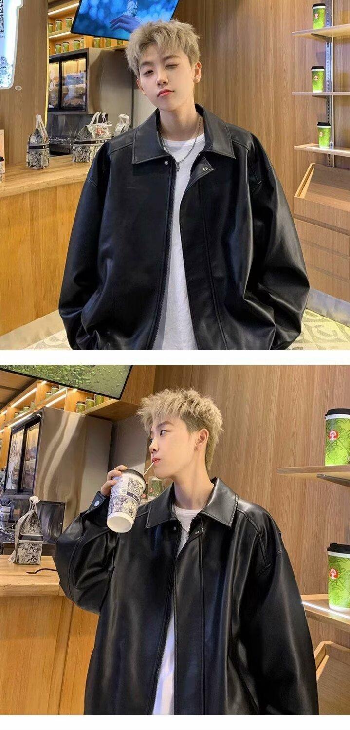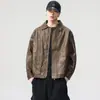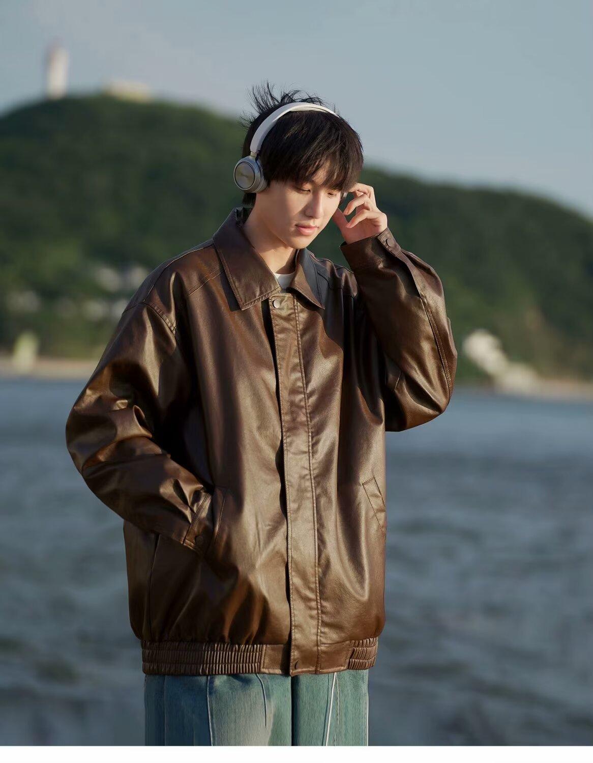 Chaqueta de cuero para hombre, otoño, marca de moda americana, chaqueta de cuero PU, chaqueta informal holgada con solapa superior