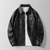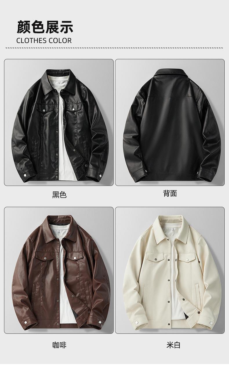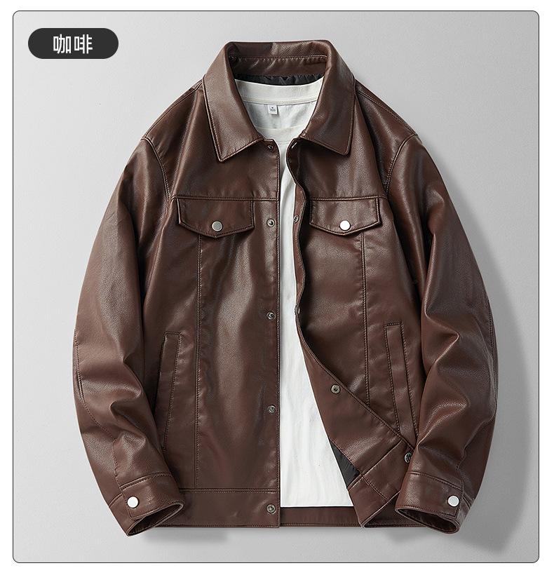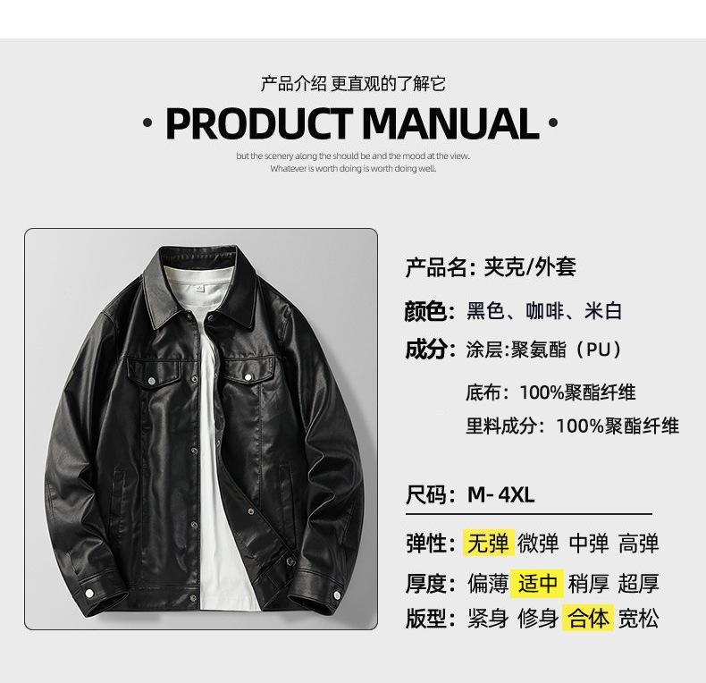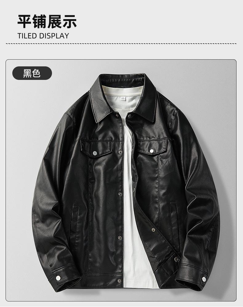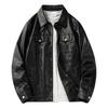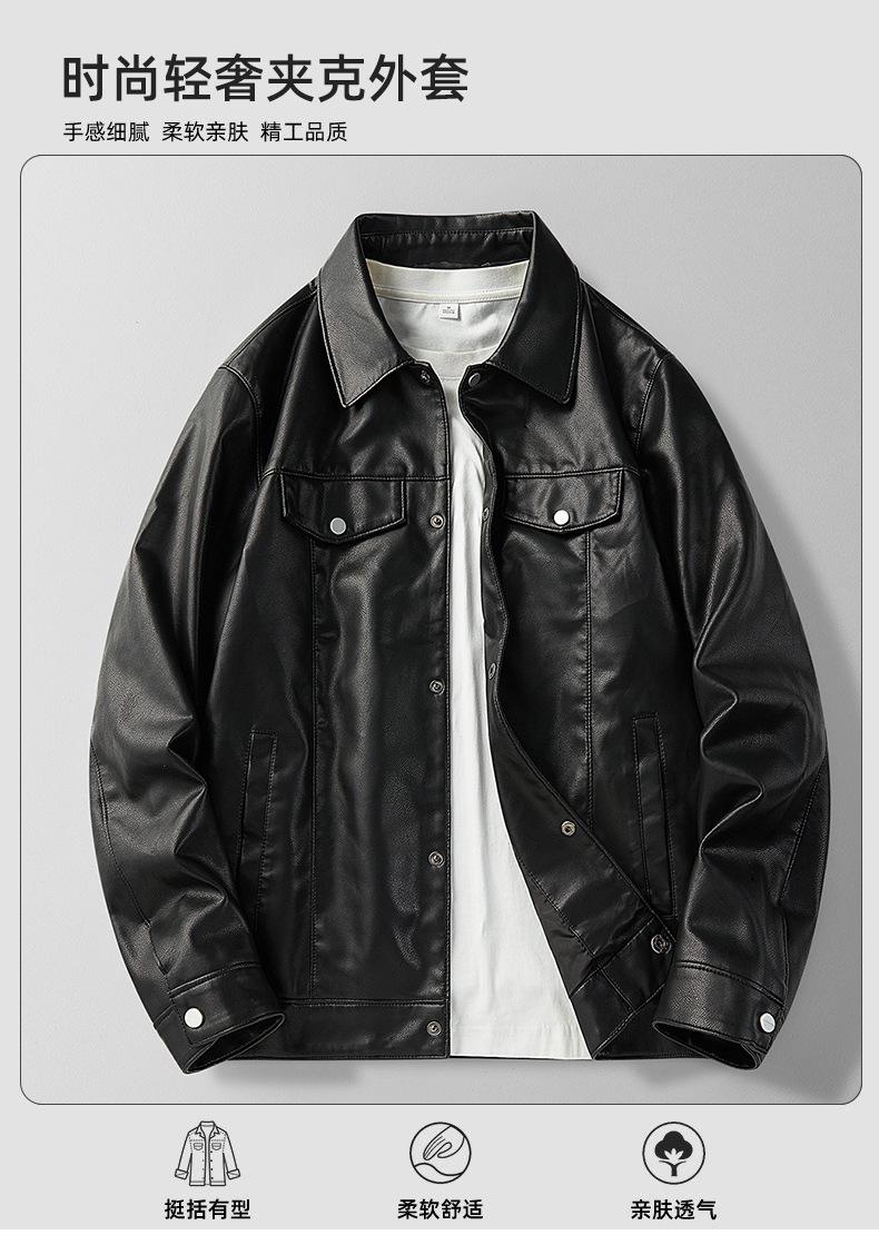 Compra Chaqueta de Cuero Negra Clásica Casual con Solapa para Hombre, Moda Gentry Británica Versátil, Chaqueta de Cuero Biker High Street al por mayor en Joom.pro