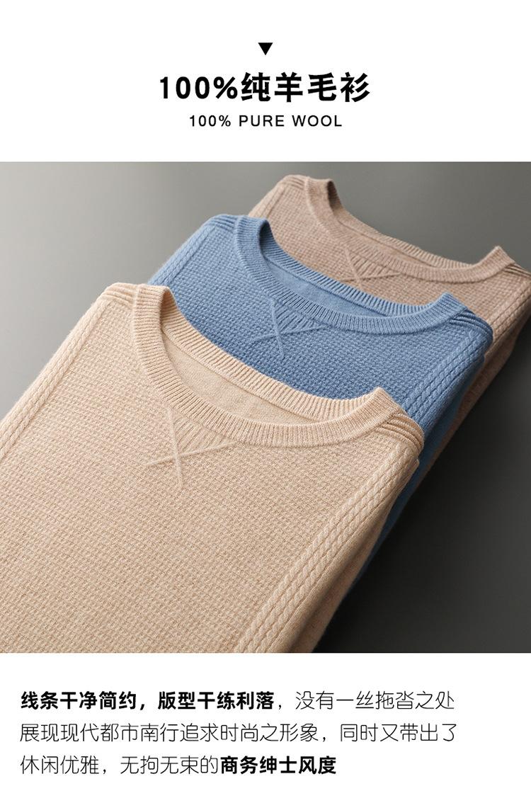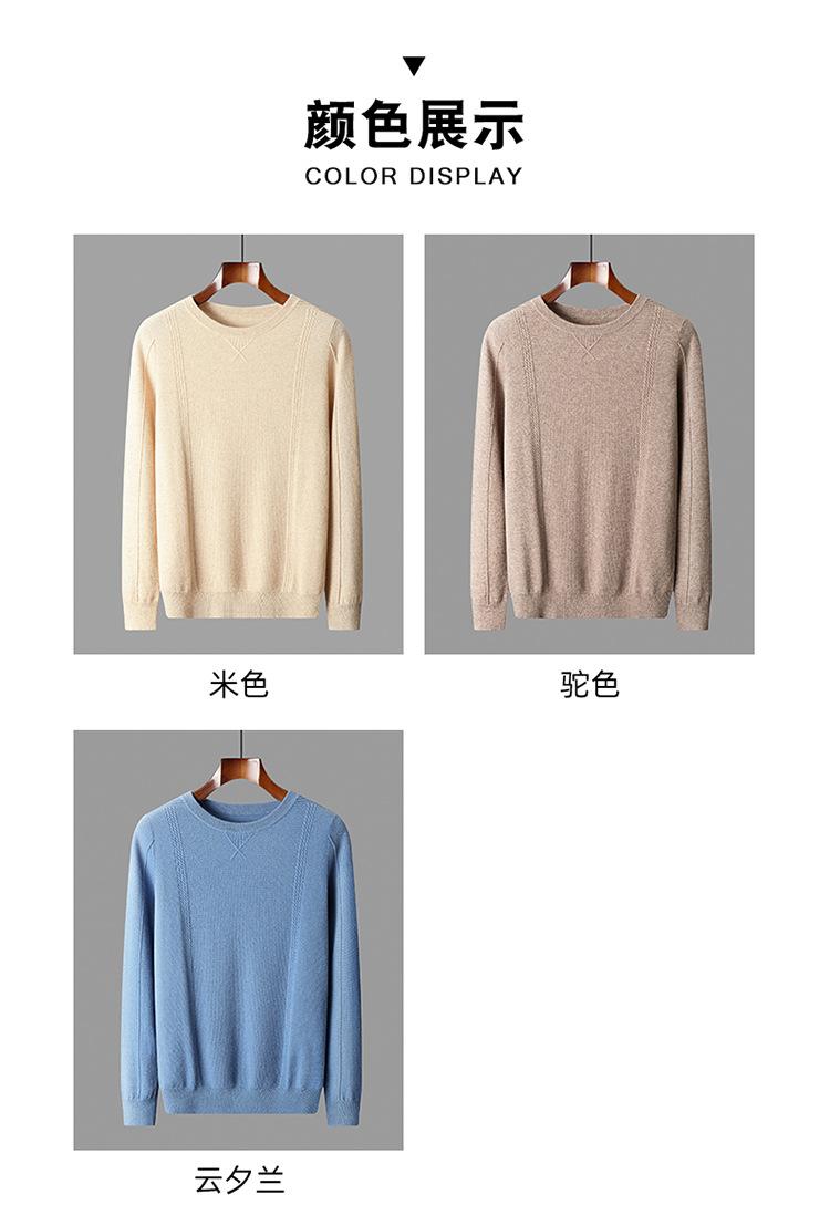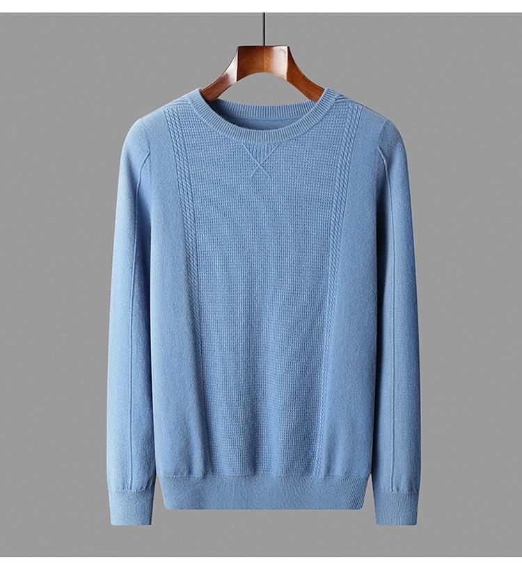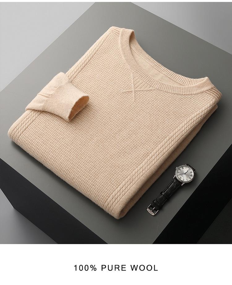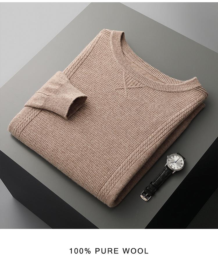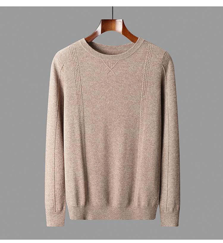 Suéter de lana 100% pura para hombre, cuello redondo, color sólido, jacquard, grueso, holgado, informal, para otoño e invierno.