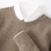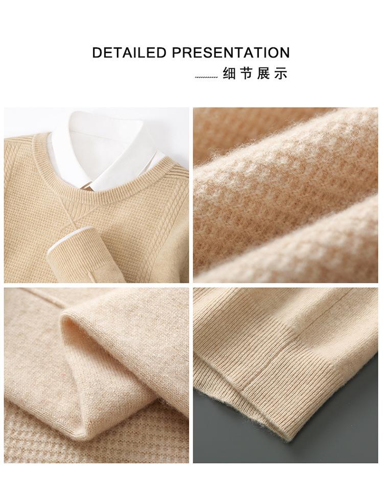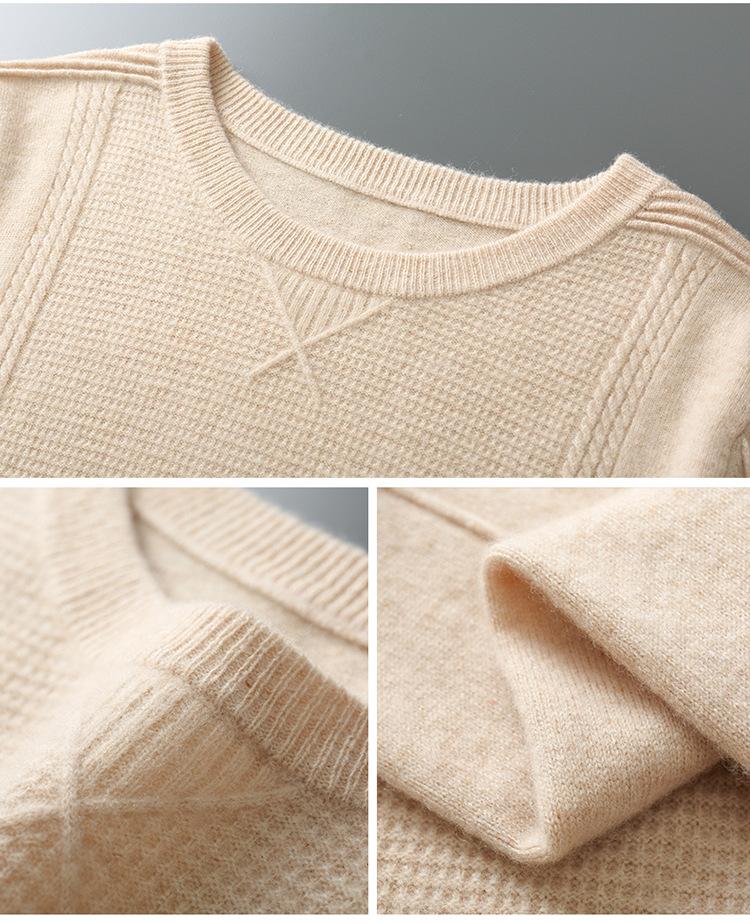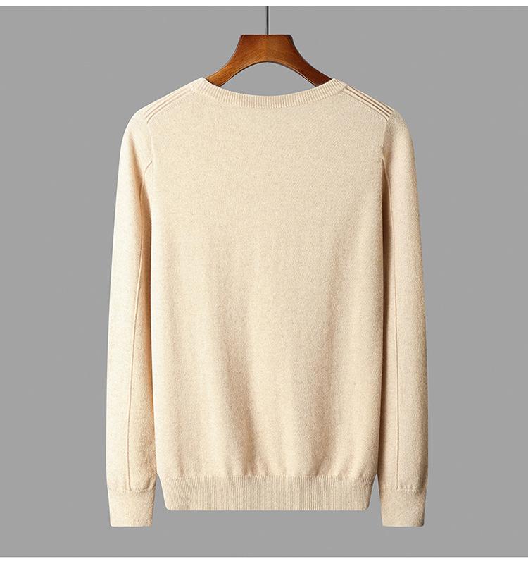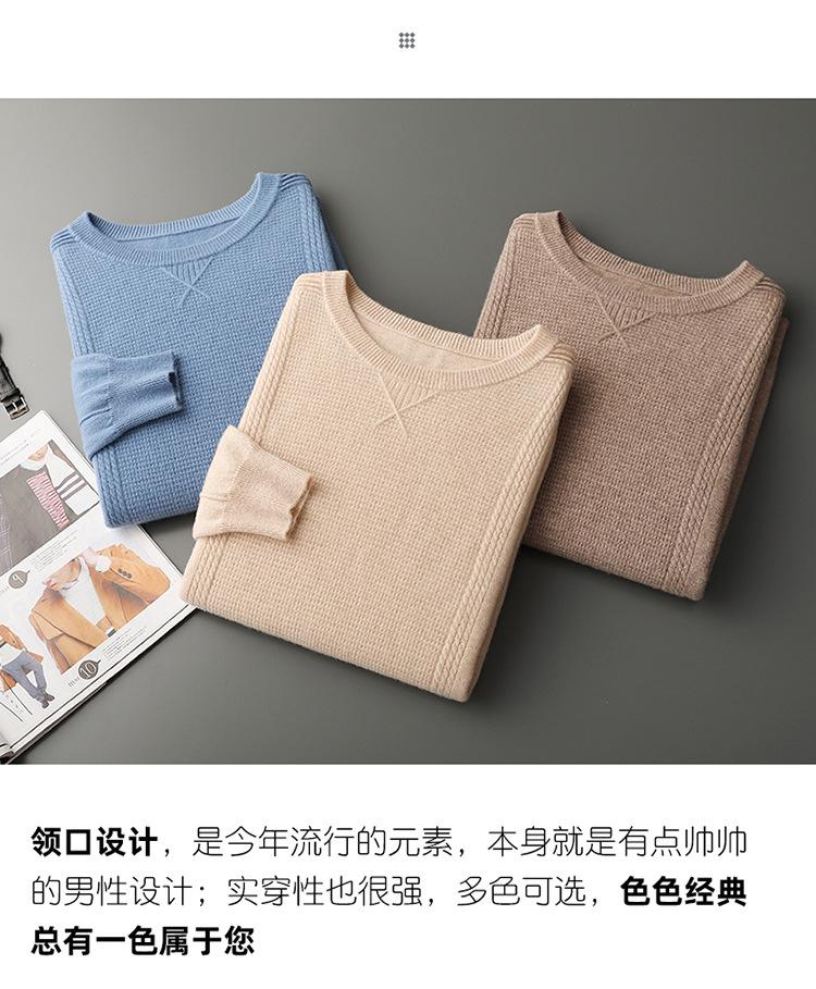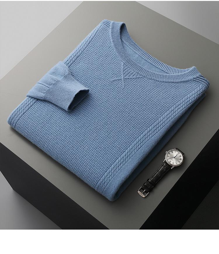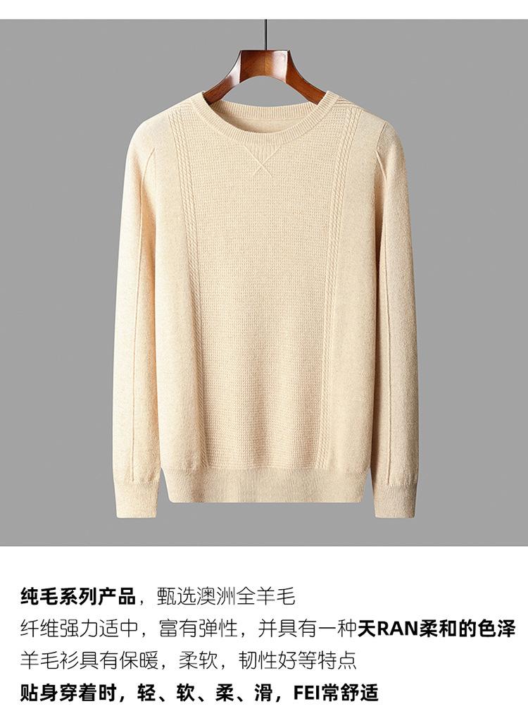 Suéter de lana 100% pura para hombre, cuello redondo, color sólido, jacquard, grueso, holgado, informal, para otoño e invierno.