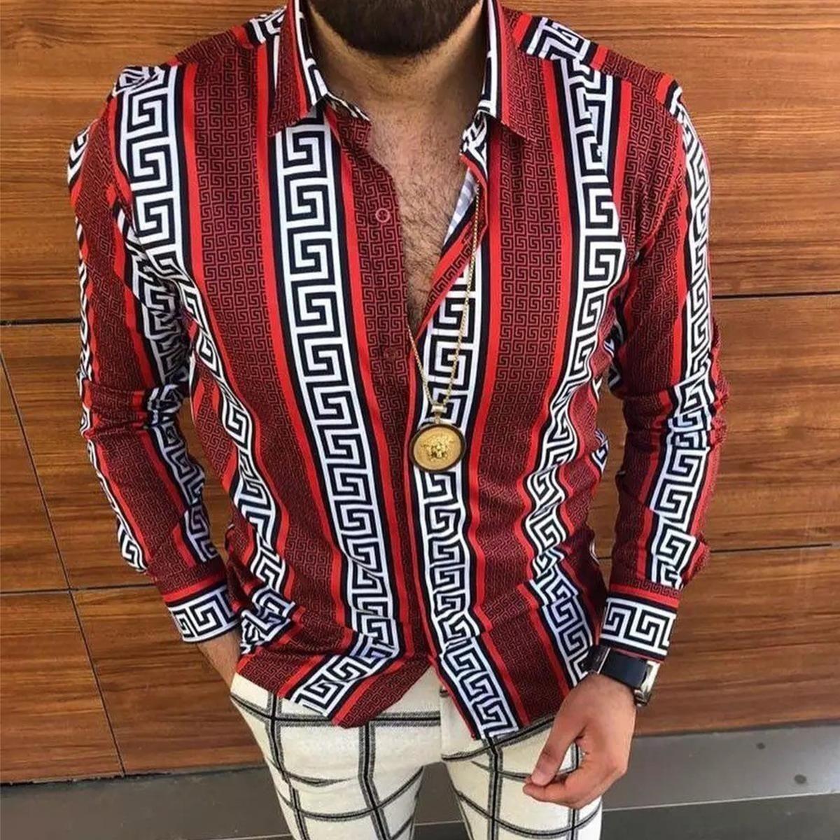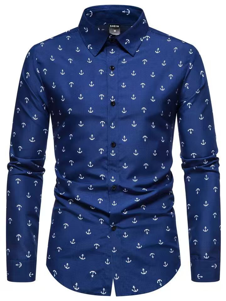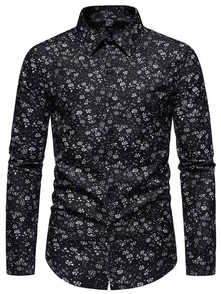 Camisa Estampada para Hombre Europea y Americana Transfronteriza 2024 Camisa Casual de Moda Floral de Manga Larga para Primavera y Otoño para Hombre