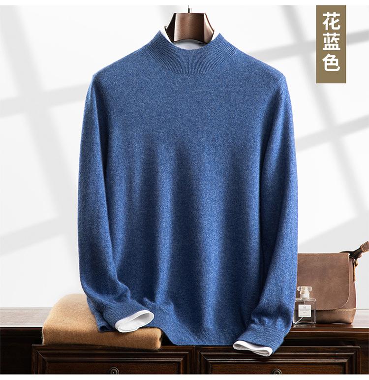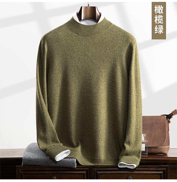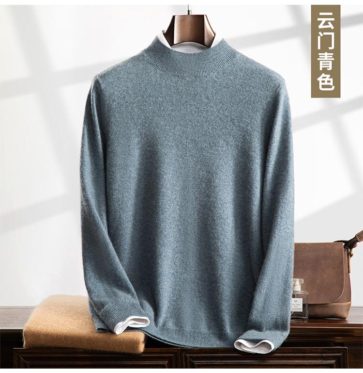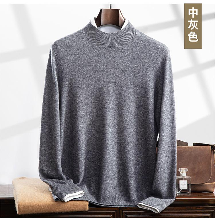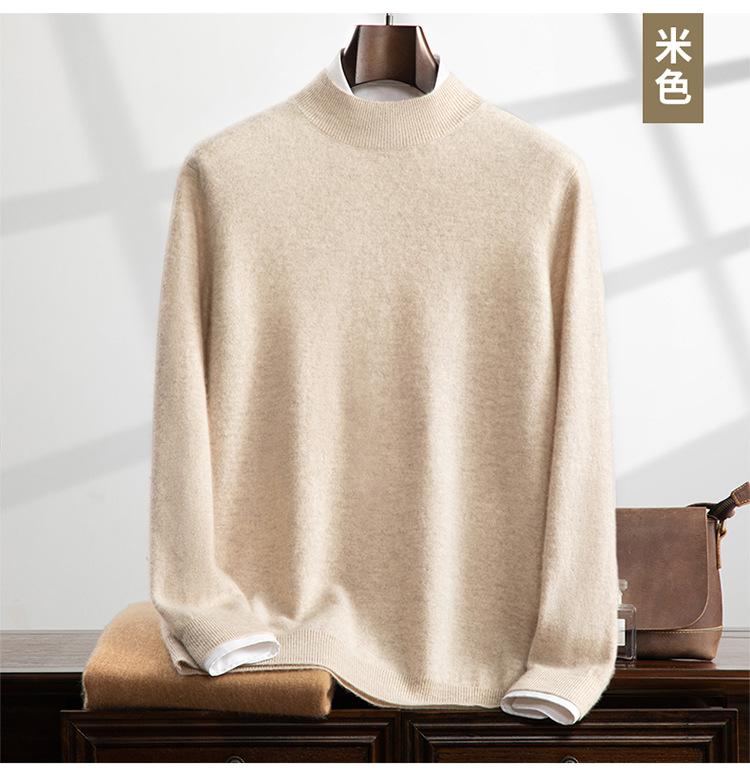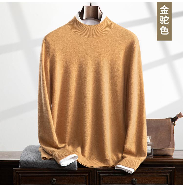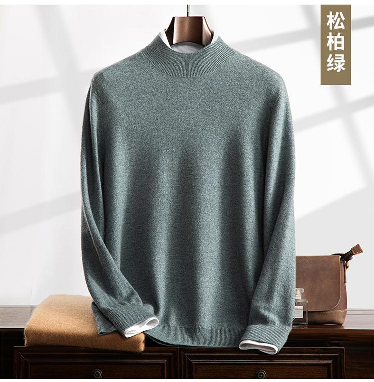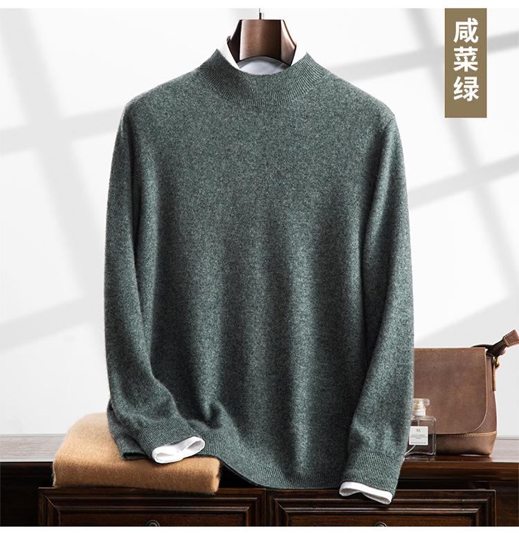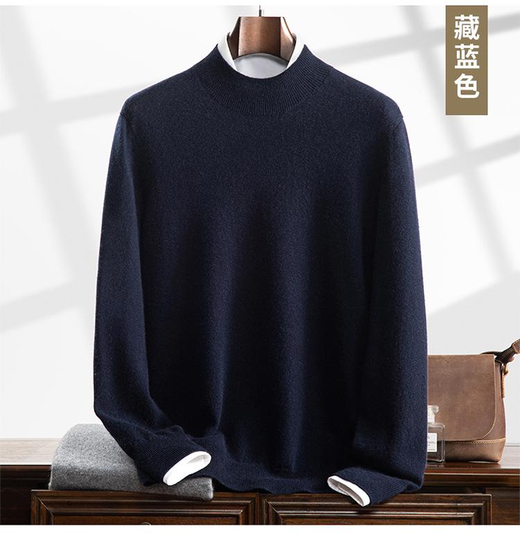 Suéter de cachemira de cuello semi-alto para otoño e invierno, jersey holgado para hombre, jersey informal de negocios de color sólido, jersey básico de manga larga que combina con todo.