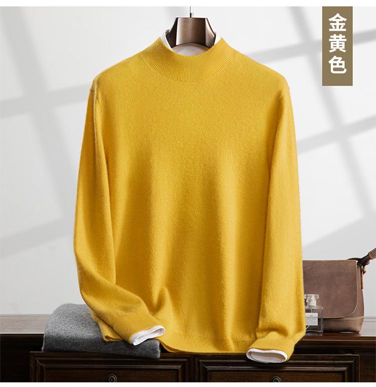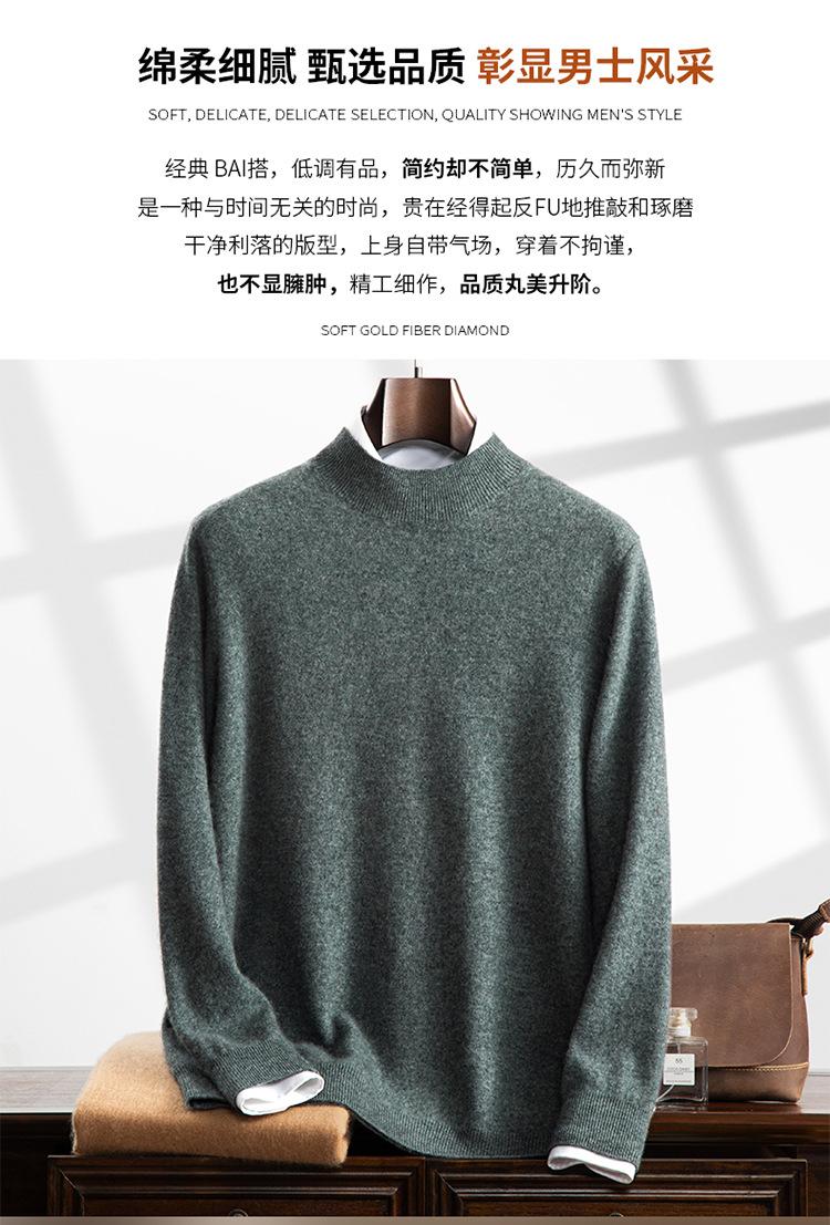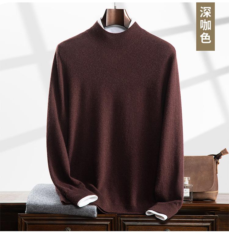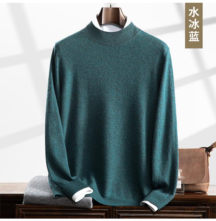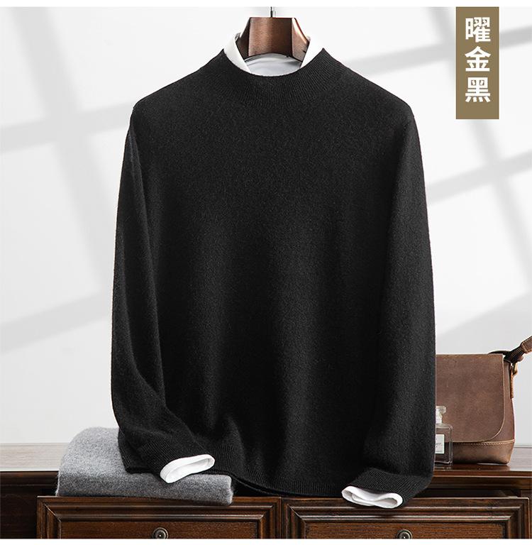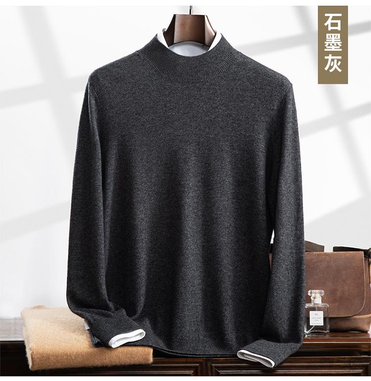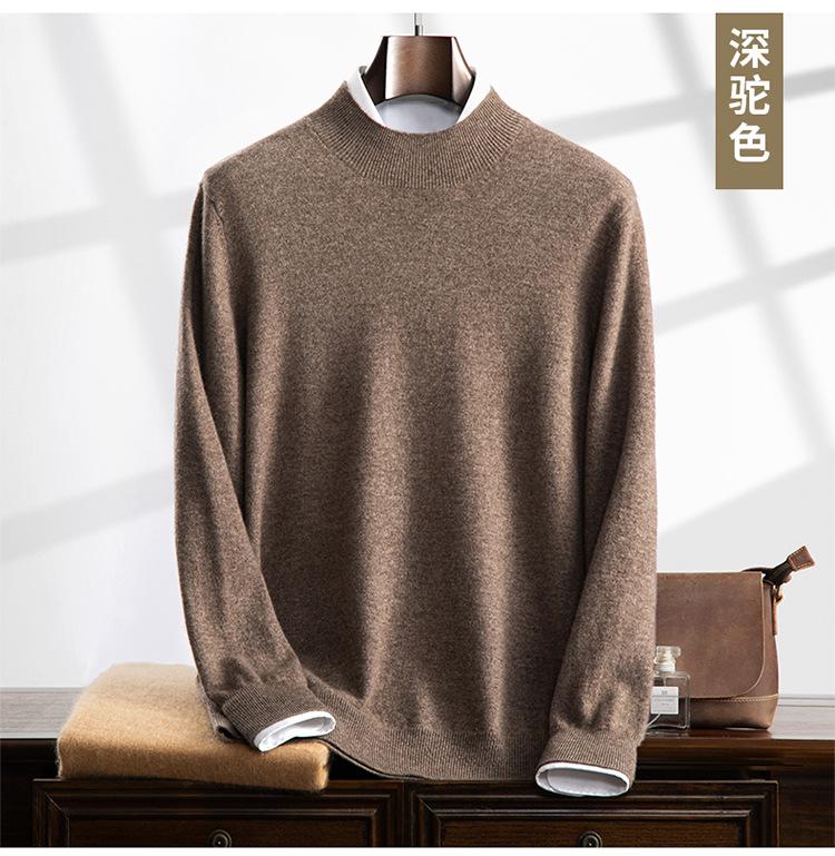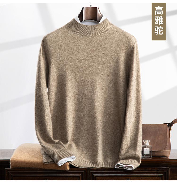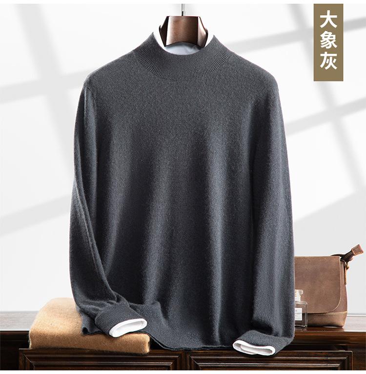 Suéter de cachemira de cuello semi-alto para otoño e invierno, jersey holgado para hombre, jersey informal de negocios de color sólido, jersey básico de manga larga que combina con todo.