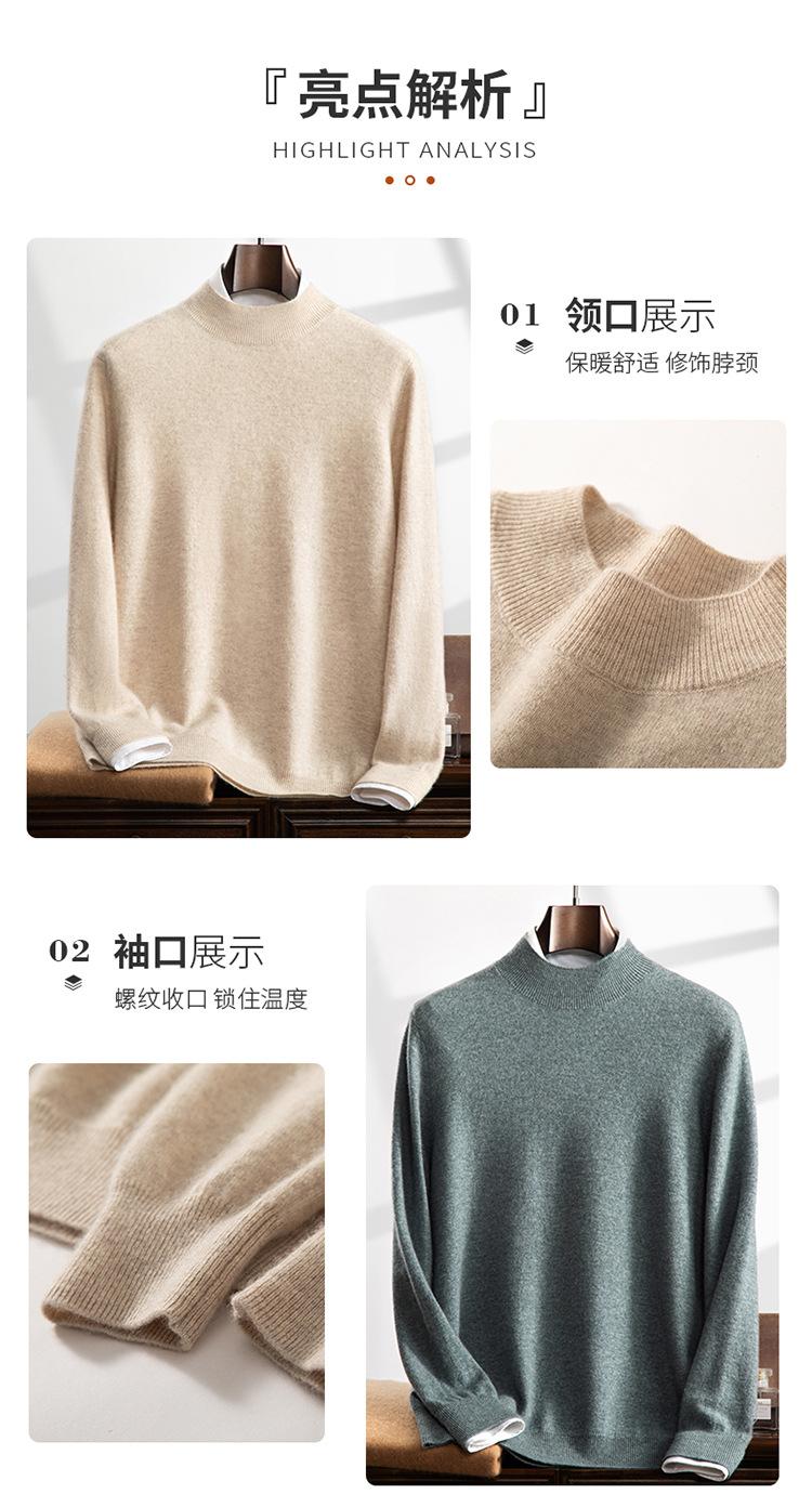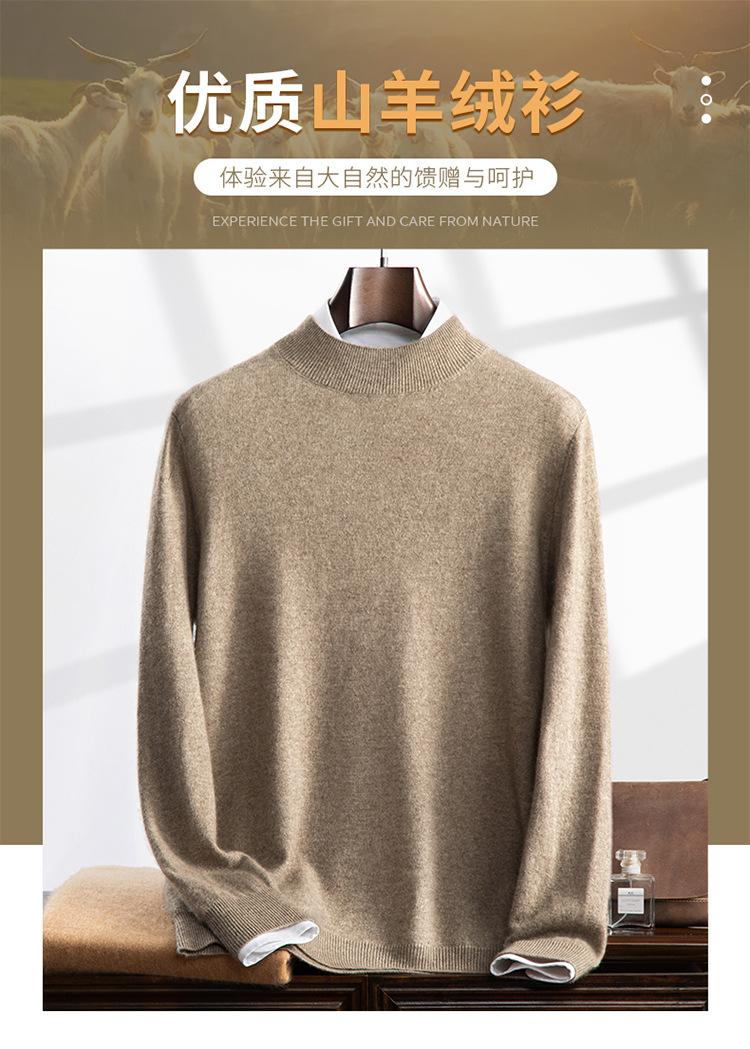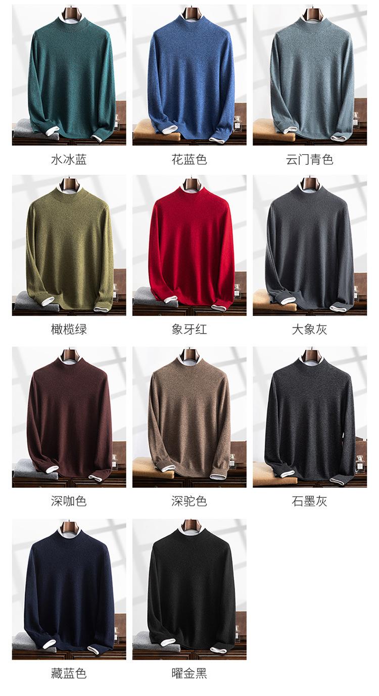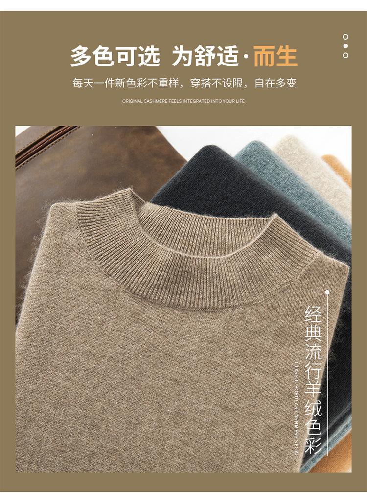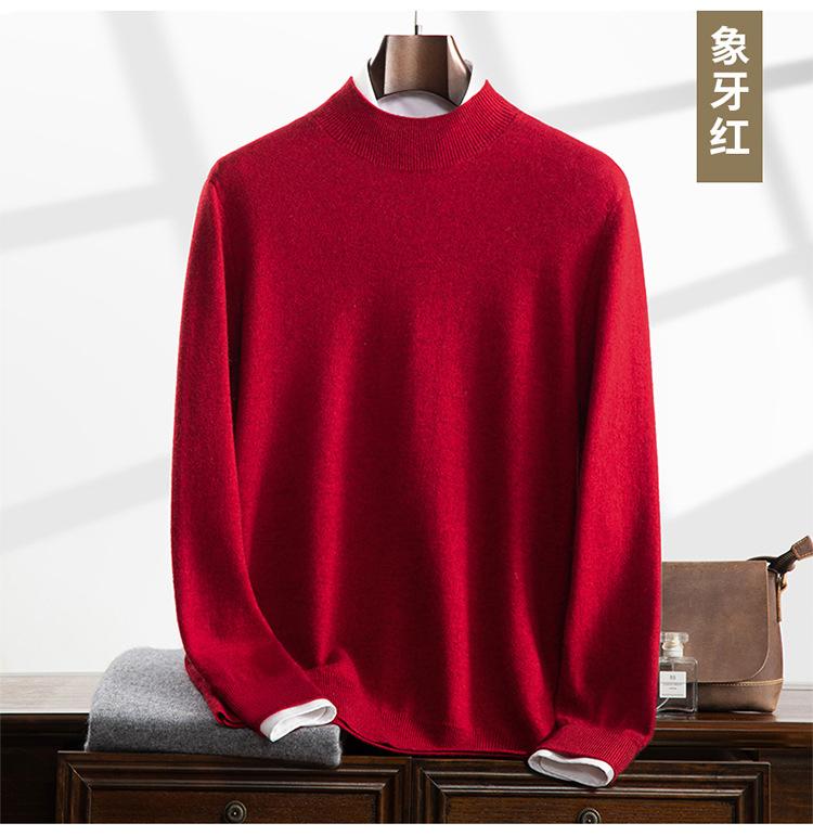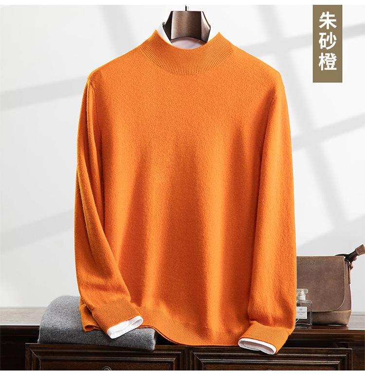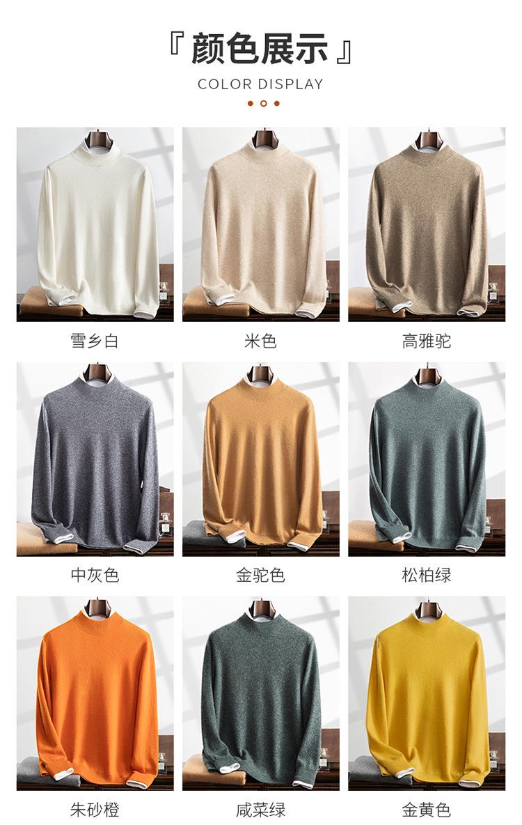 Suéter de cachemira de cuello semi-alto para otoño e invierno, jersey holgado para hombre, jersey informal de negocios de color sólido, jersey básico de manga larga que combina con todo.