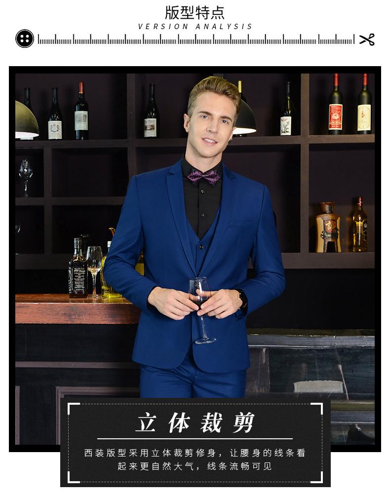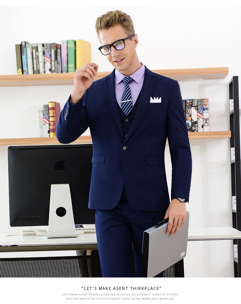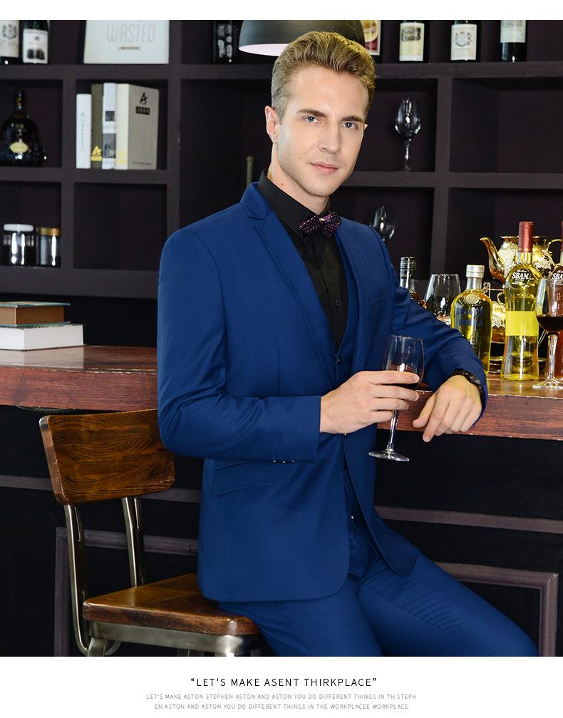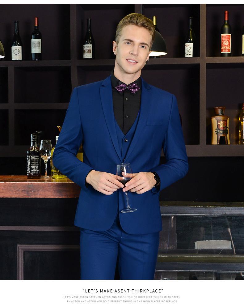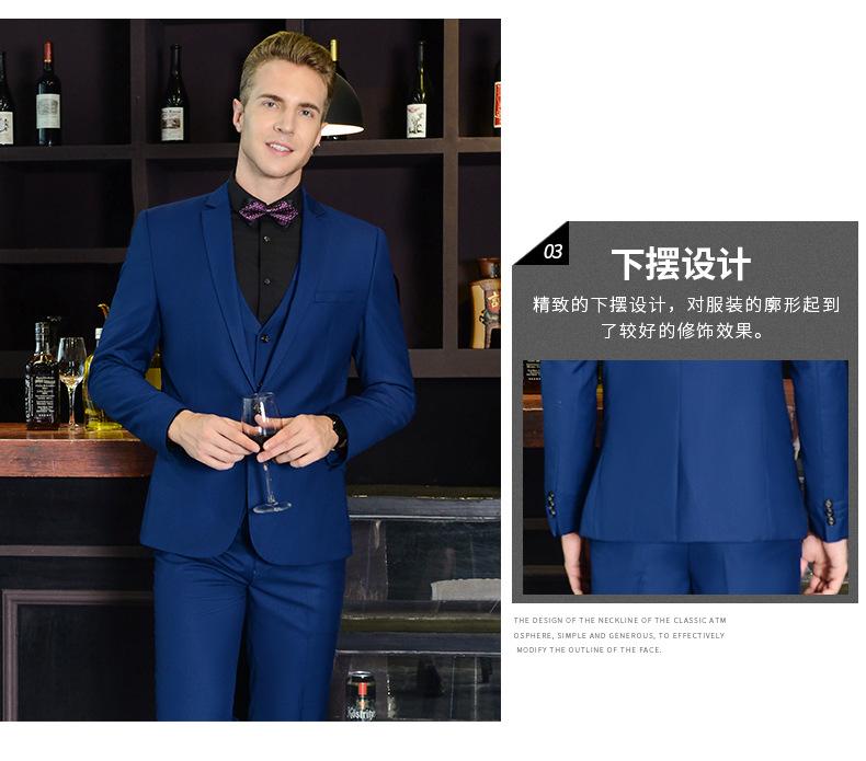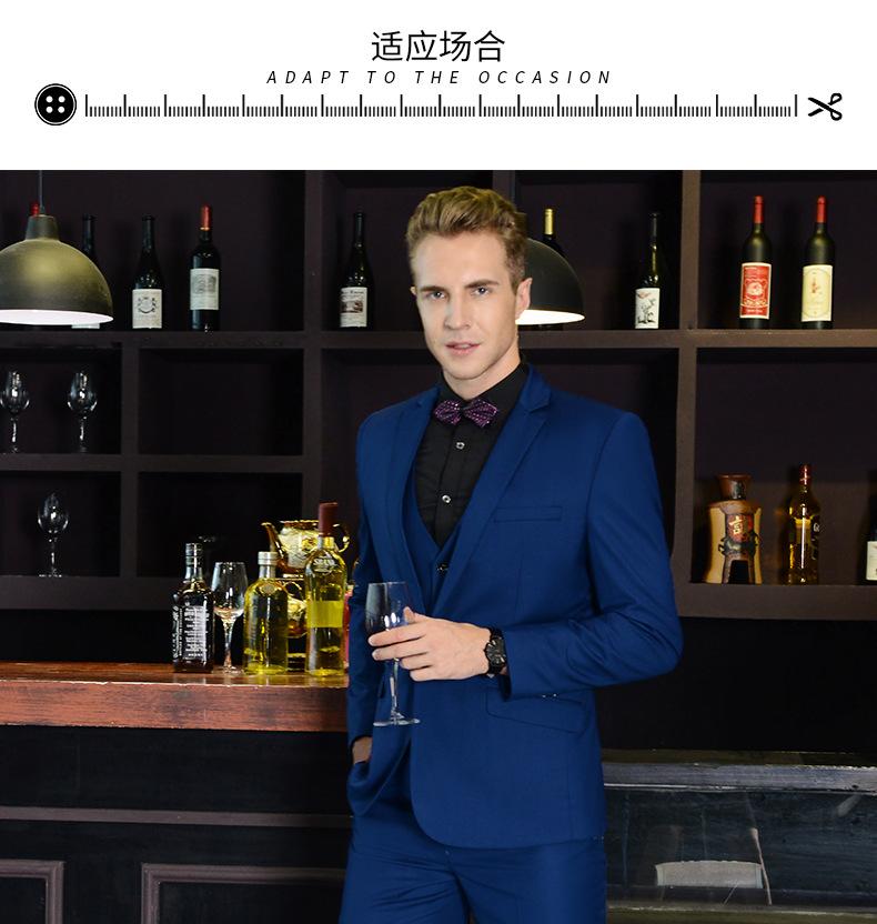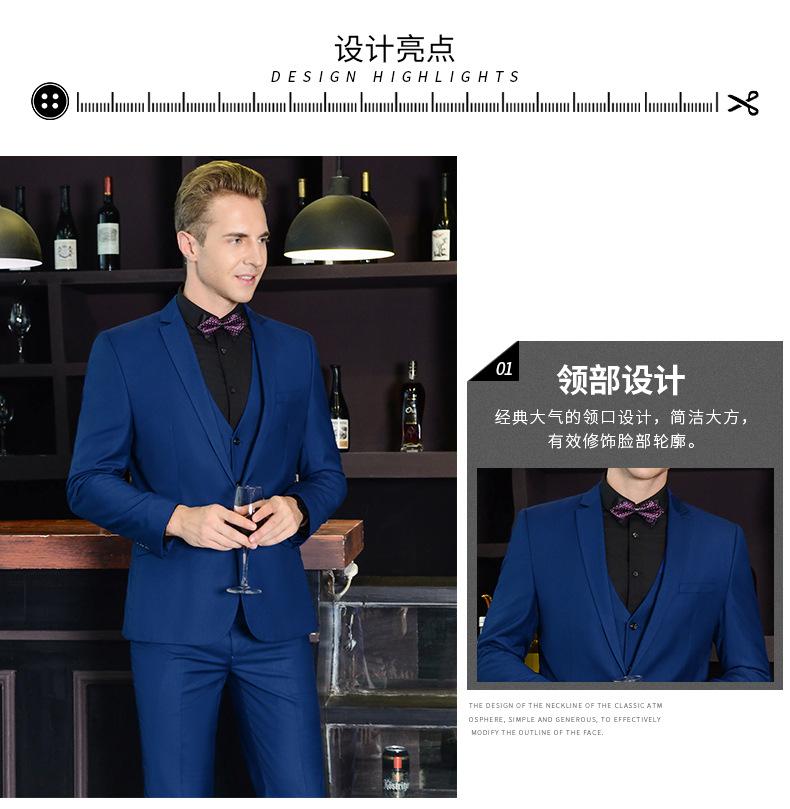 Traje traje Traje de novio para hombre Vestido de boda Traje coreano ajustado Traje de tres piezas Vestido profesional de negocios Azul Otoño