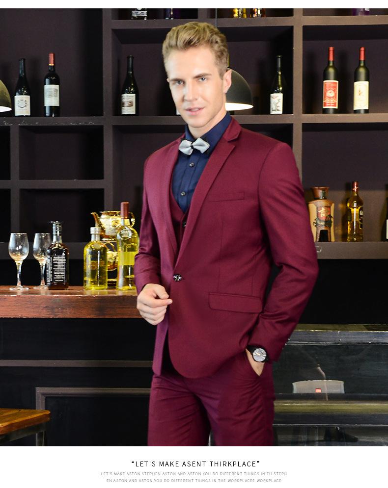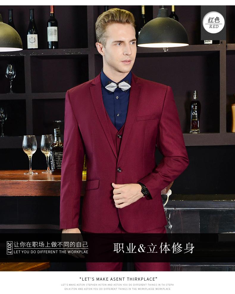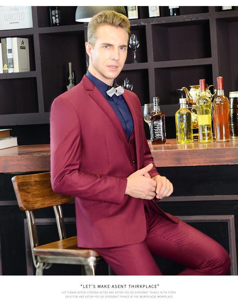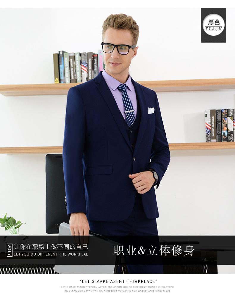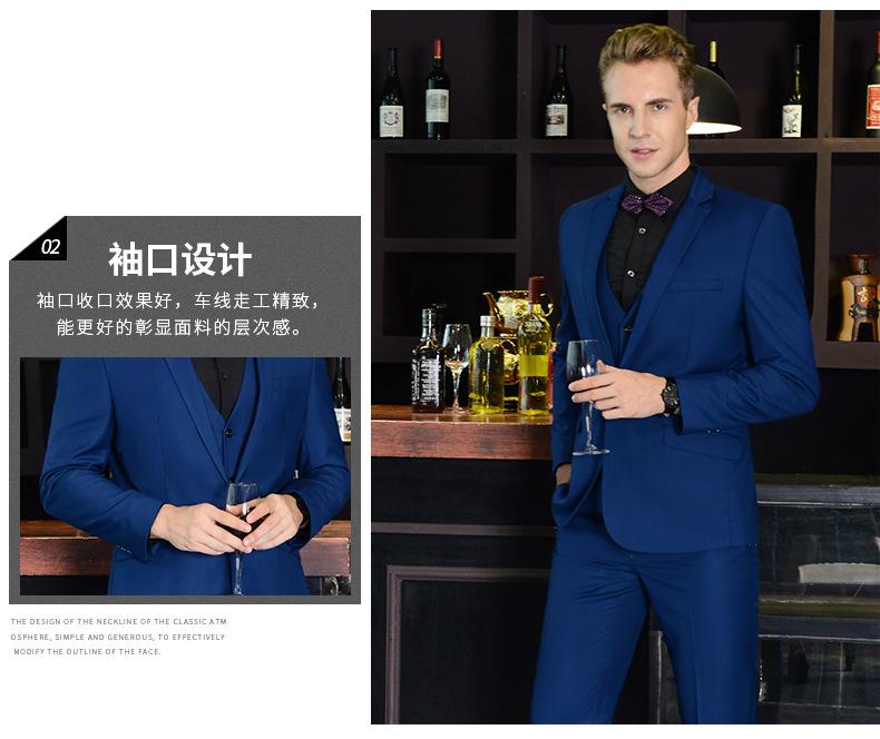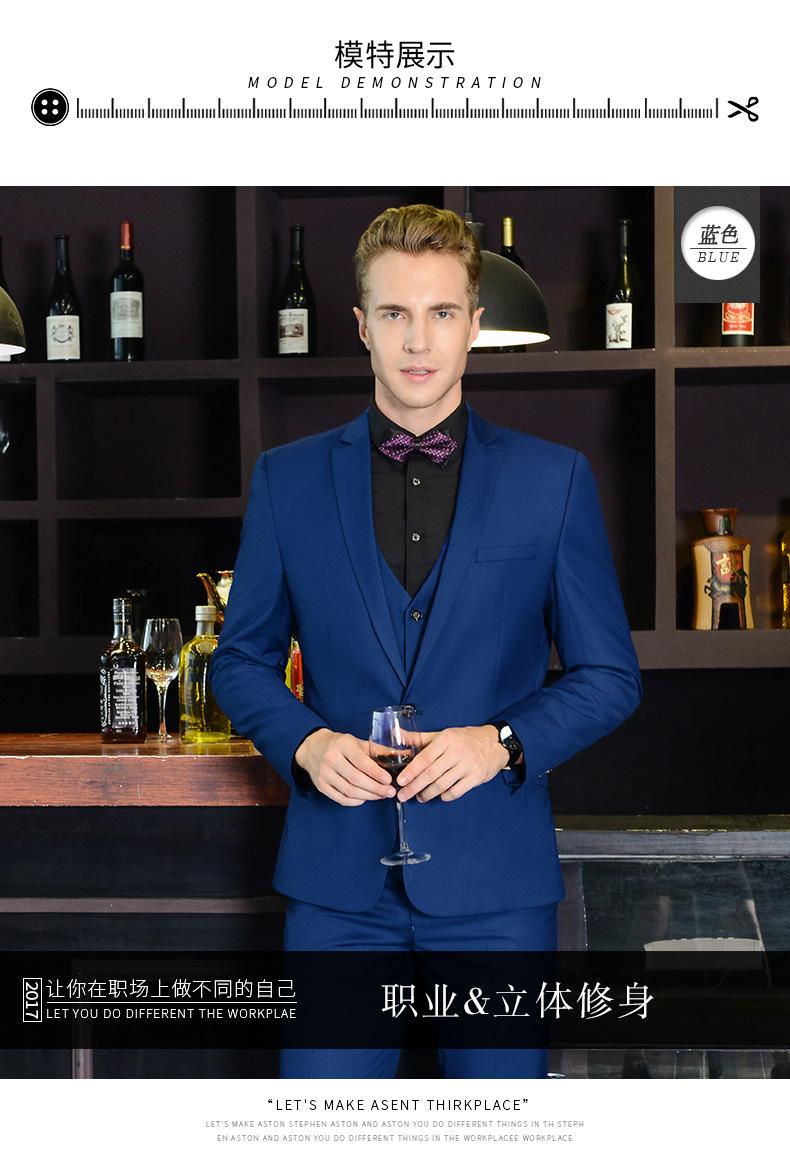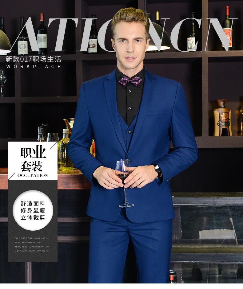Traje traje Traje de novio para hombre Vestido de boda Traje coreano ajustado Traje de tres piezas Vestido profesional de negocios Azul Otoño