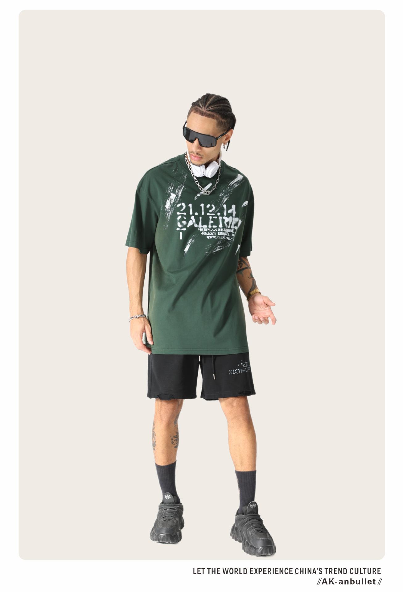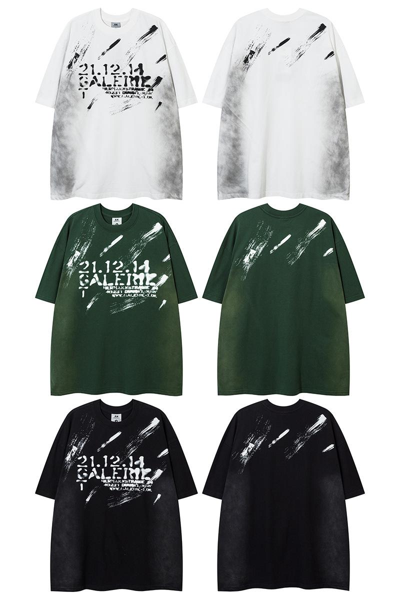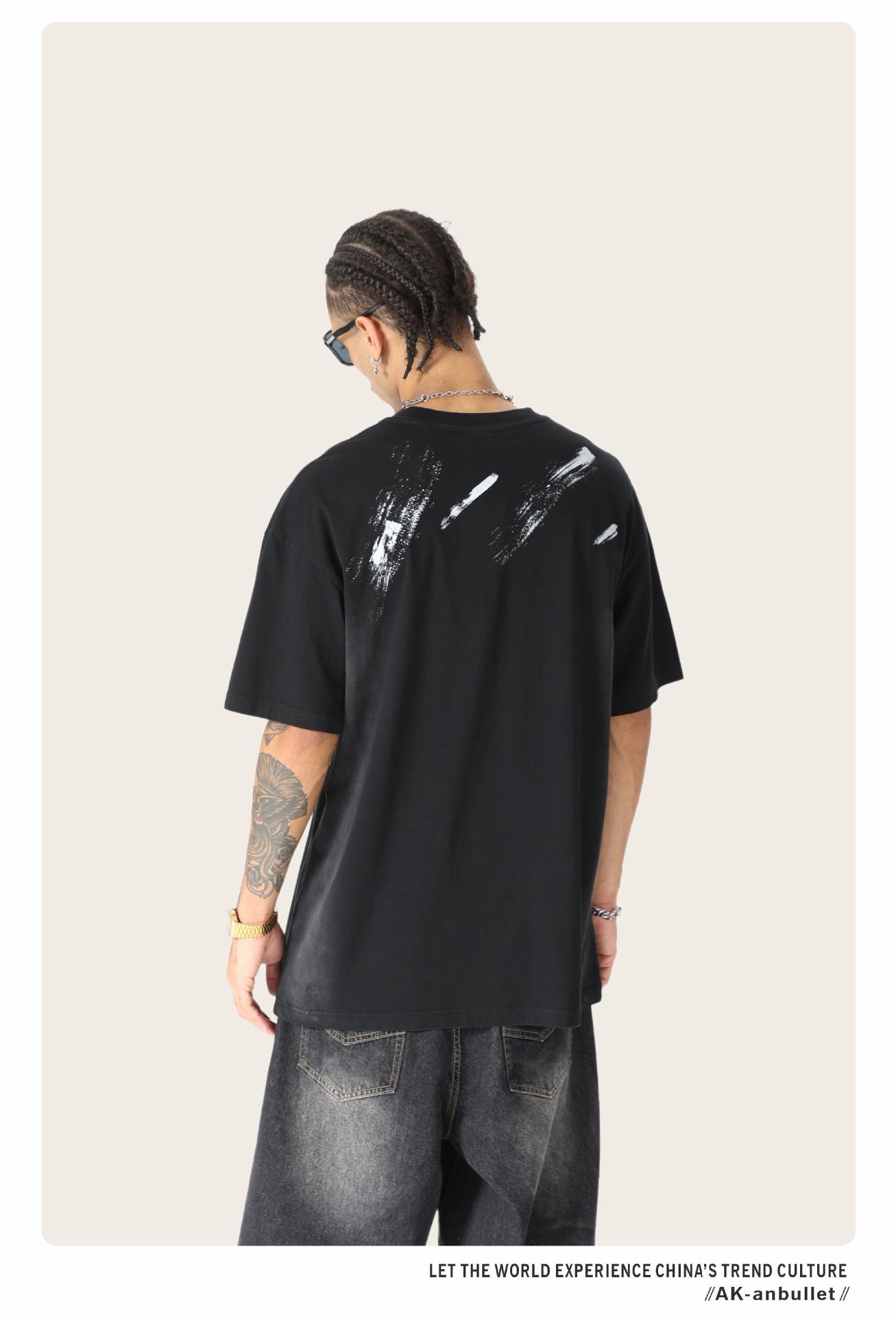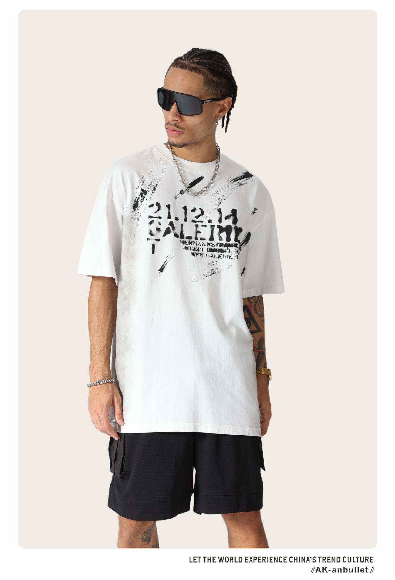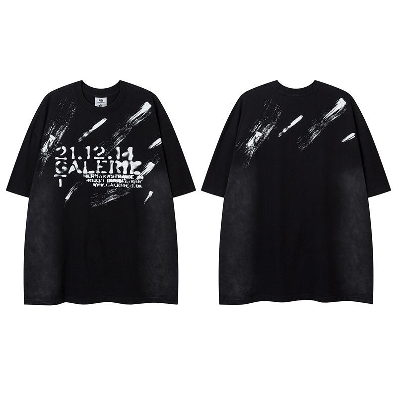 Camiseta lavada de manga corta de algodón puro de verano para hombre de AK, estilo americano, moderna, holgada, de media manga, con estampado de aerosol Maliu