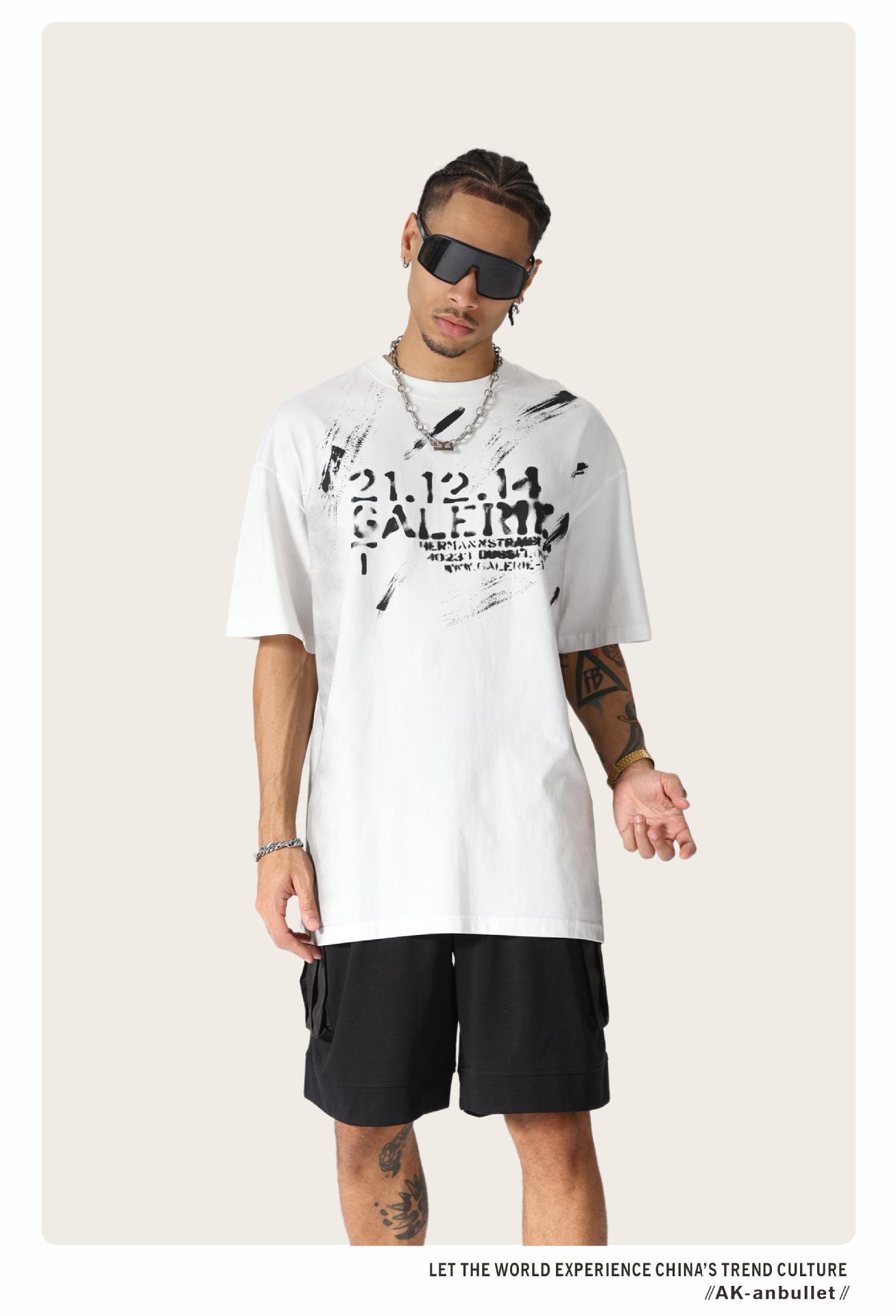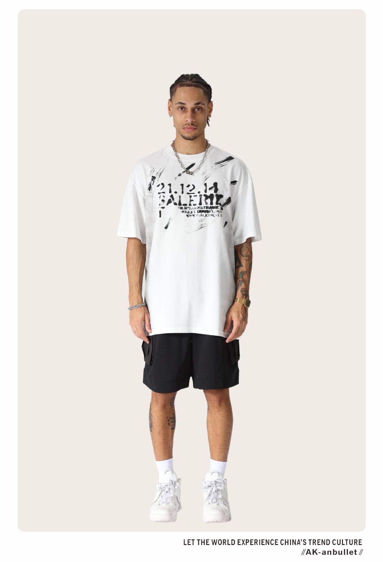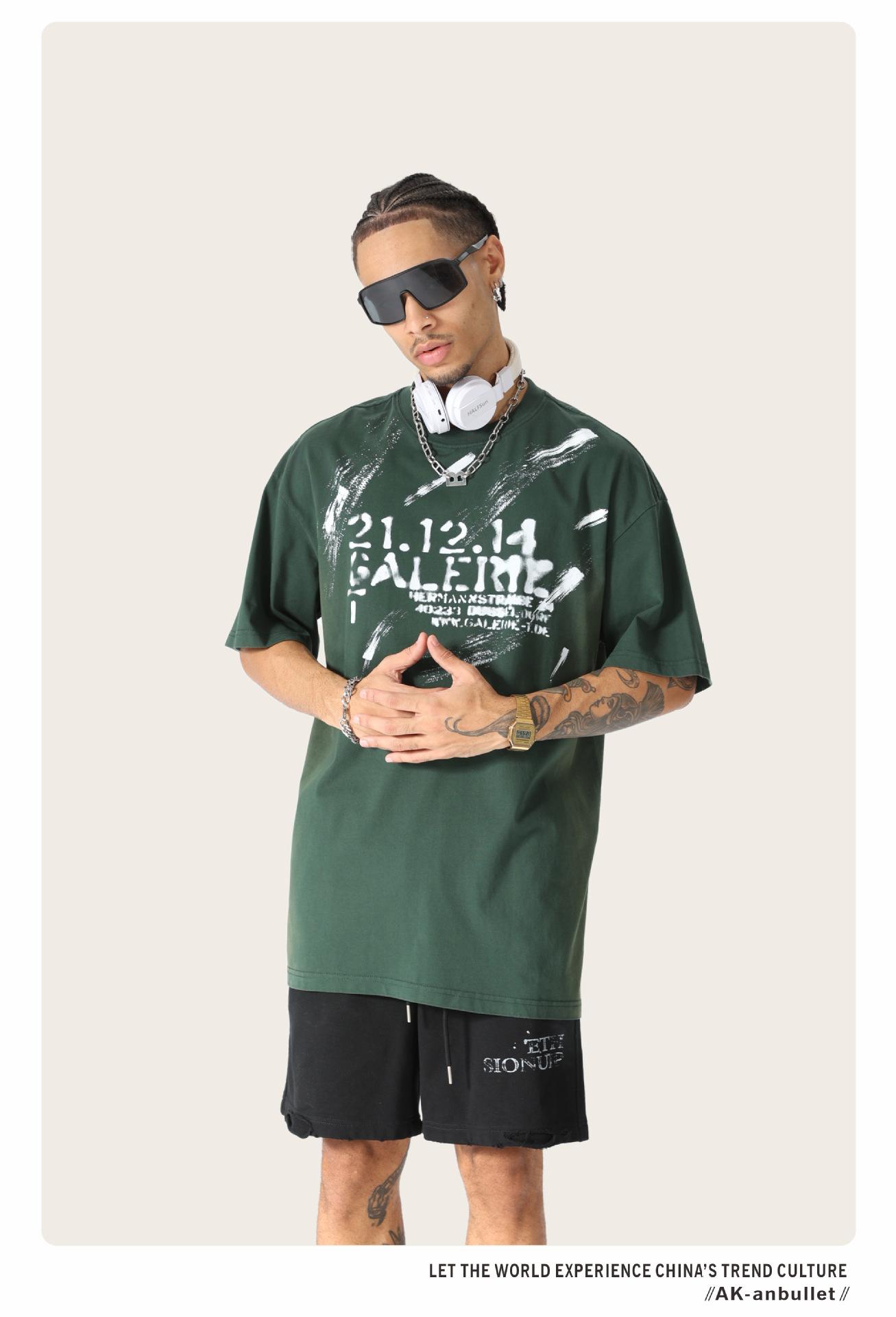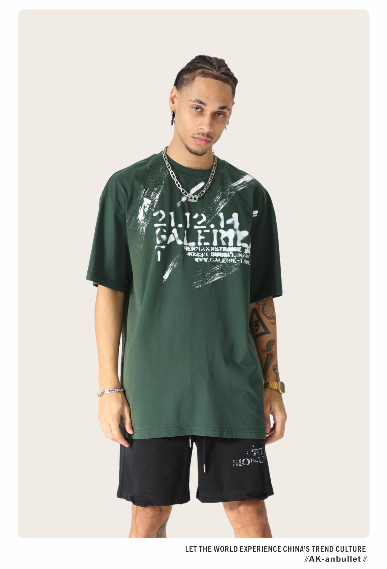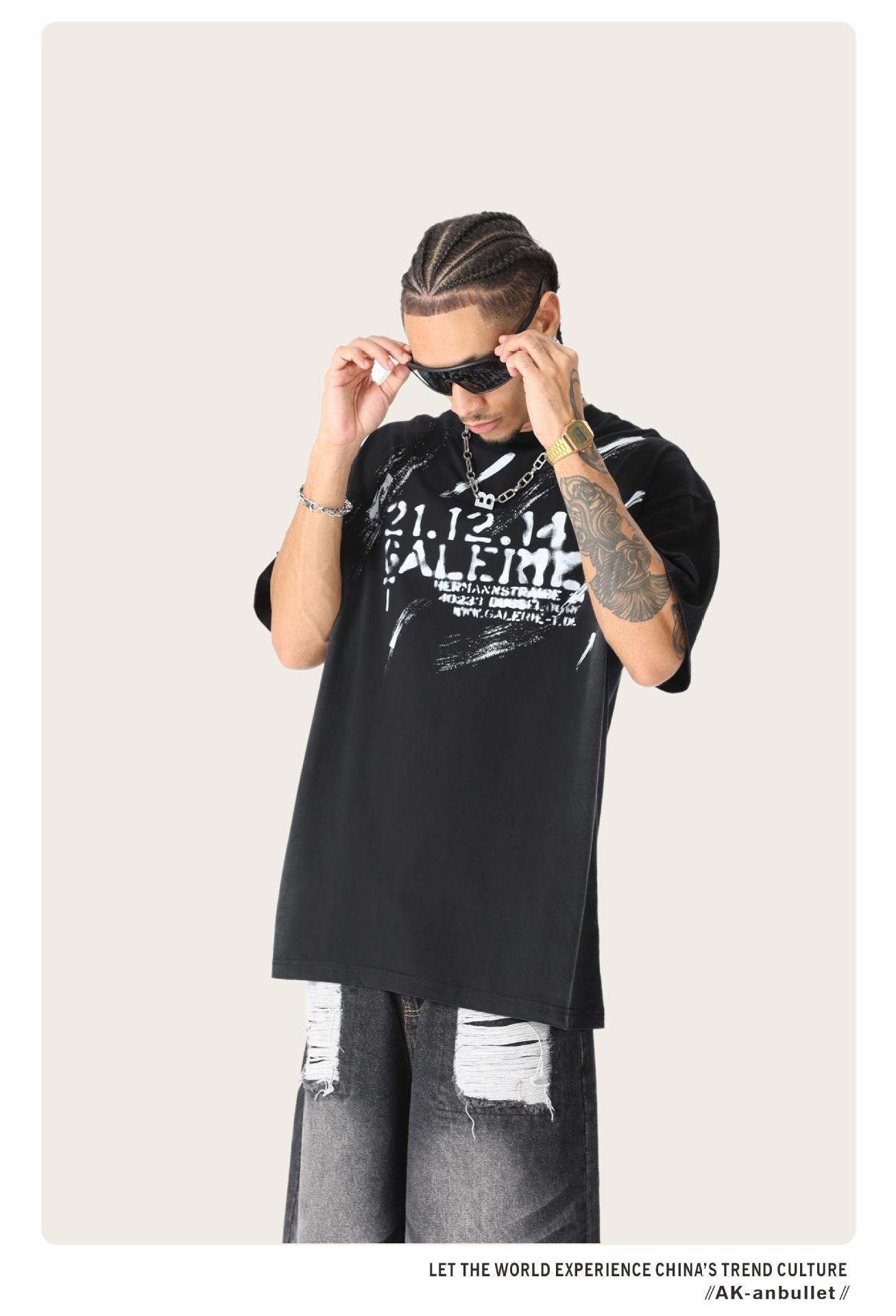 Camiseta lavada de manga corta de algodón puro de verano para hombre de AK, estilo americano, moderna, holgada, de media manga, con estampado de aerosol Maliu