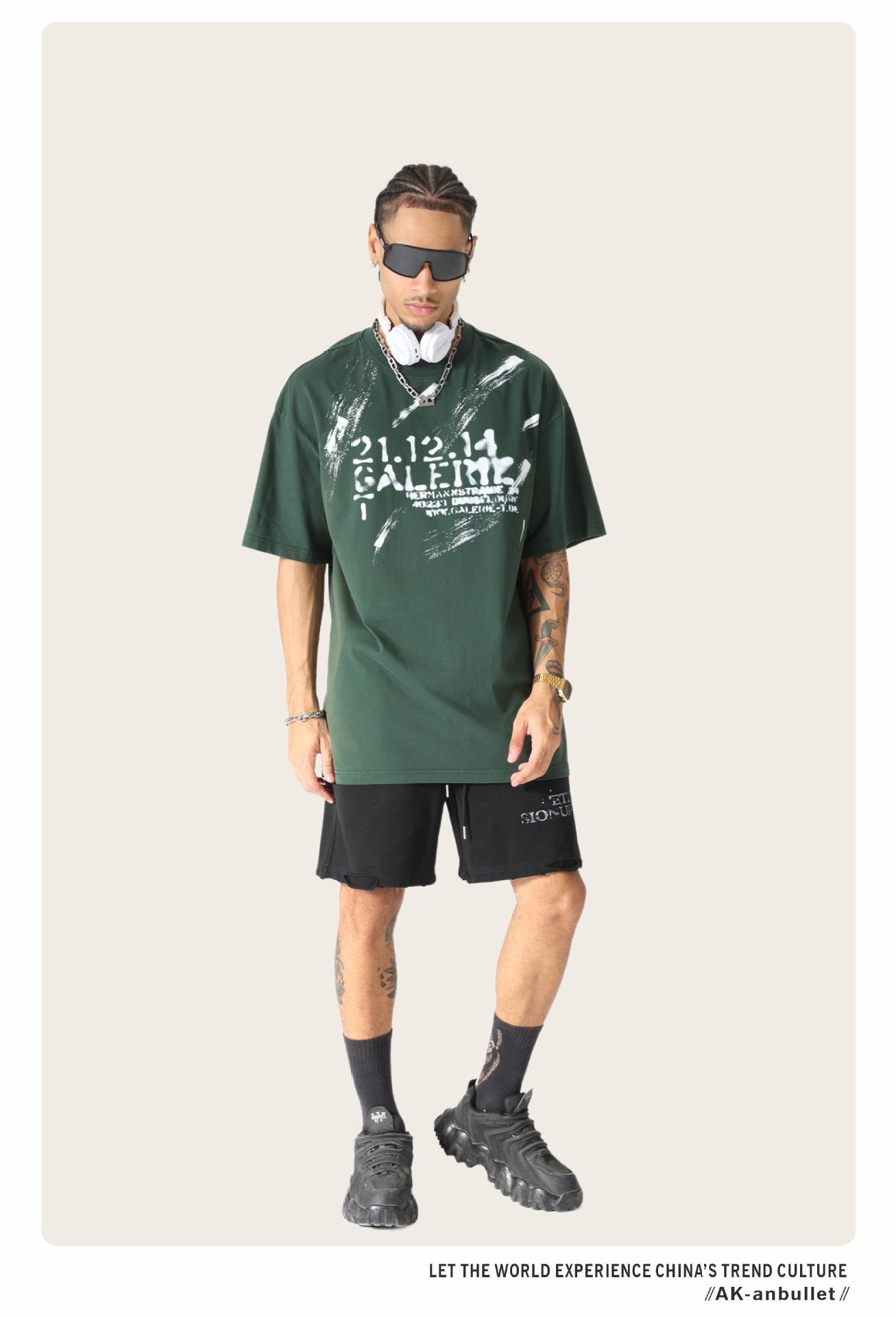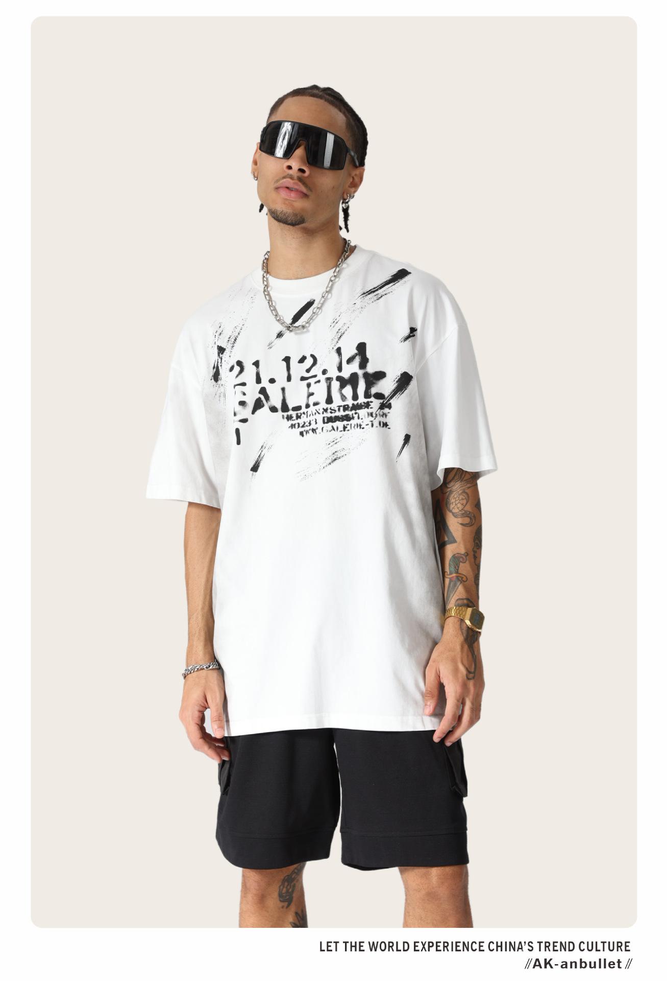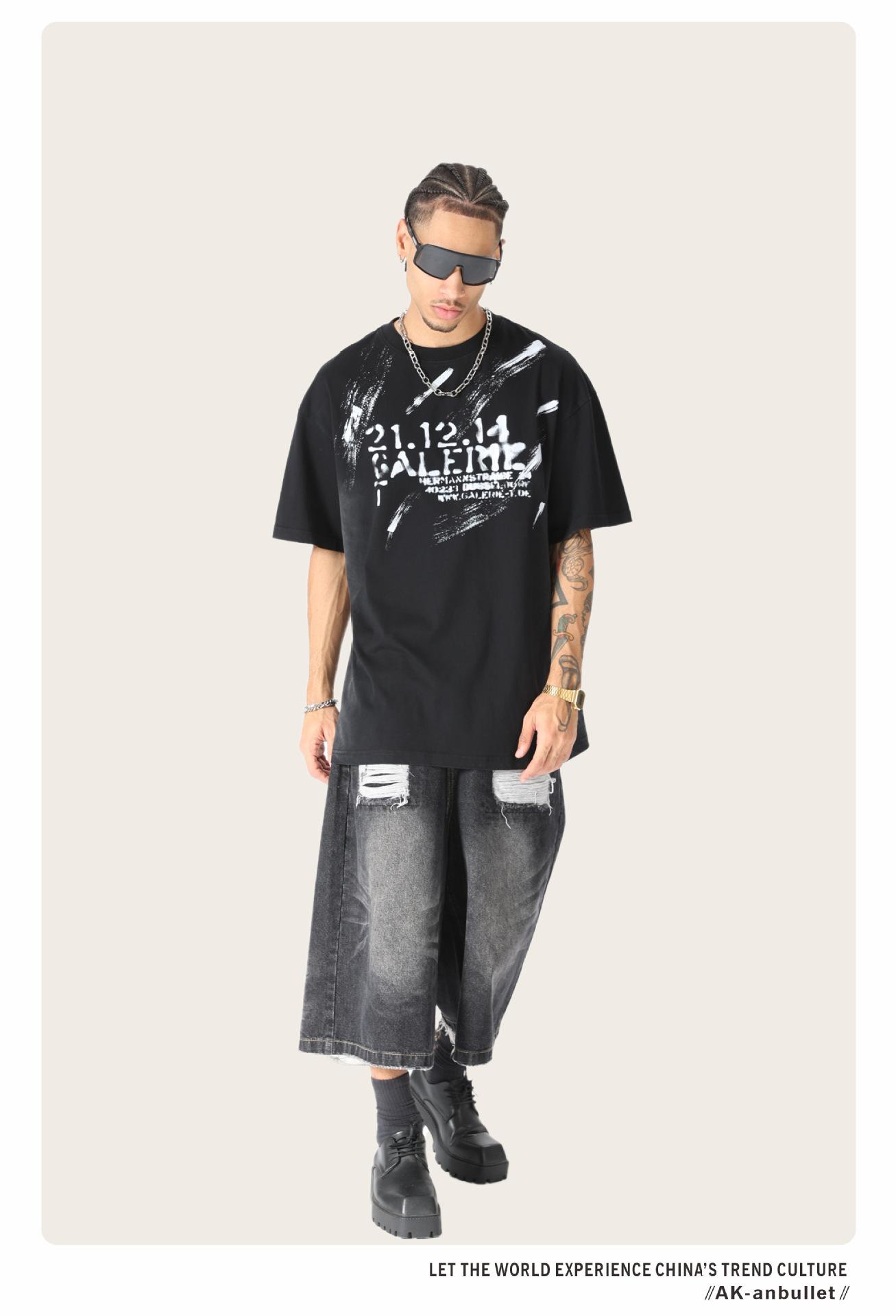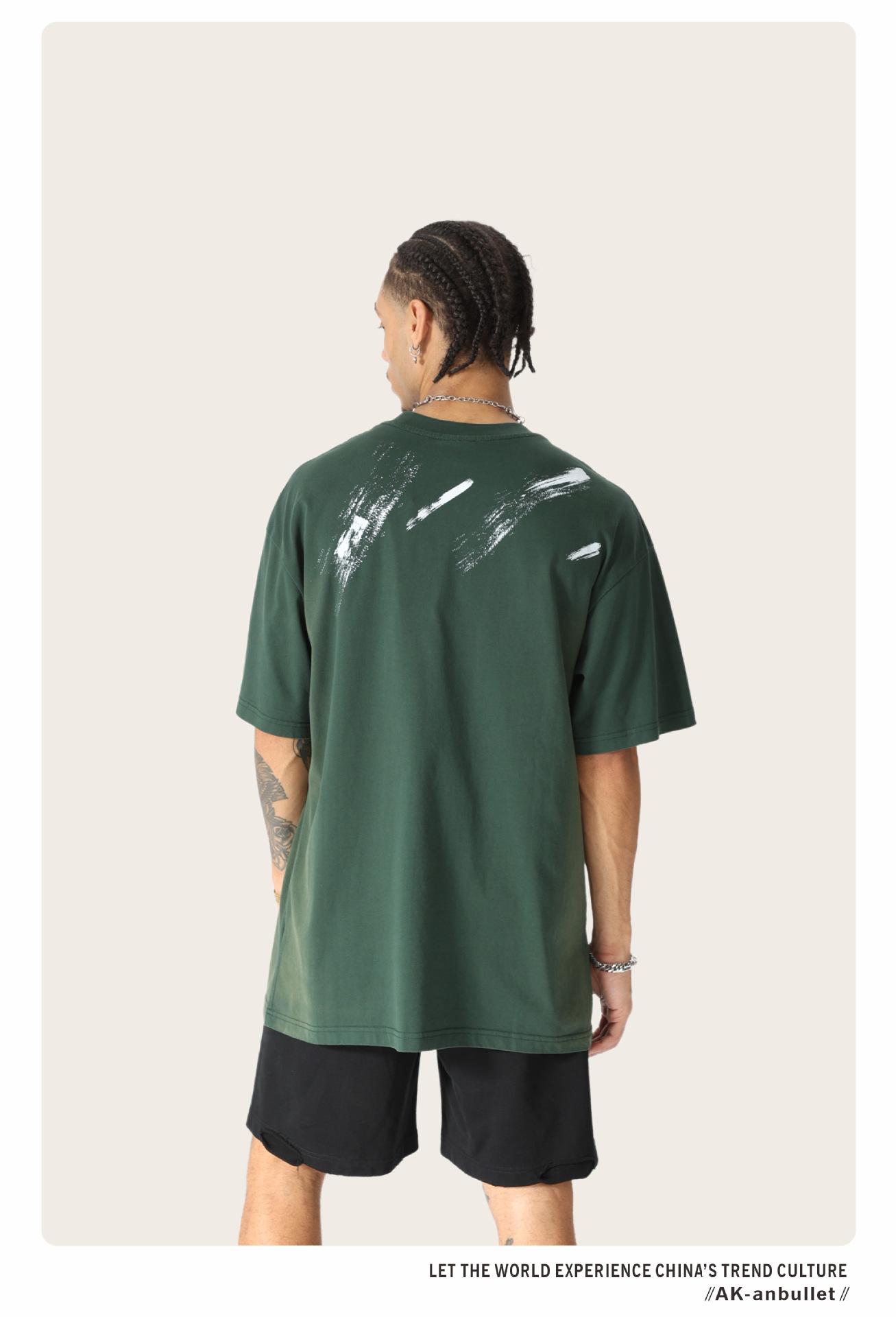 Camiseta lavada de manga corta de algodón puro de verano para hombre de AK, estilo americano, moderna, holgada, de media manga, con estampado de aerosol Maliu