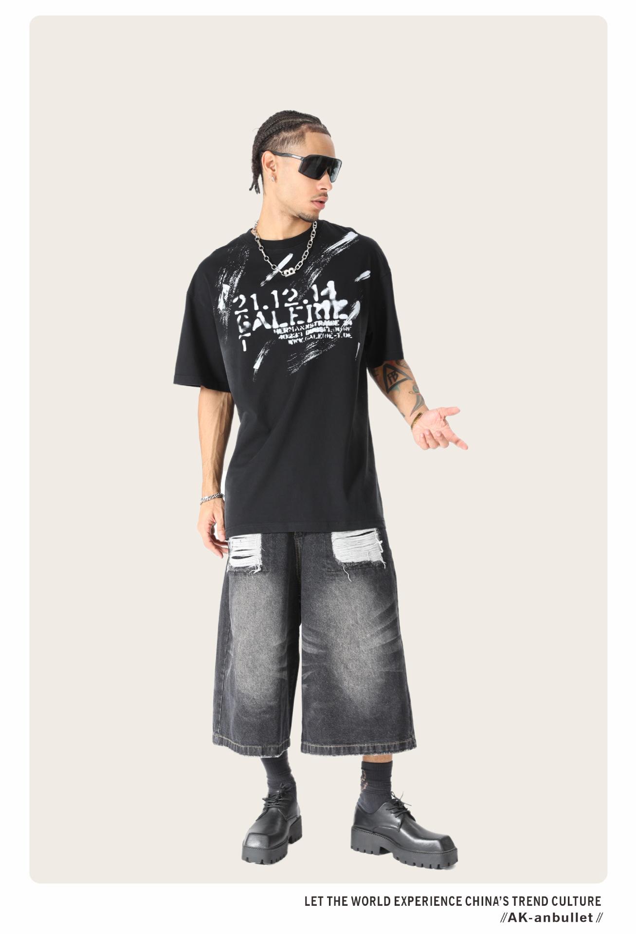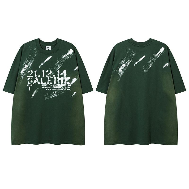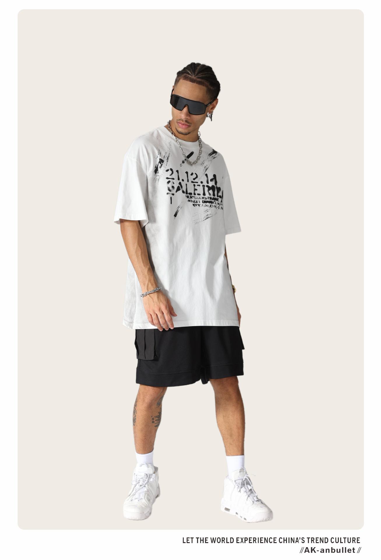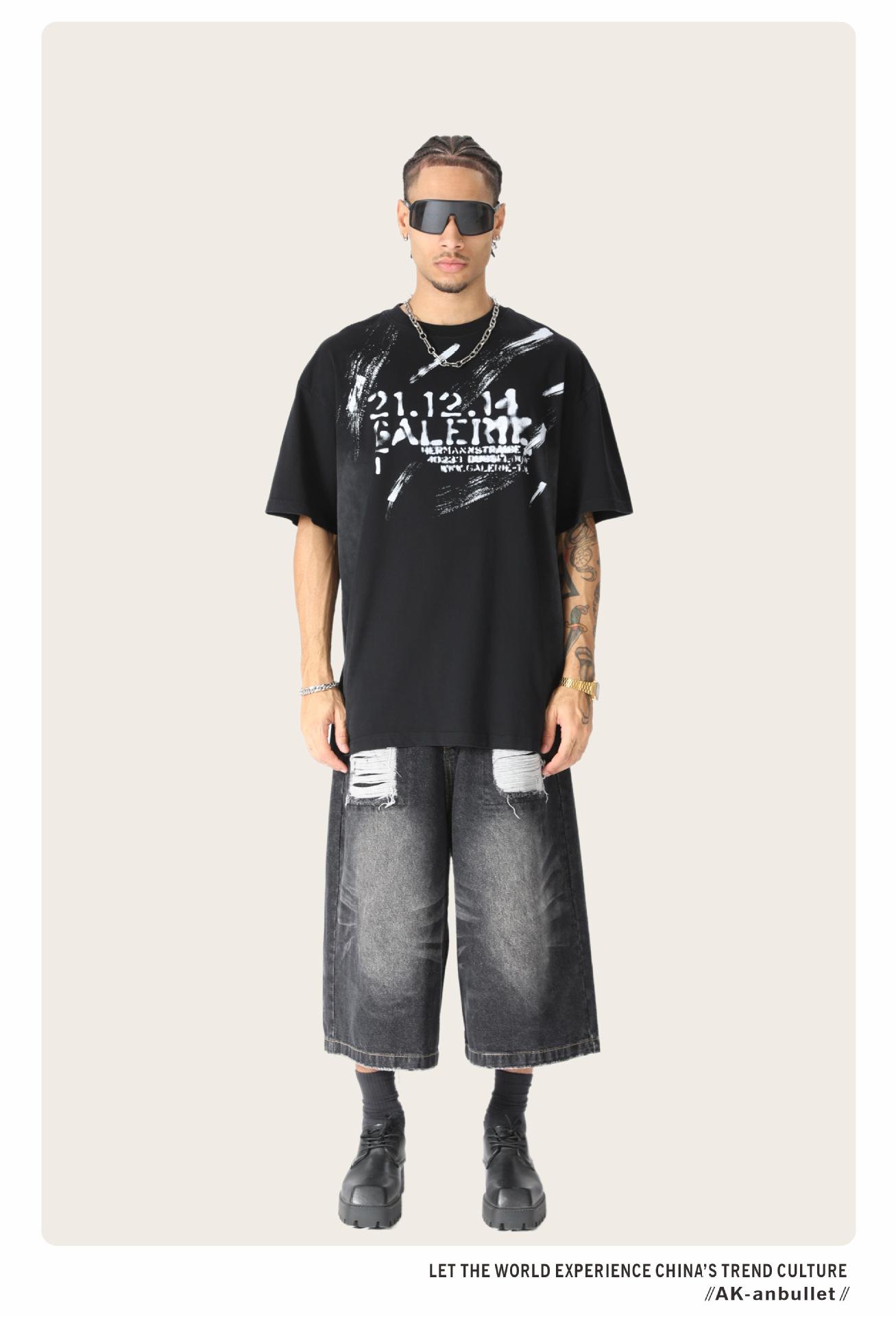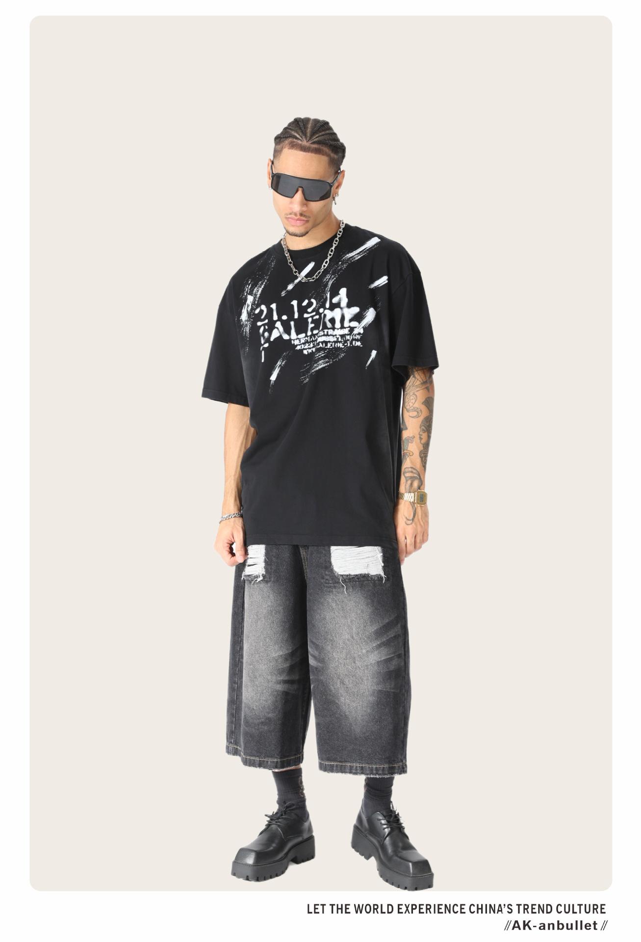 Camiseta lavada de manga corta de algodón puro de verano para hombre de AK, estilo americano, moderna, holgada, de media manga, con estampado de aerosol Maliu