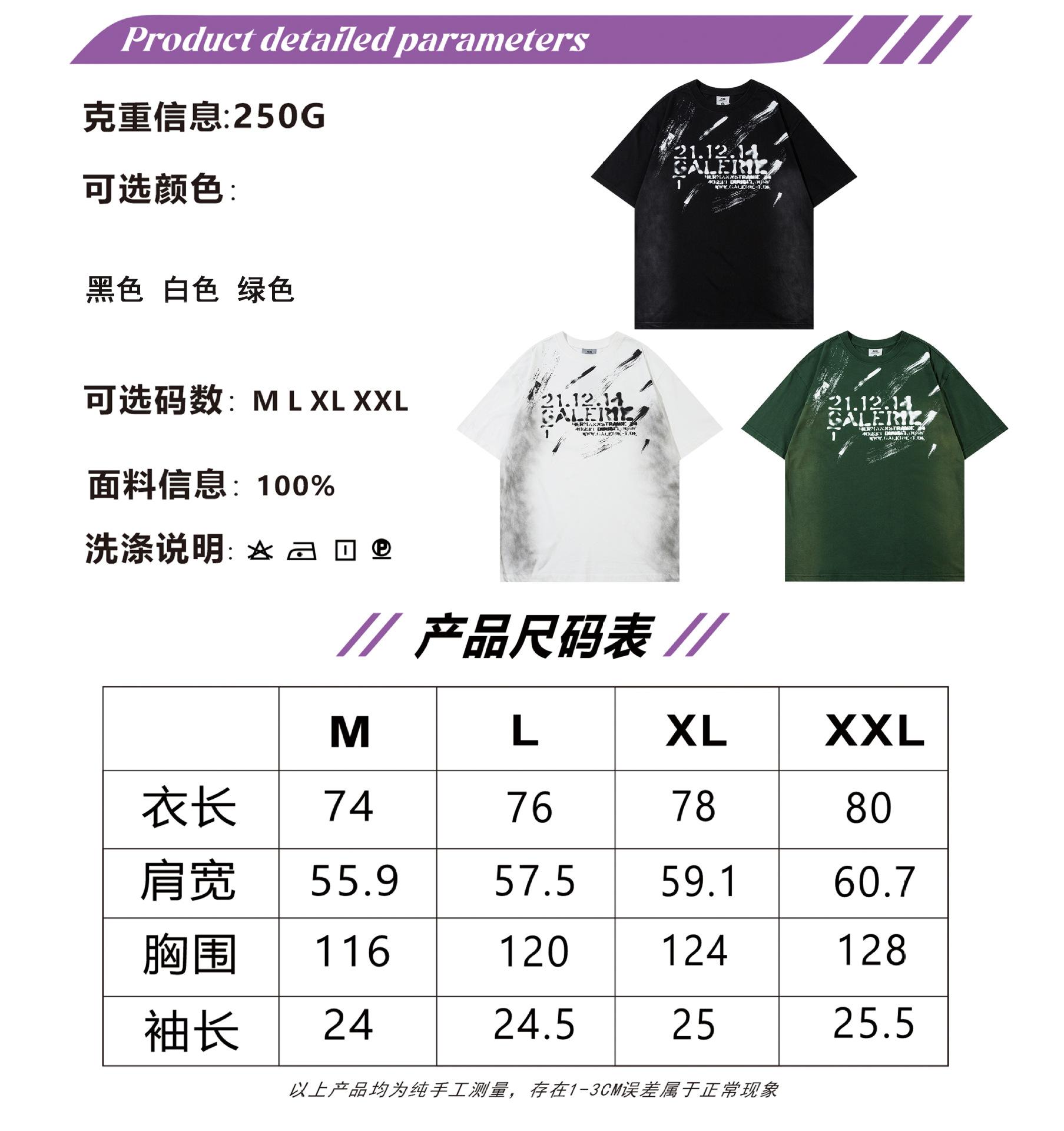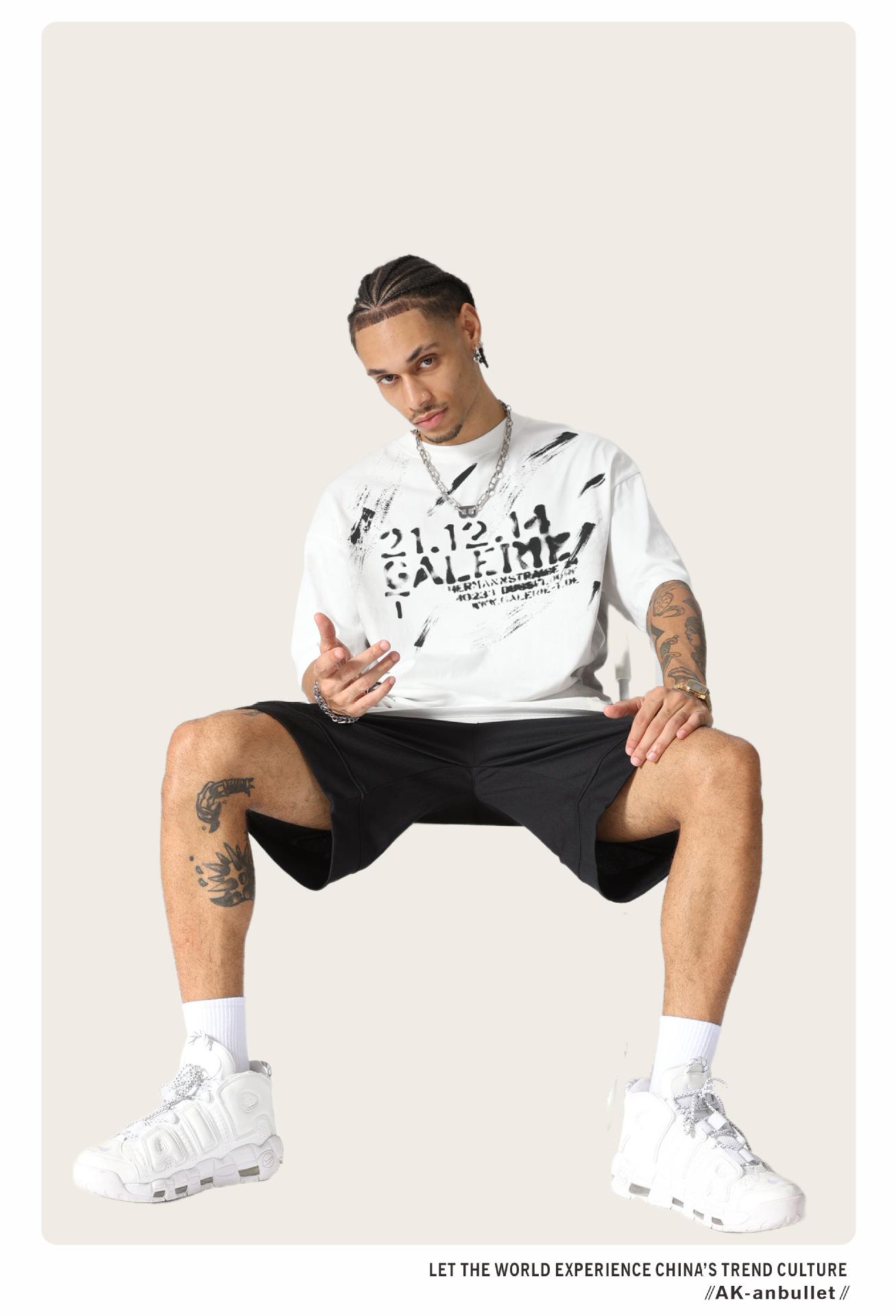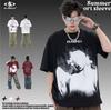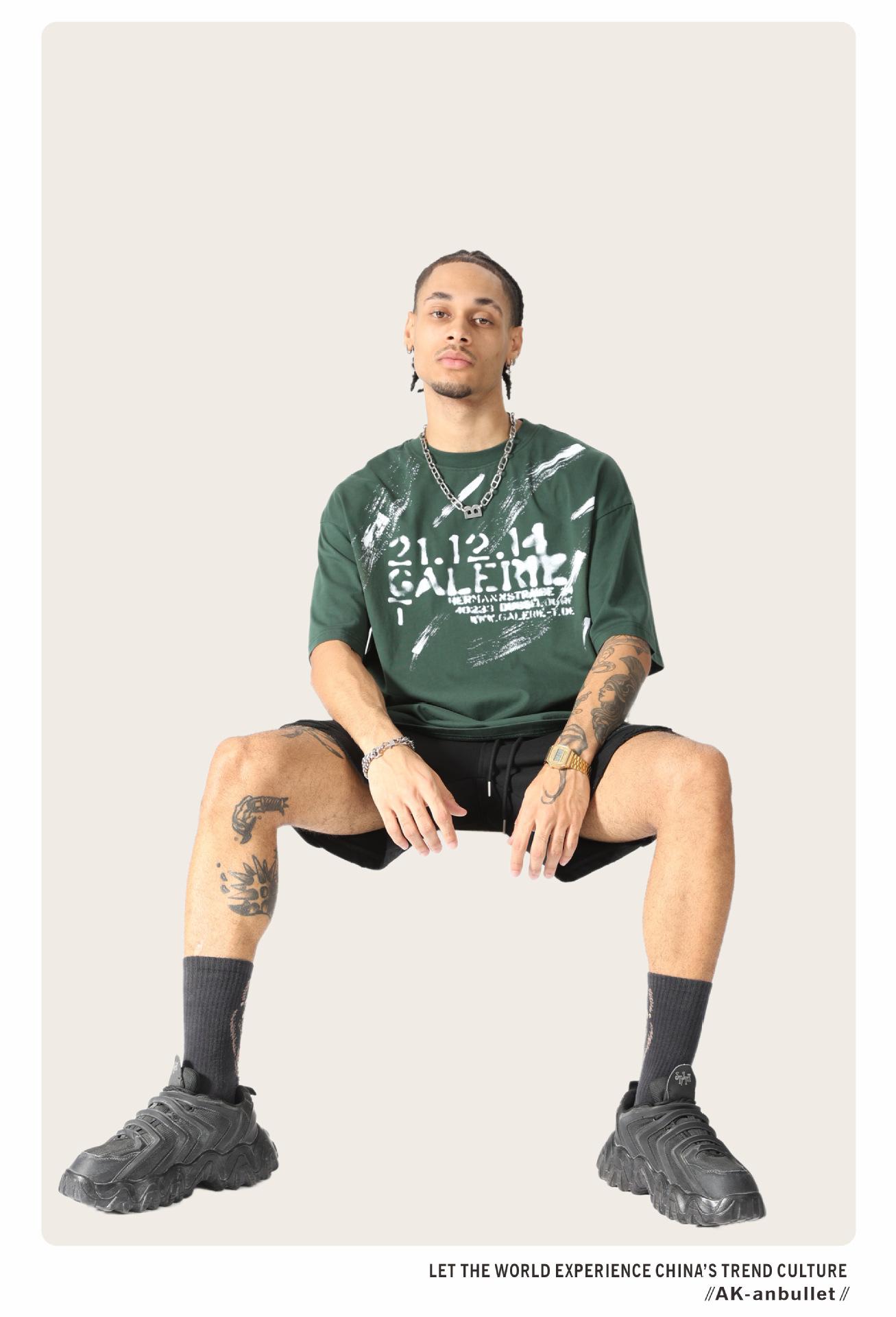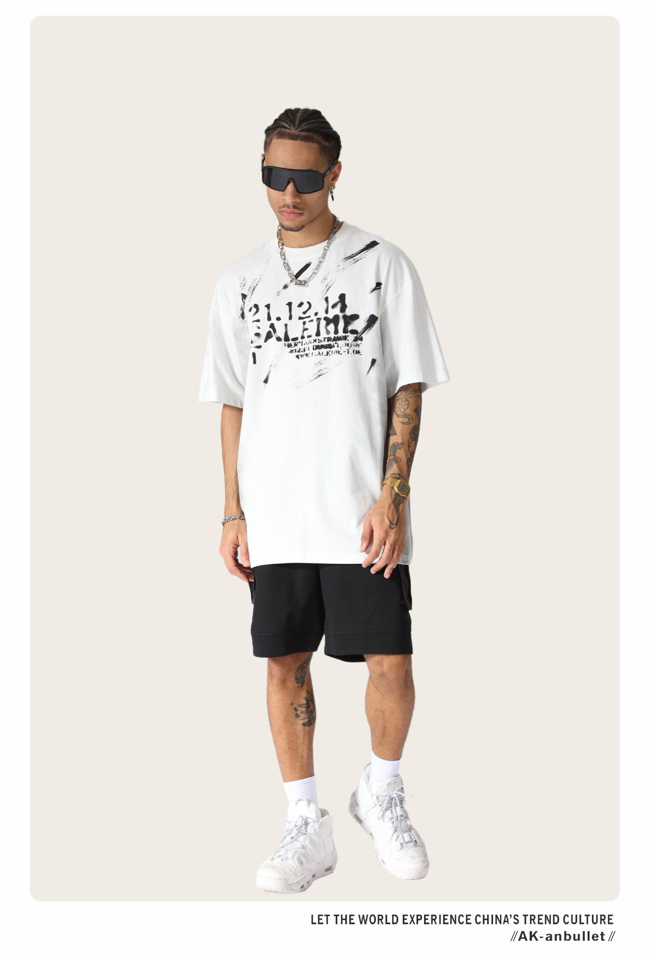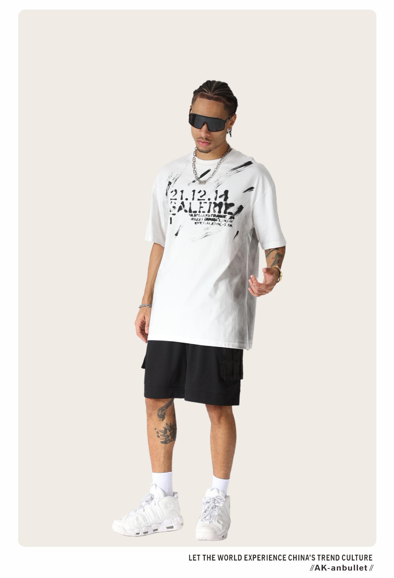 Camiseta lavada de manga corta de algodón puro de verano para hombre de AK, estilo americano, moderna, holgada, de media manga, con estampado de aerosol Maliu