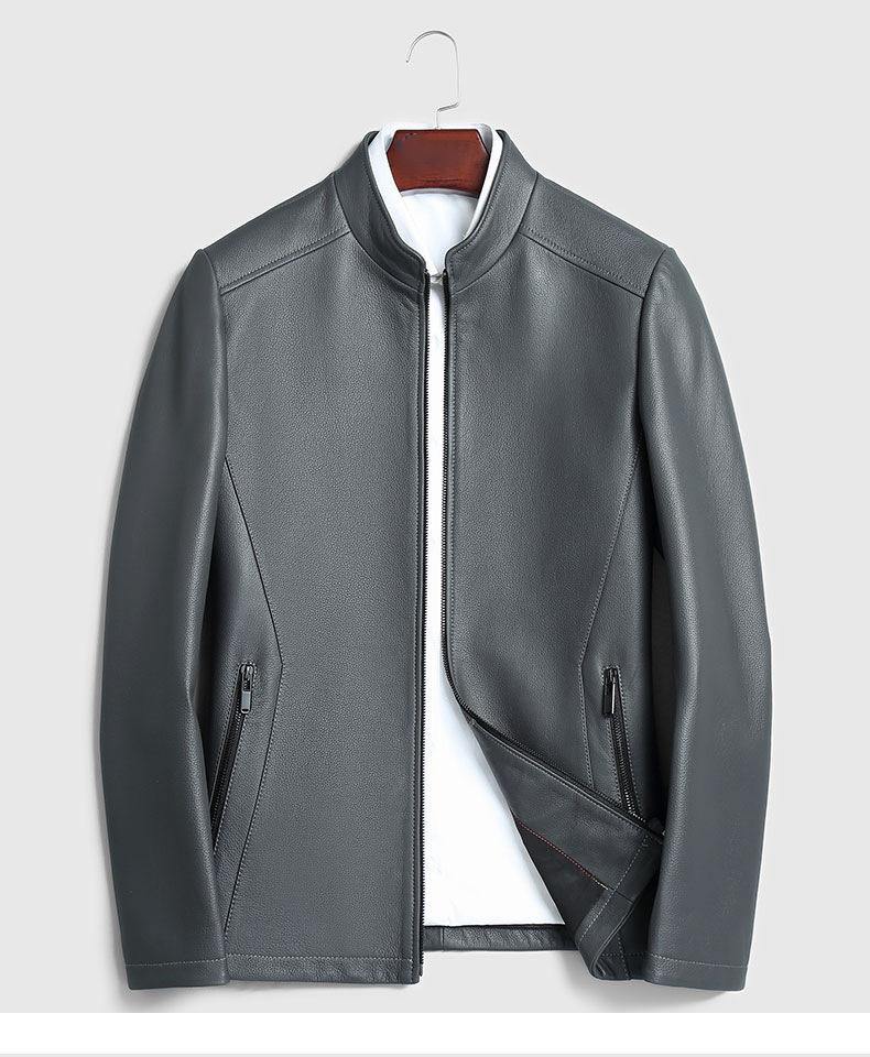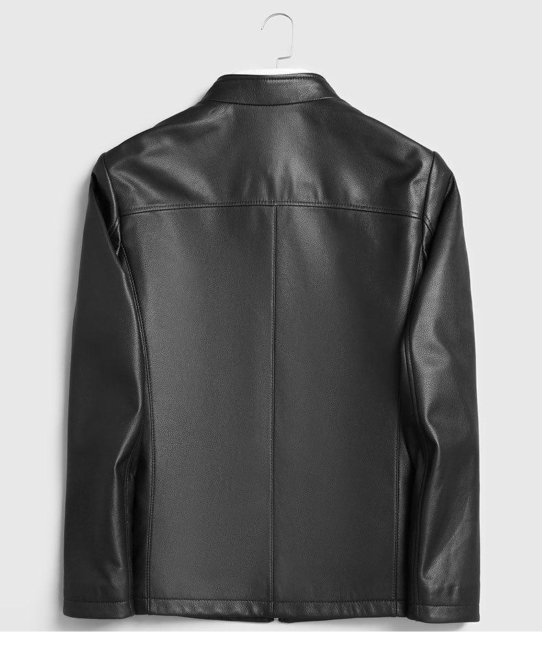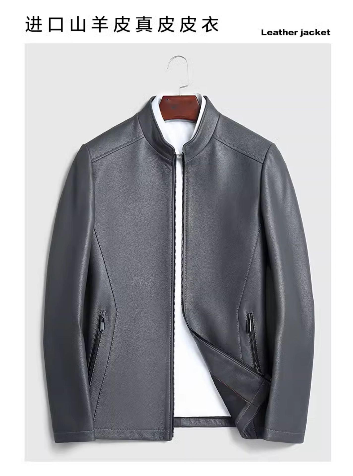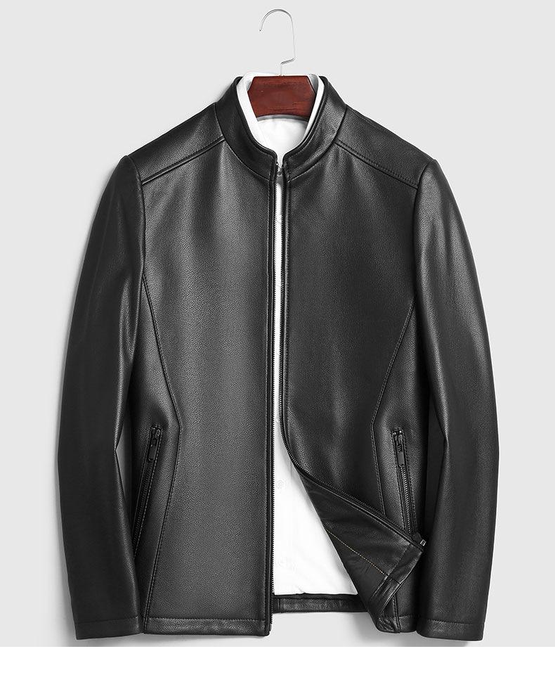 Haining otoño e invierno Nuevo abrigo de cuero genuino para hombre cuello alto corto de alta gama negocios entallado chaqueta de piel de cabra chaqueta