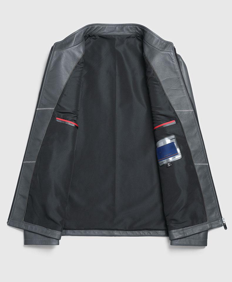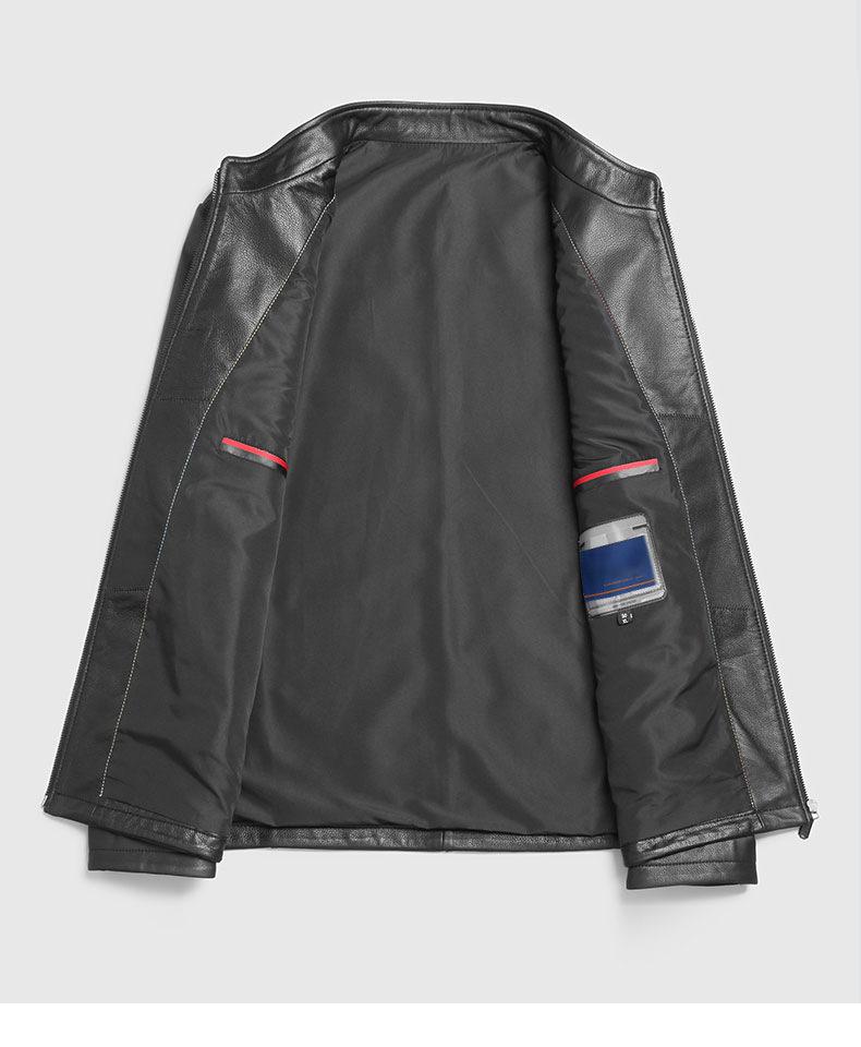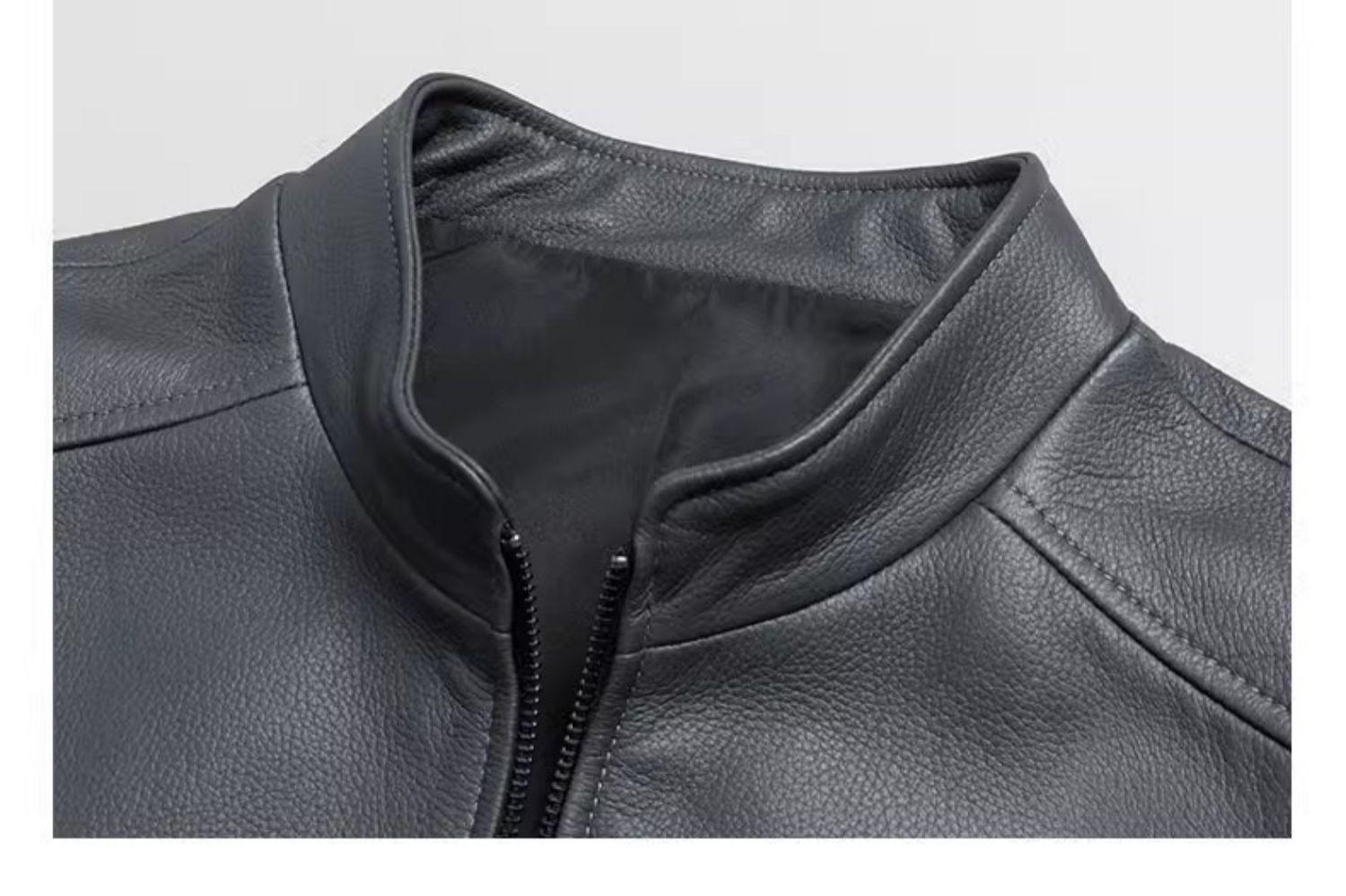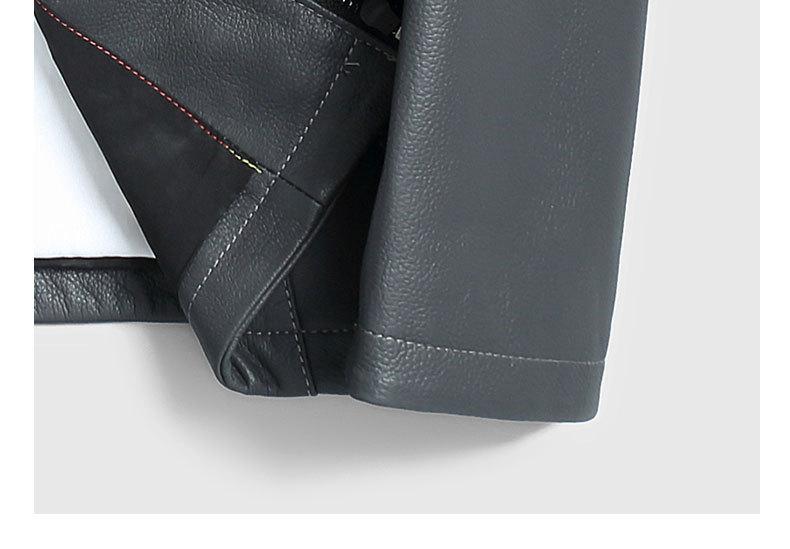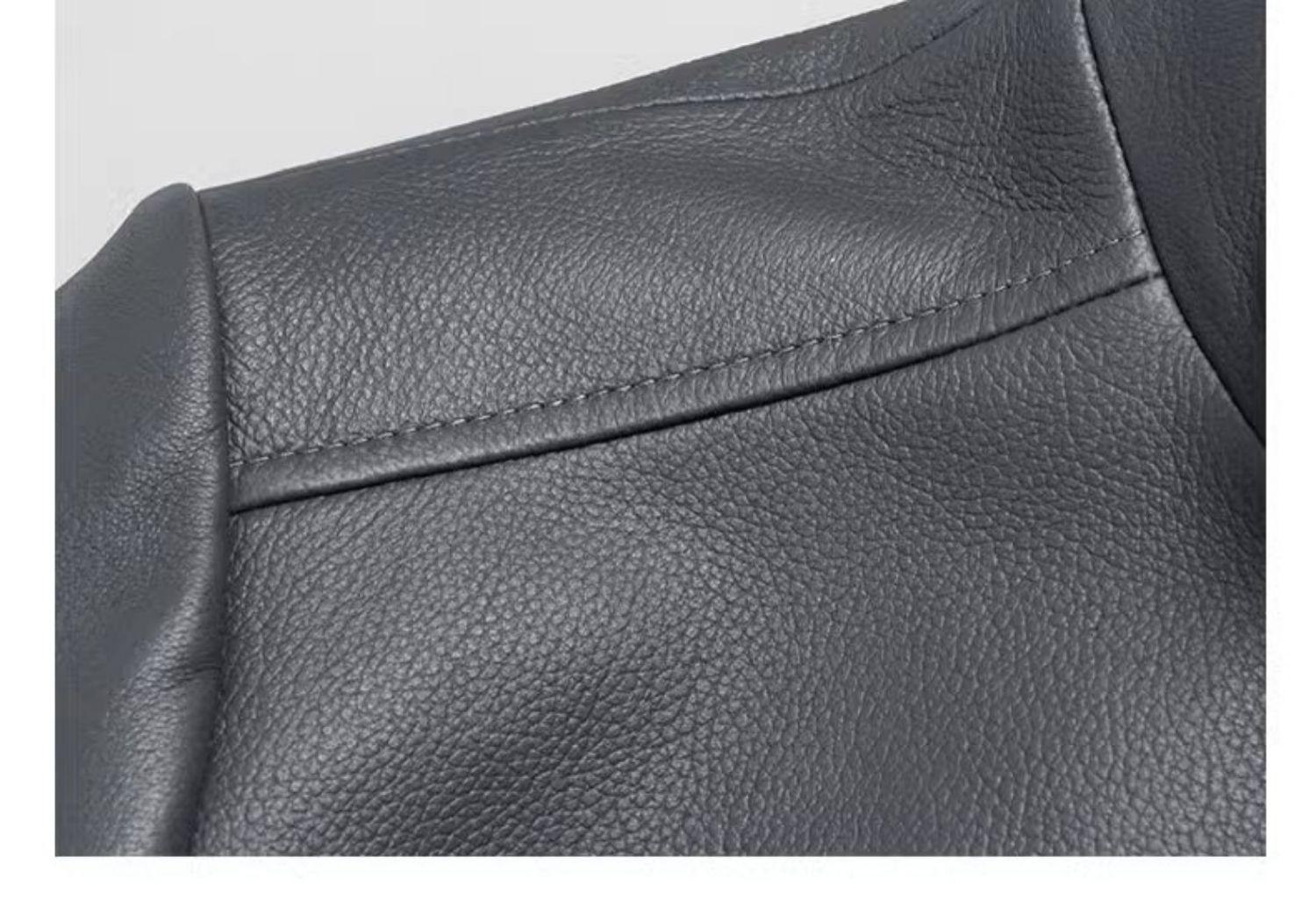 Haining otoño e invierno Nuevo abrigo de cuero genuino para hombre cuello alto corto de alta gama negocios entallado chaqueta de piel de cabra chaqueta
