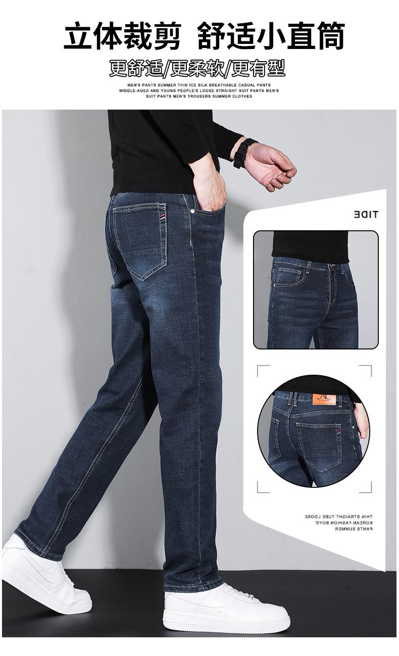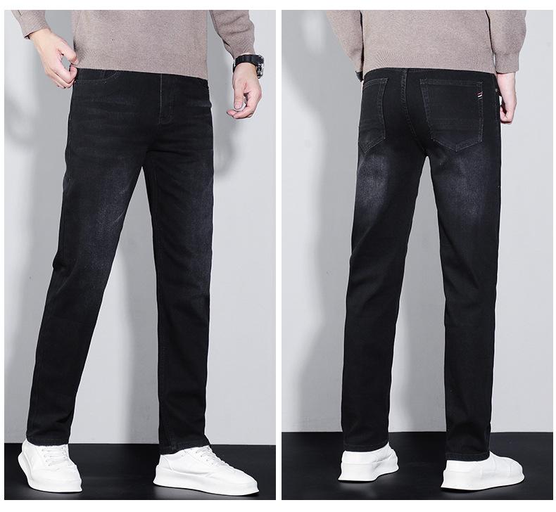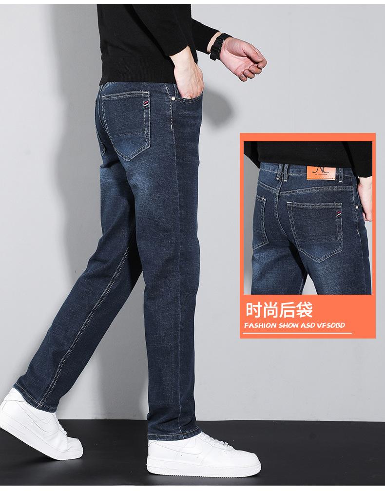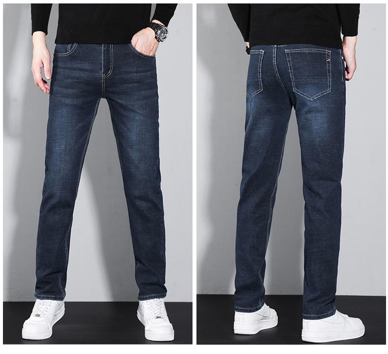 Compra Jeans Gruesos Lavados para Hombre Invierno Business Casual Elásticos Rectos Pequeños Cintura Media Ajustados Pantalones Largos para Hombre H563 al por mayor en Joom.pro