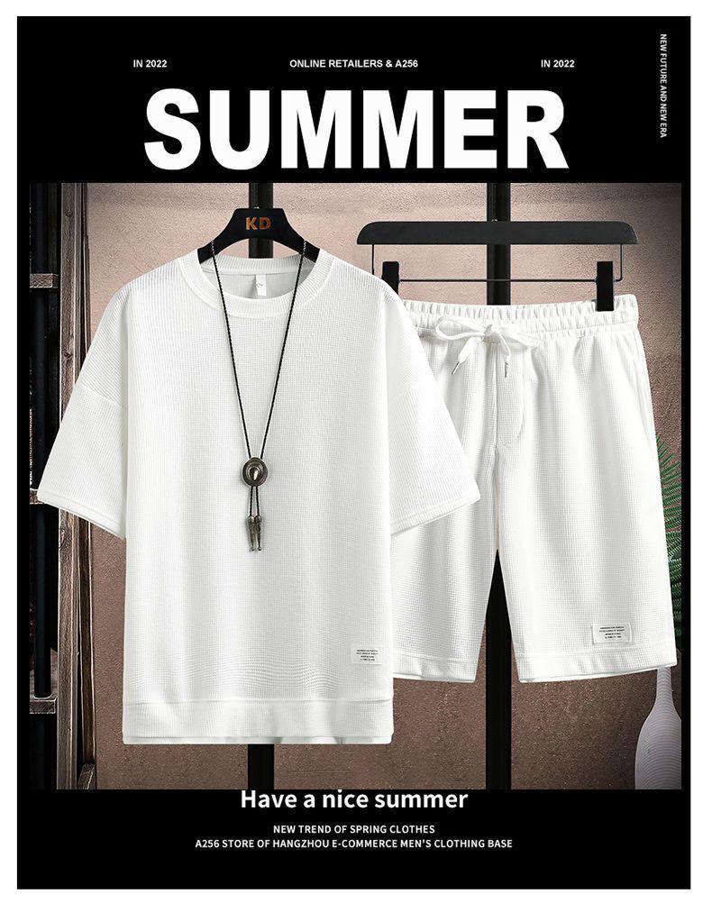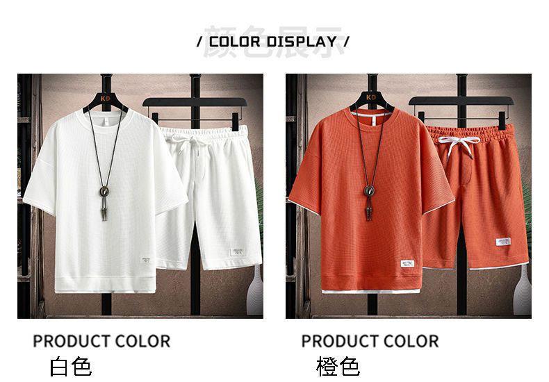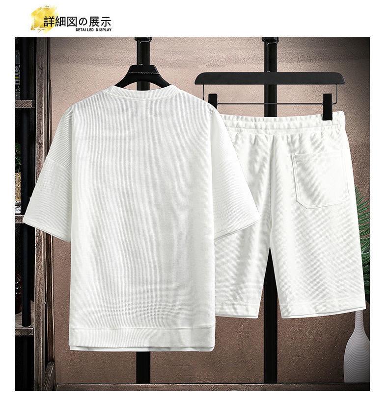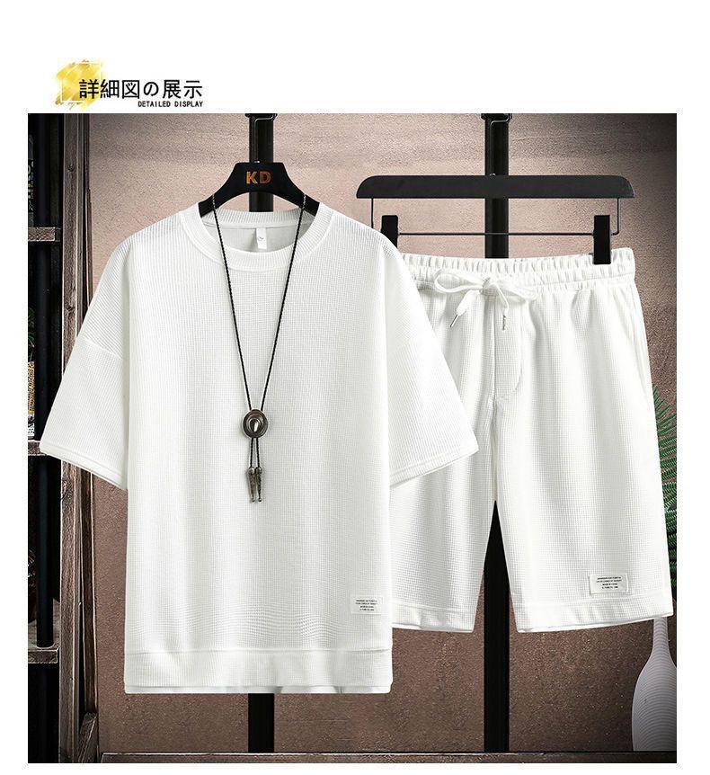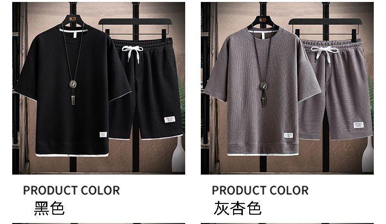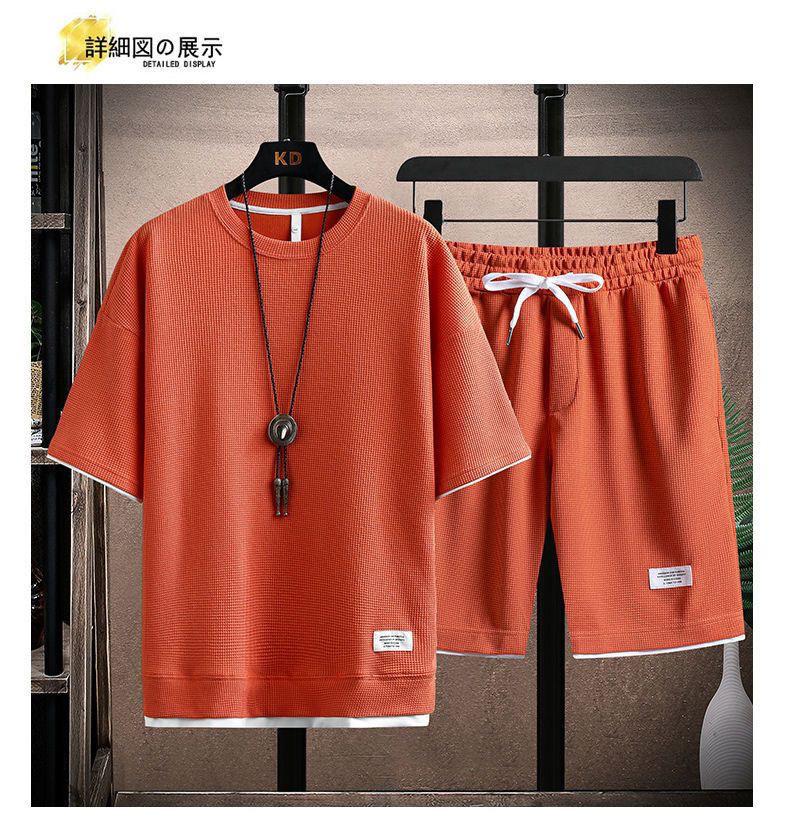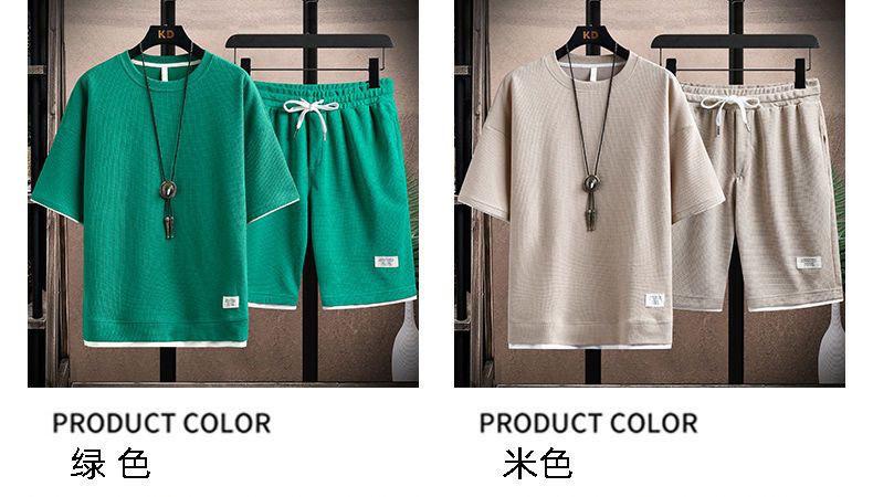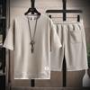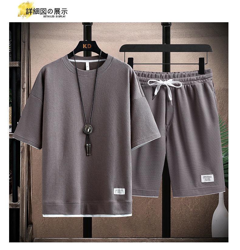 Traje de verano de manga corta con estampado de gofres para hombre, estilo K, holgado, juvenil, atractivo, con pantalones cortos de manga corta, conjunto informal de dos piezas a la moda.